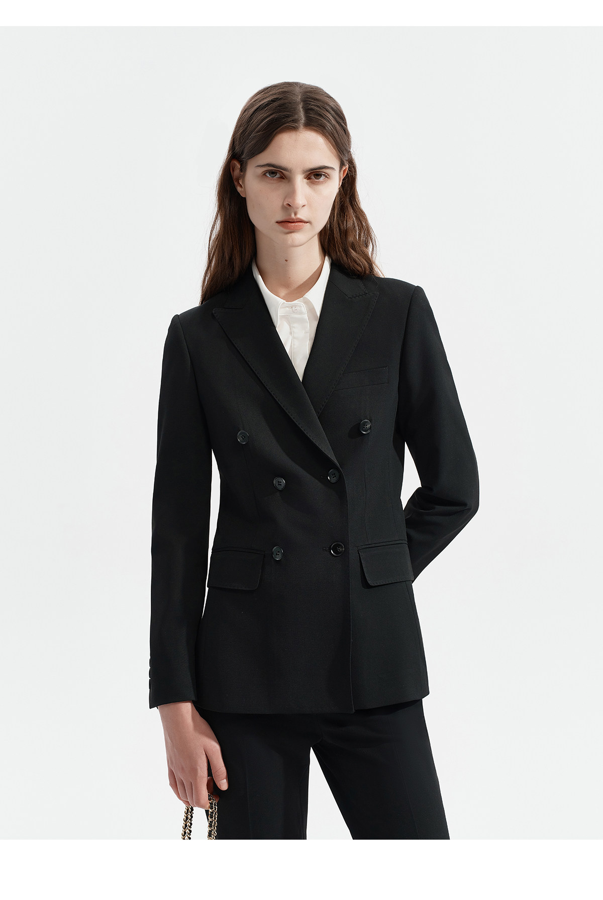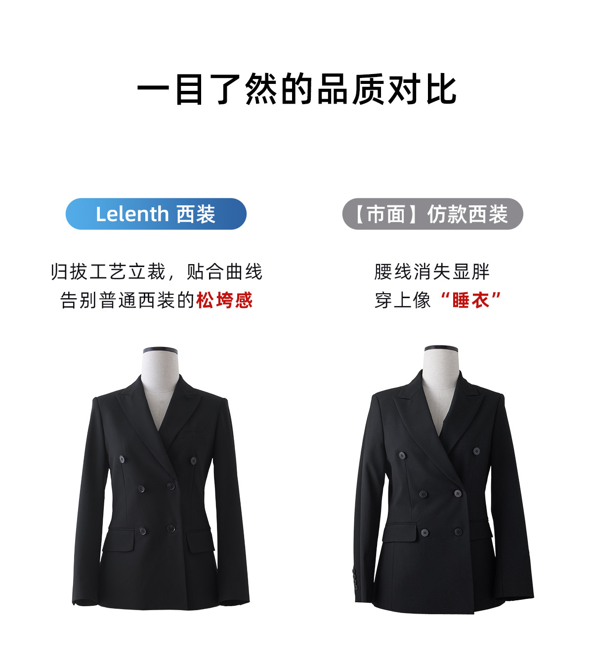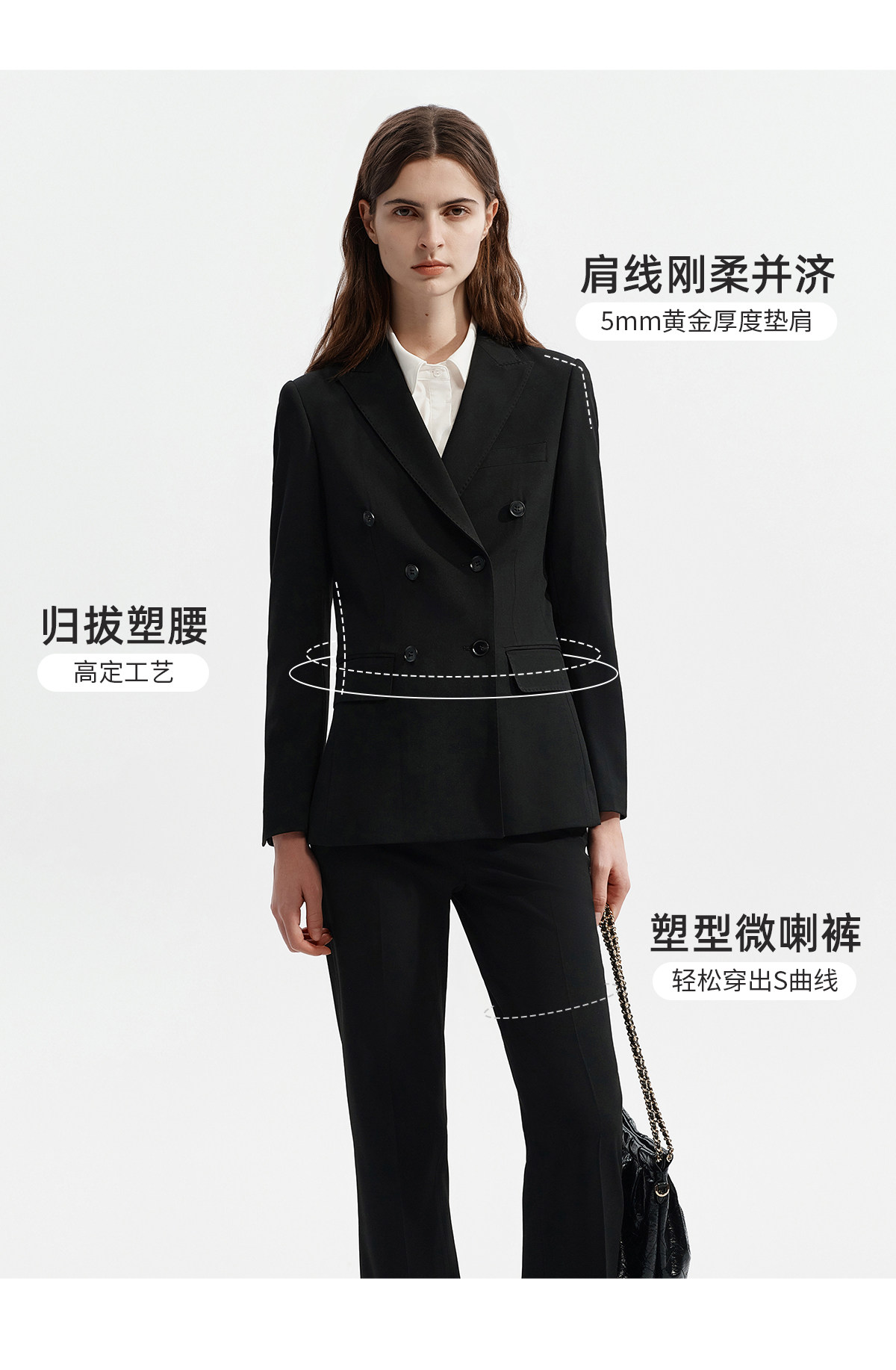 莱伦斯布黑色双排扣西装外套女大学生面试正装小个子收腰西服套装