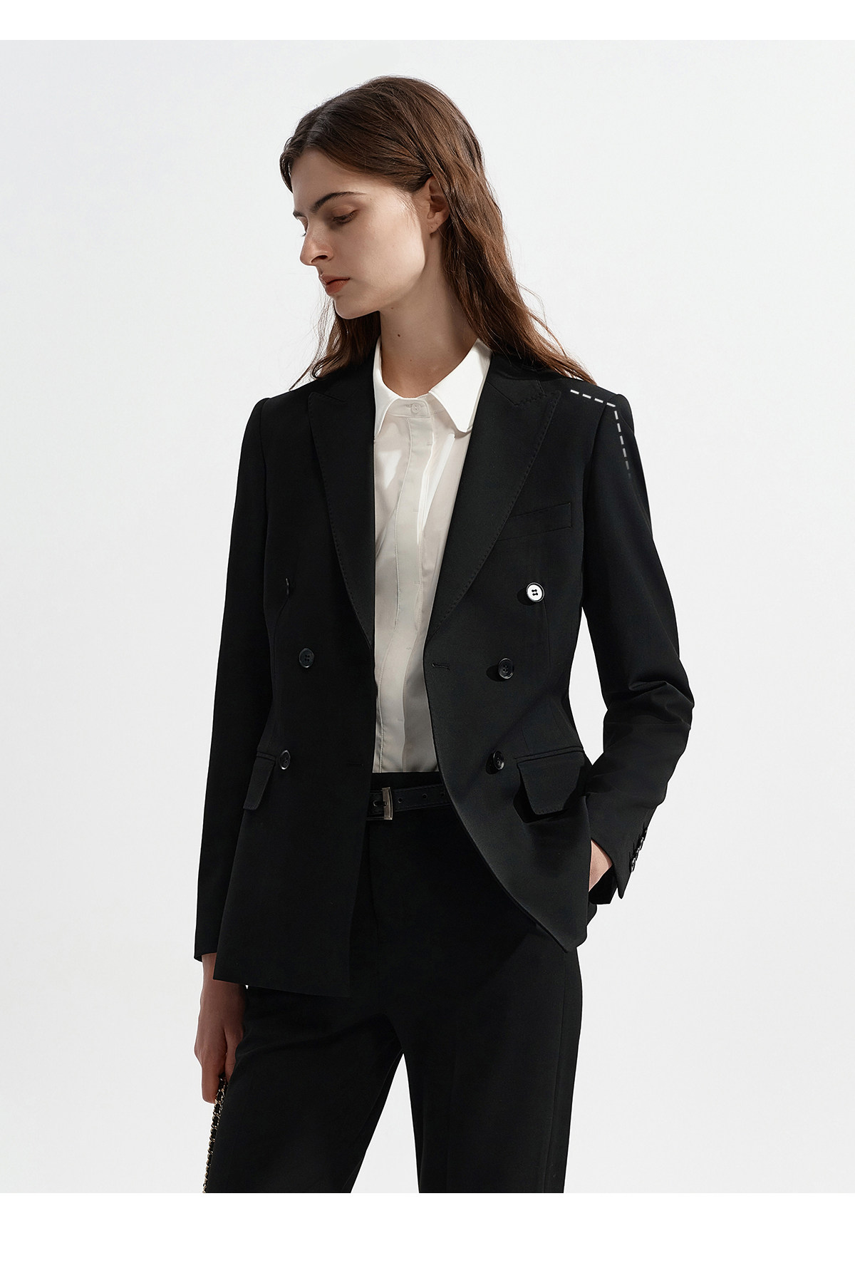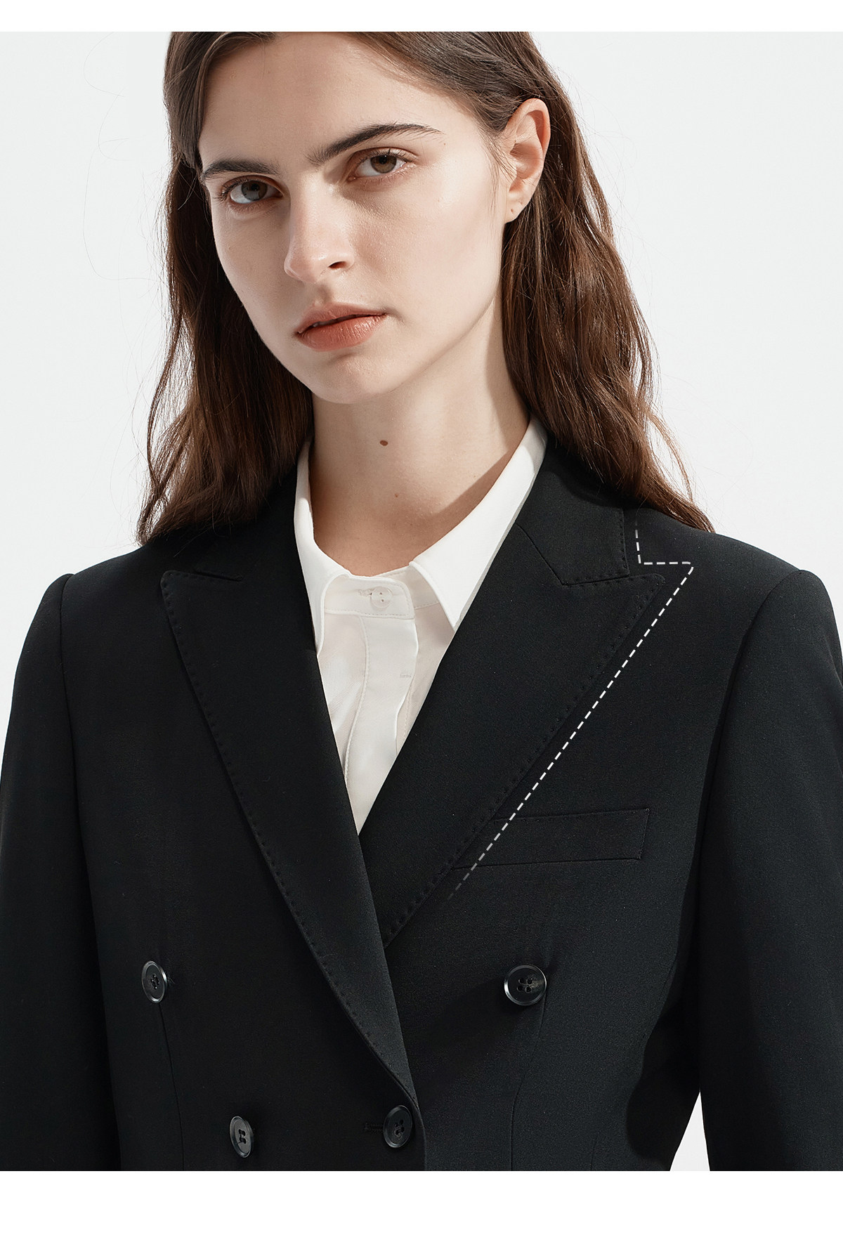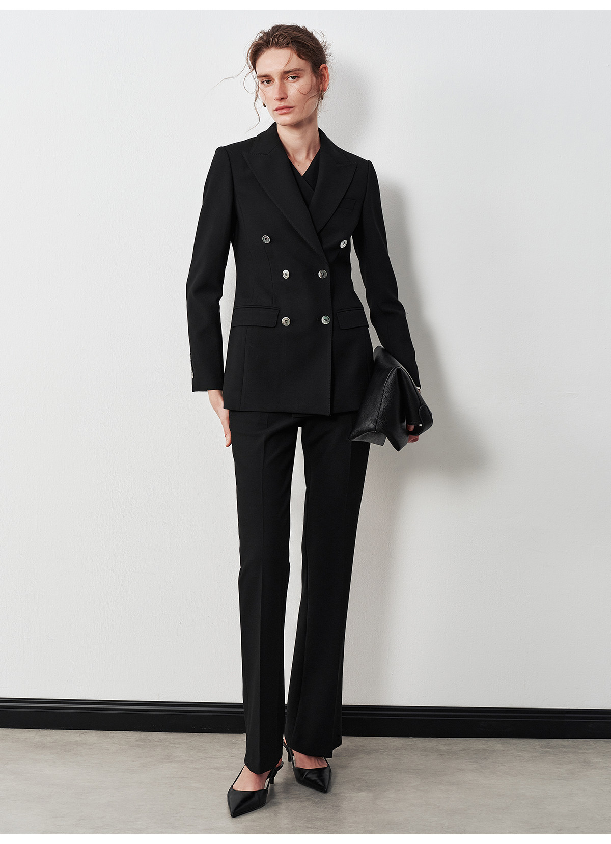 莱伦斯布黑色双排扣西装外套女大学生面试正装小个子收腰西服套装