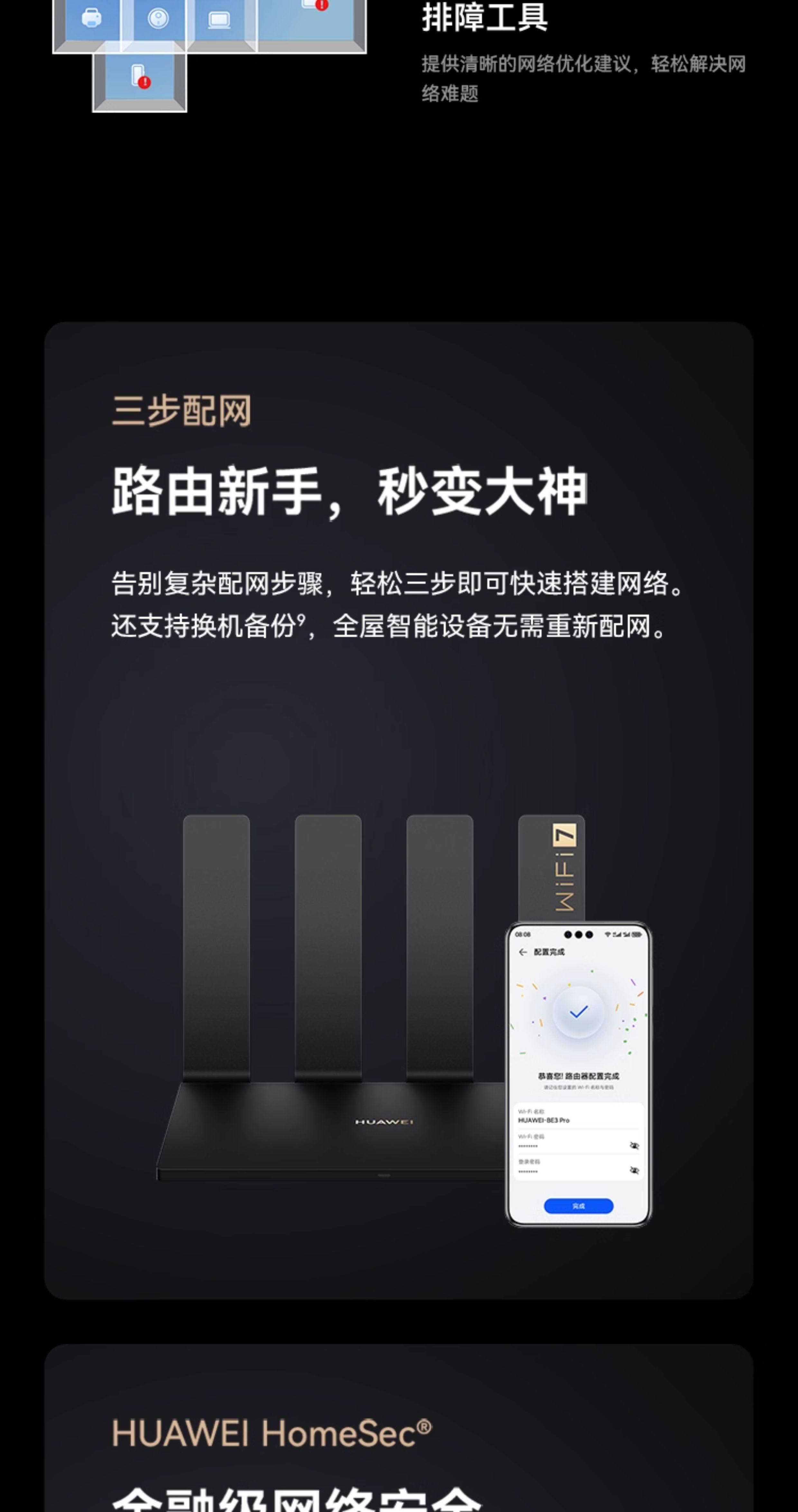 Huawei-Router BE3Pro WLAN-Router Gigabit-Hochgeschwindigkeits-Heimwanddurchdringung King 2025 neues kabelloses WLAN für das ganze Haus7, das Glasfaser-Dualband-Großhausnetzwerke abdeckt