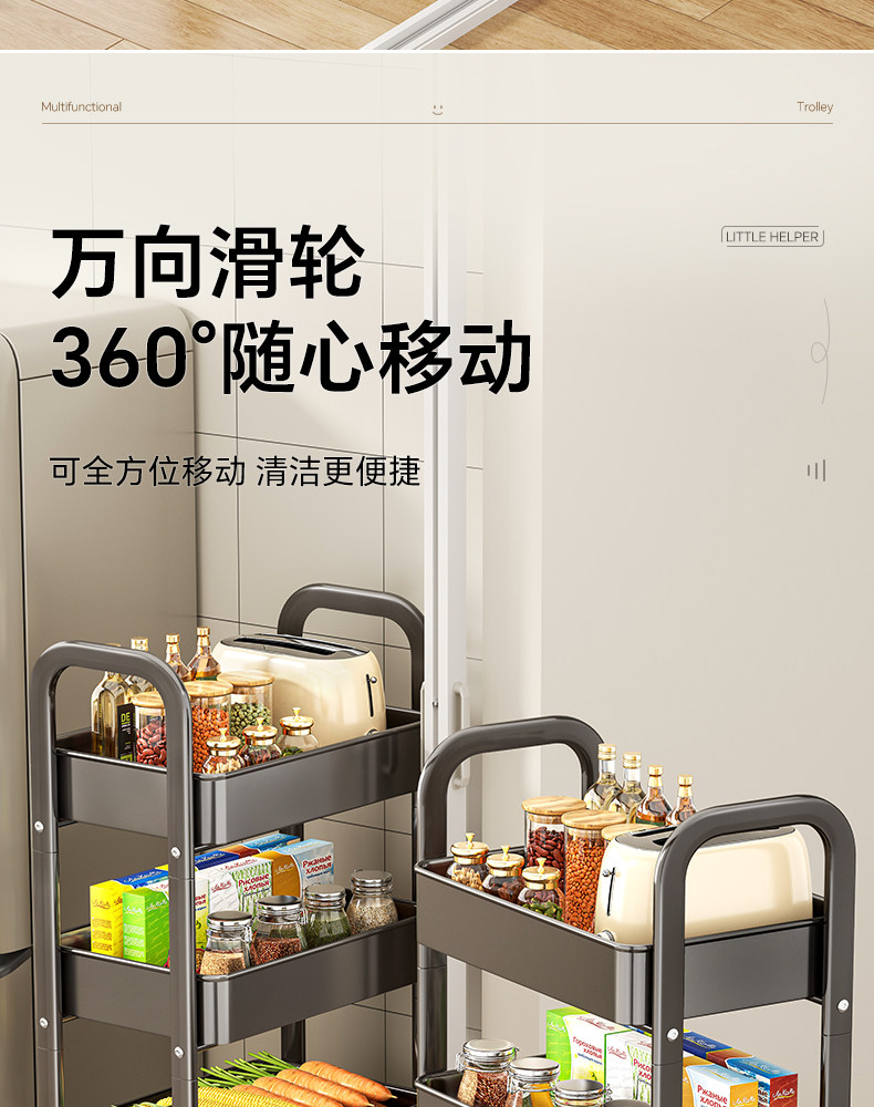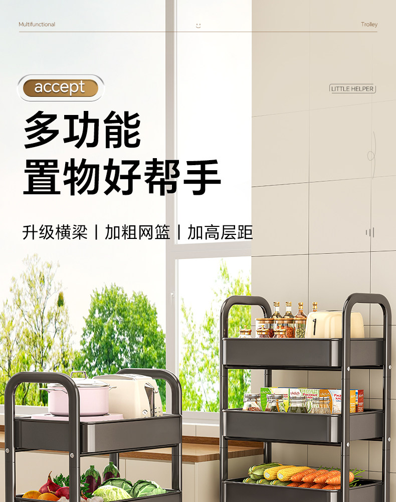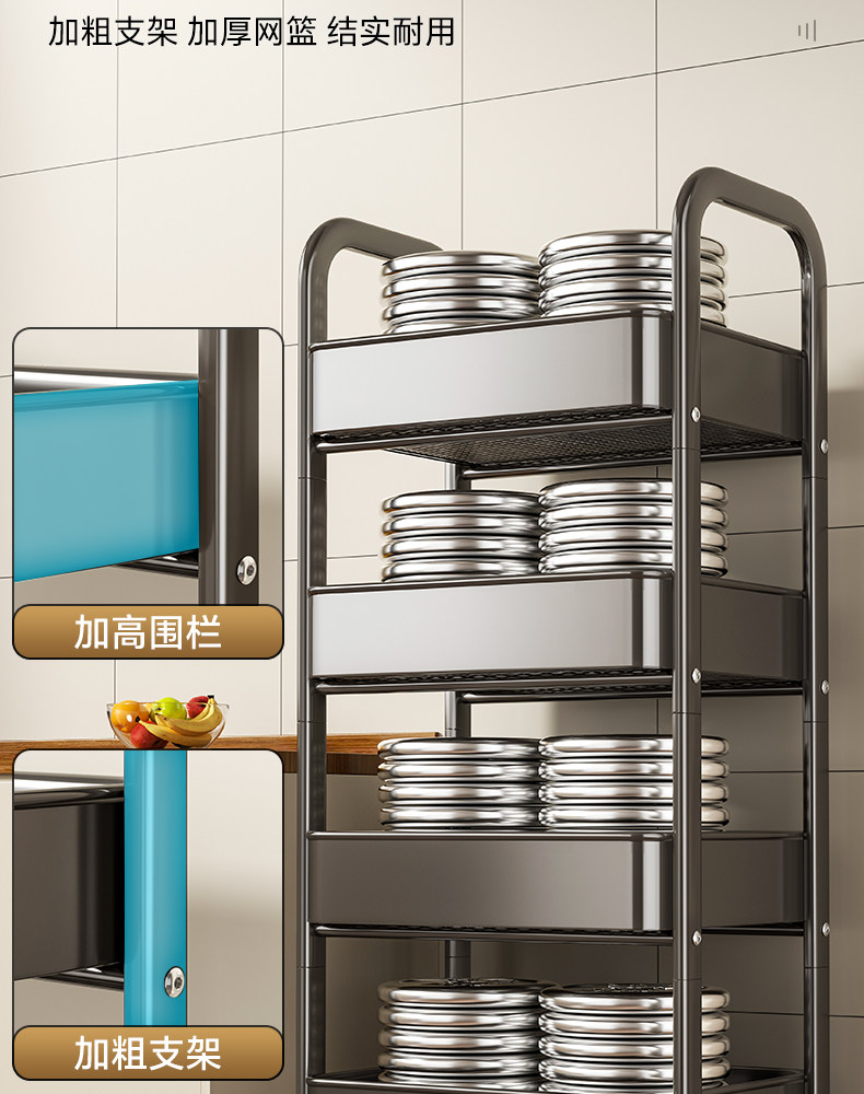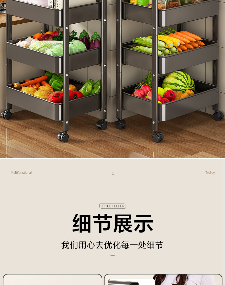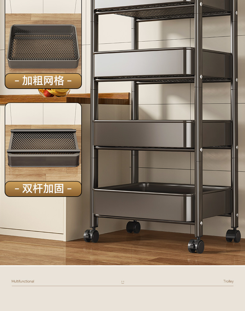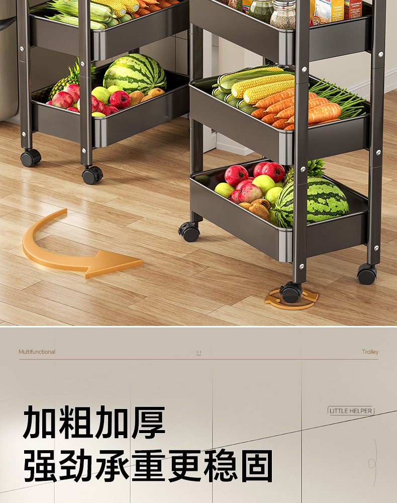 Kitchen Storage Rack Trolley, Floor-Standing, Household, Movable, Multi-Layer Shelf, Multi-Functional Fruit and Vegetable Basket Storage Rack