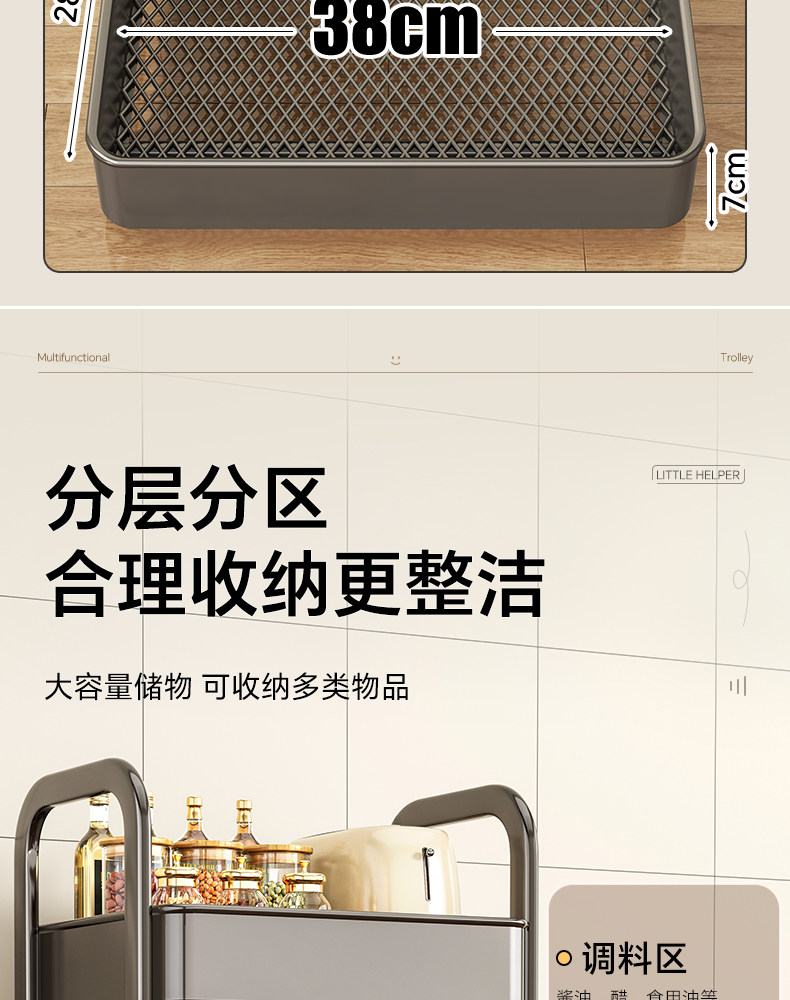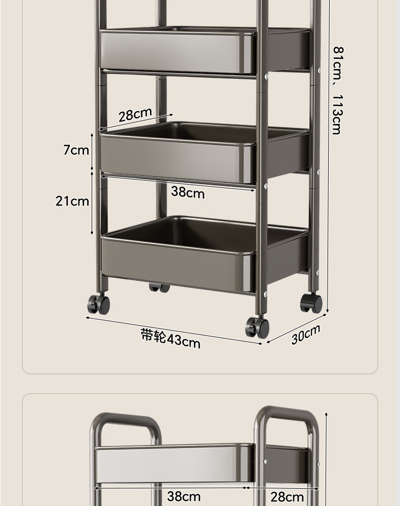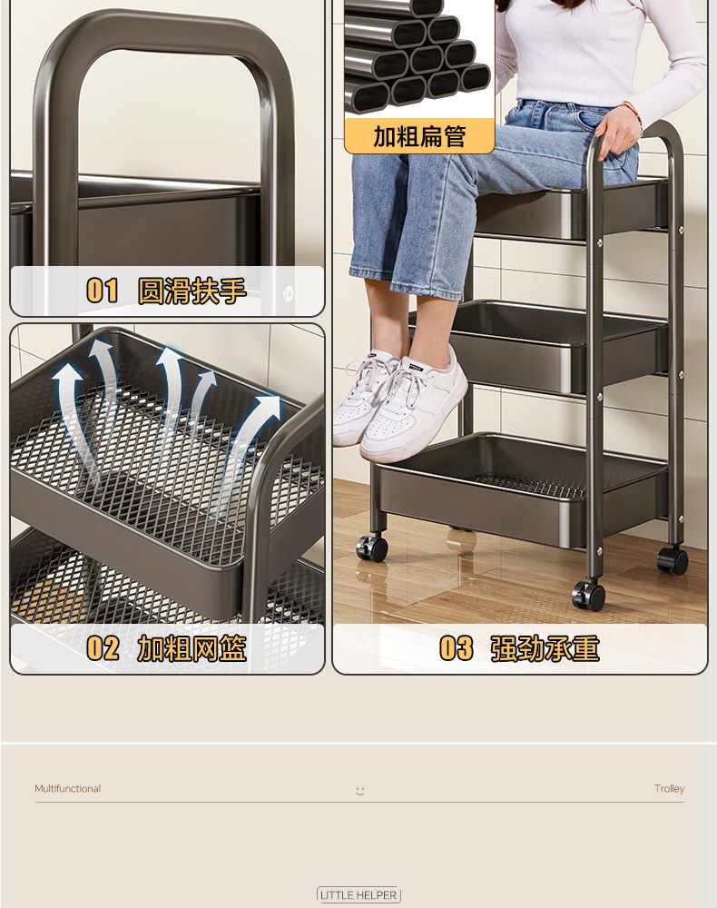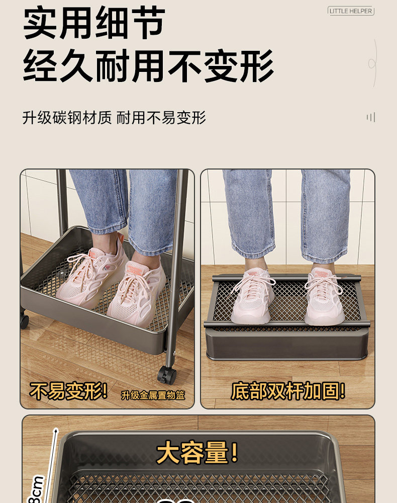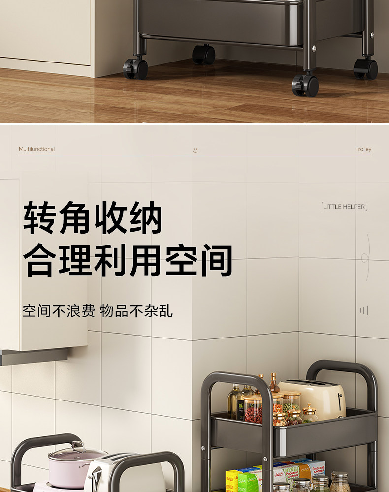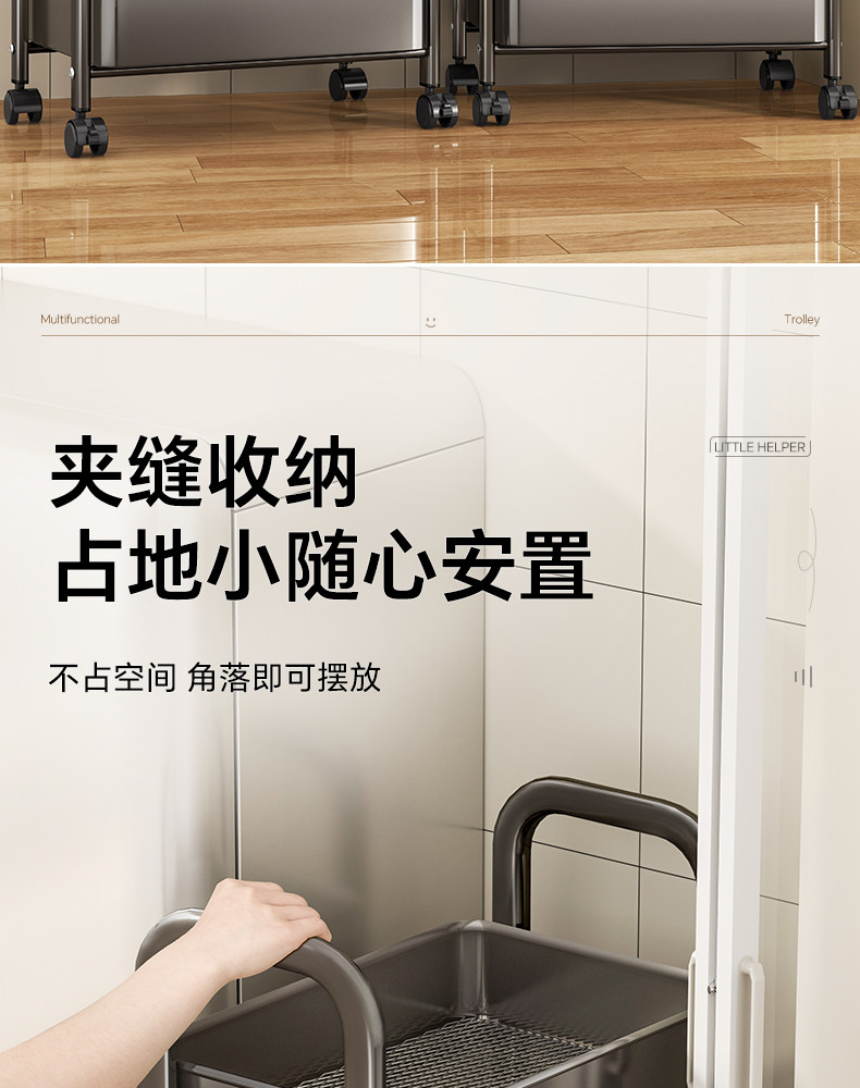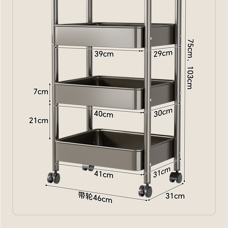 Kitchen Storage Rack Trolley, Floor-Standing, Household, Movable, Multi-Layer Shelf, Multi-Functional Fruit and Vegetable Basket Storage Rack