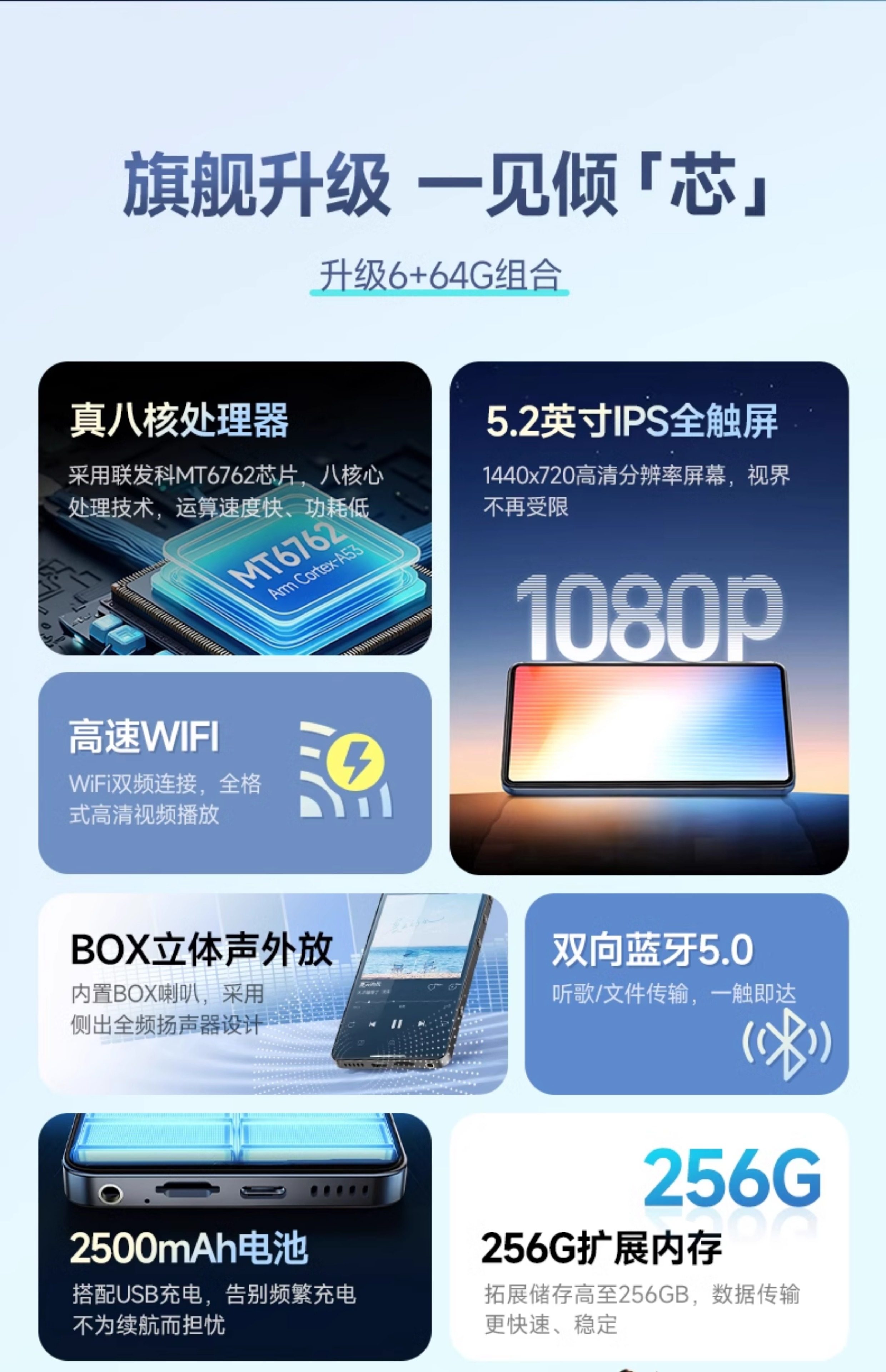 Farbklassifizierung Das neue Flaggschiff MP5 wurde auf 6G aktualisiert und verfügt über einen 5,2-Zoll-HD-Bildschirm mit Android 15.0,4,7-Zoll-Flaggschiffmodell, 6+64G großer Speicher, Android 14.0