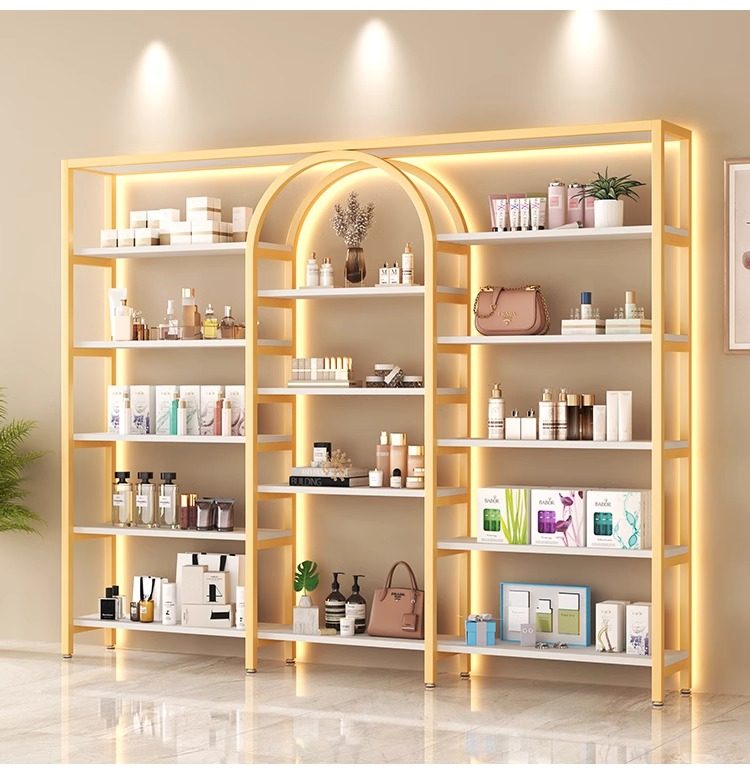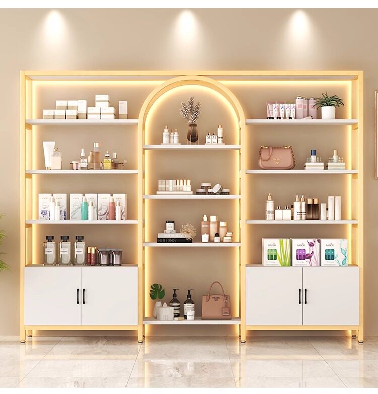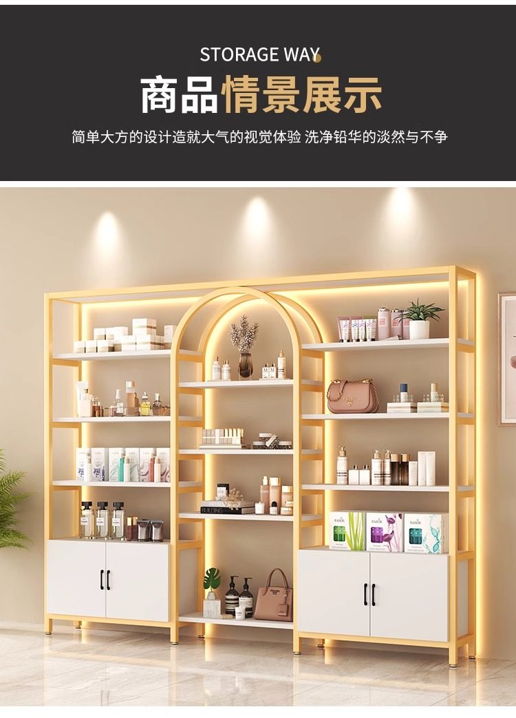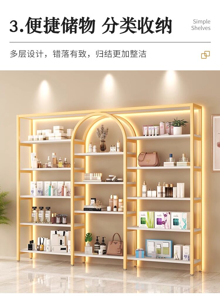 美容院展示柜轻奢化妆品多层收纳架理发店货柜置物架子母婴陈列柜