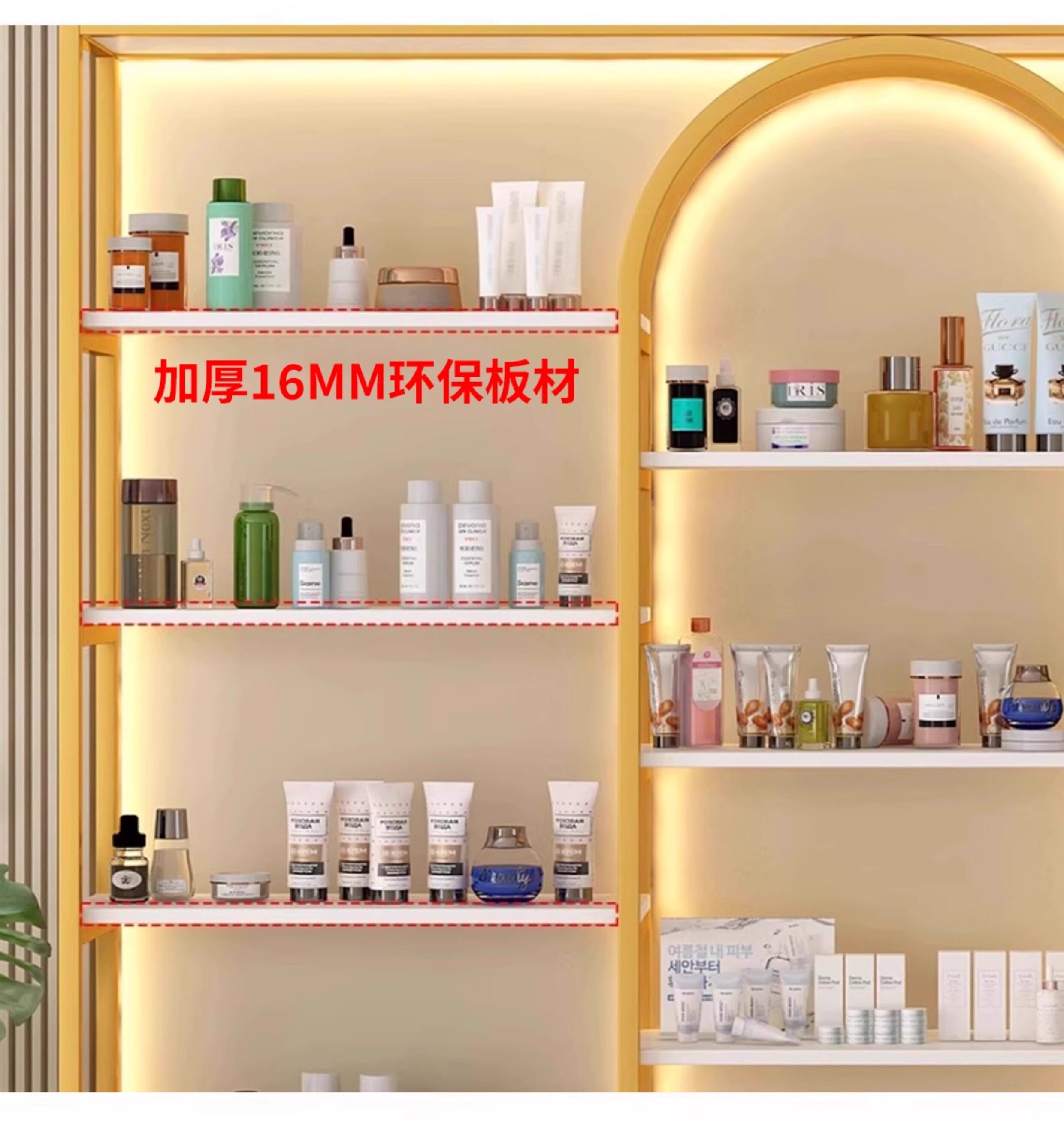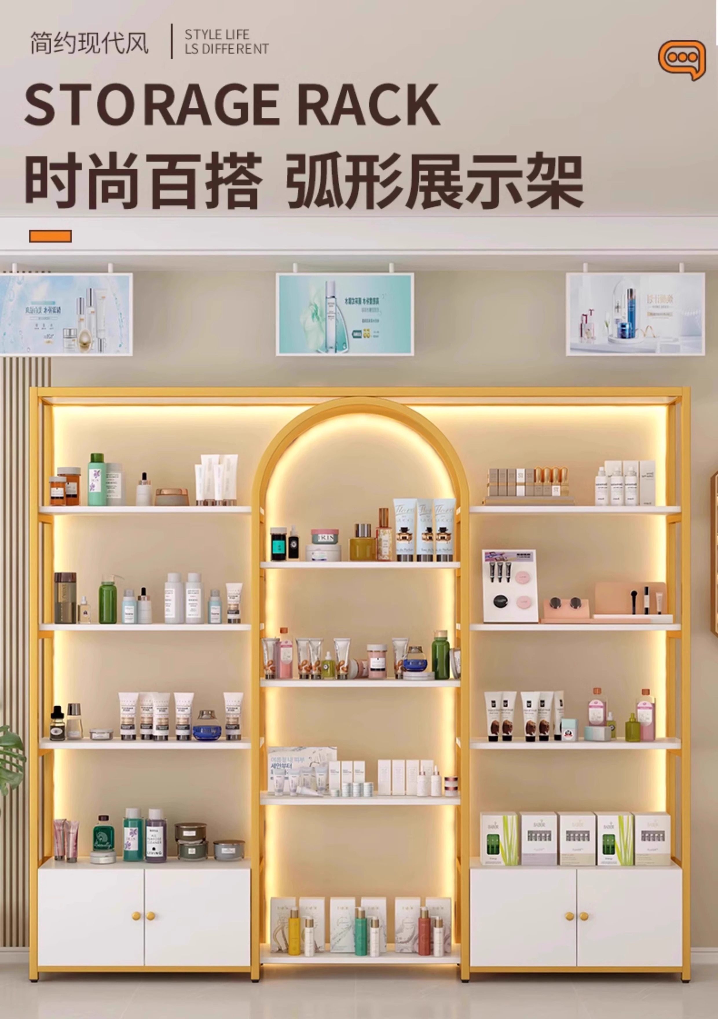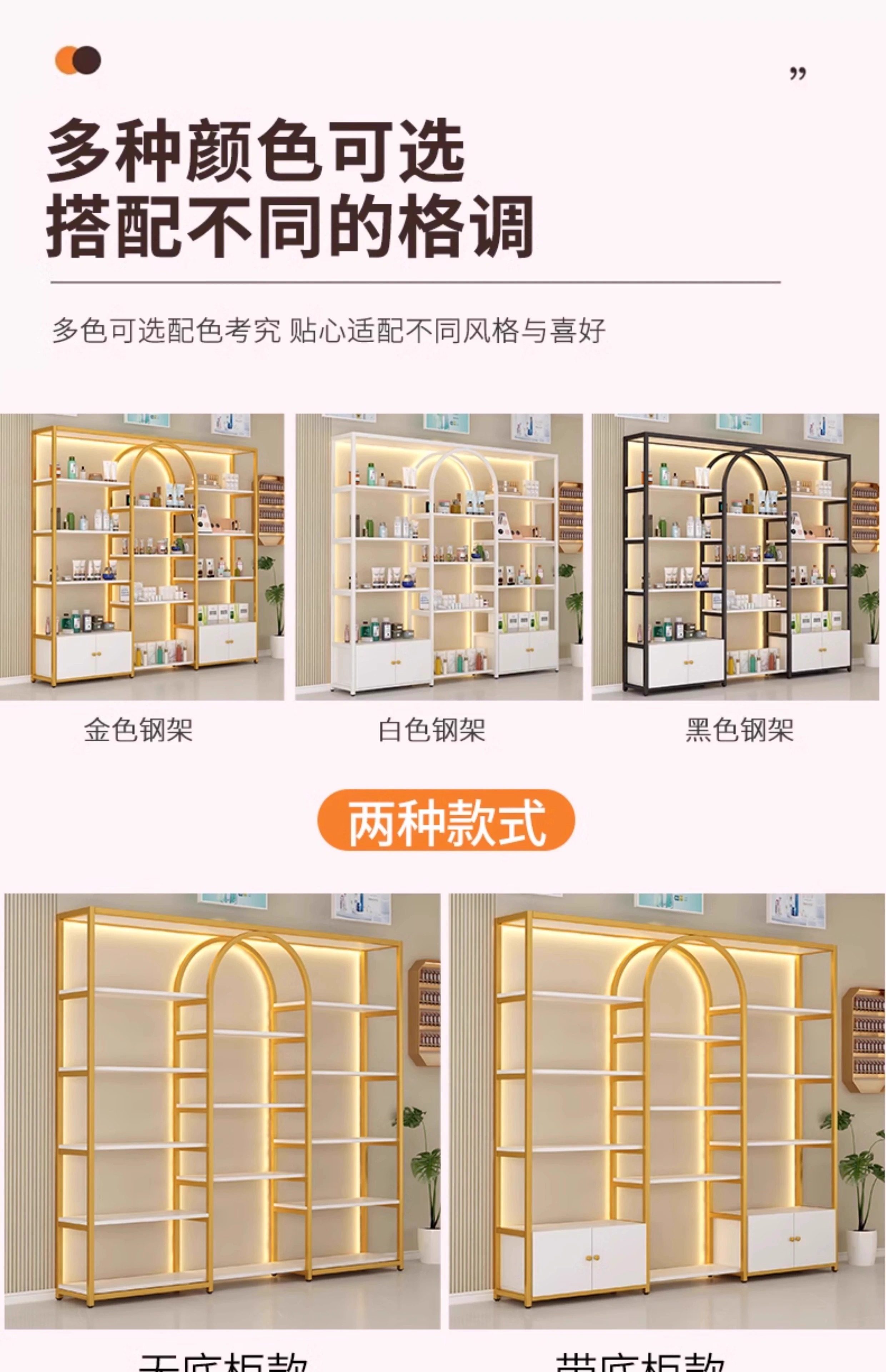 美容院展示柜轻奢化妆品多层收纳架理发店货柜置物架子母婴陈列柜