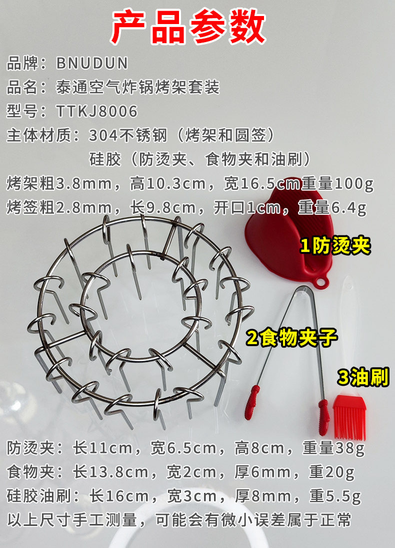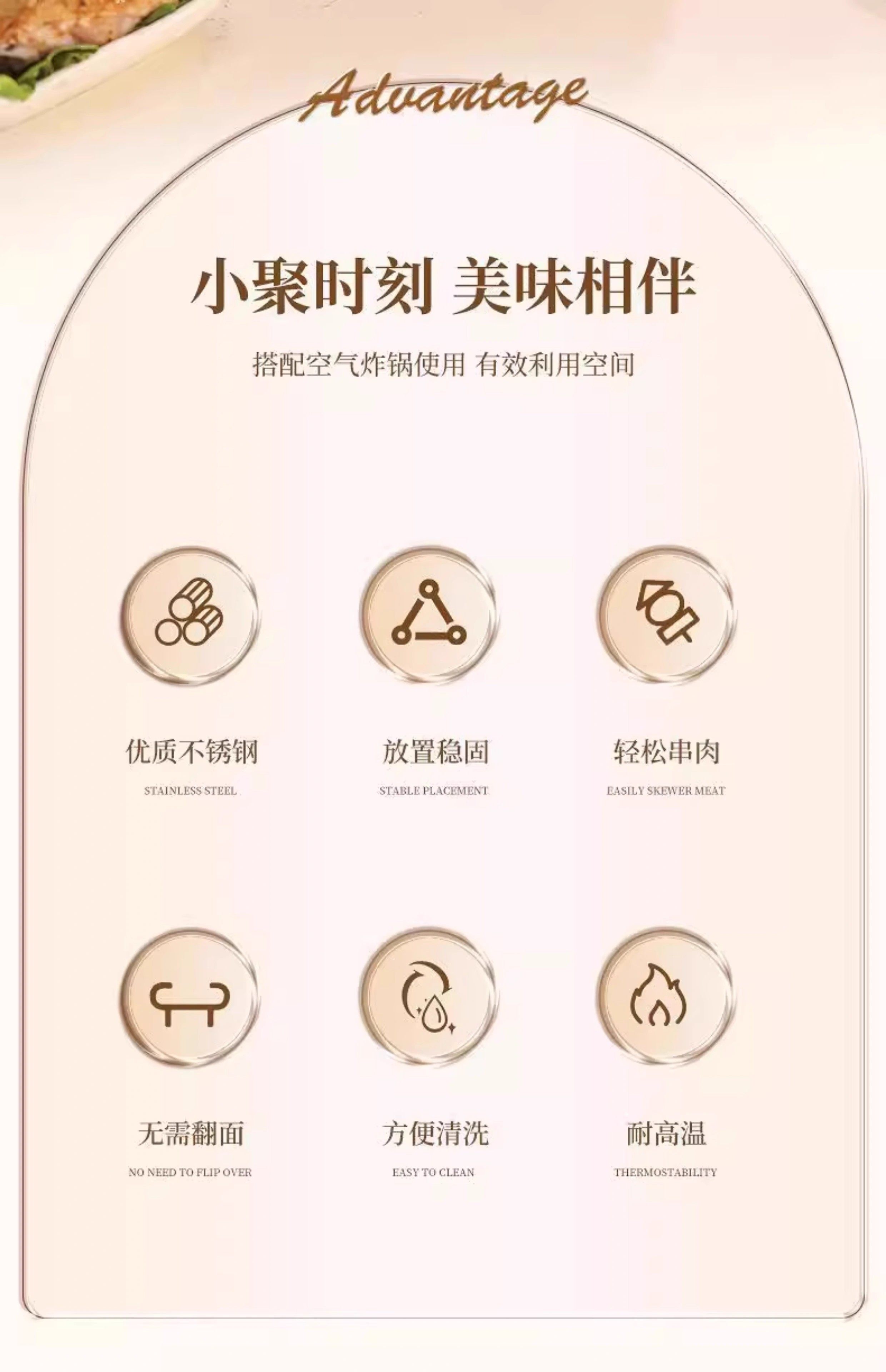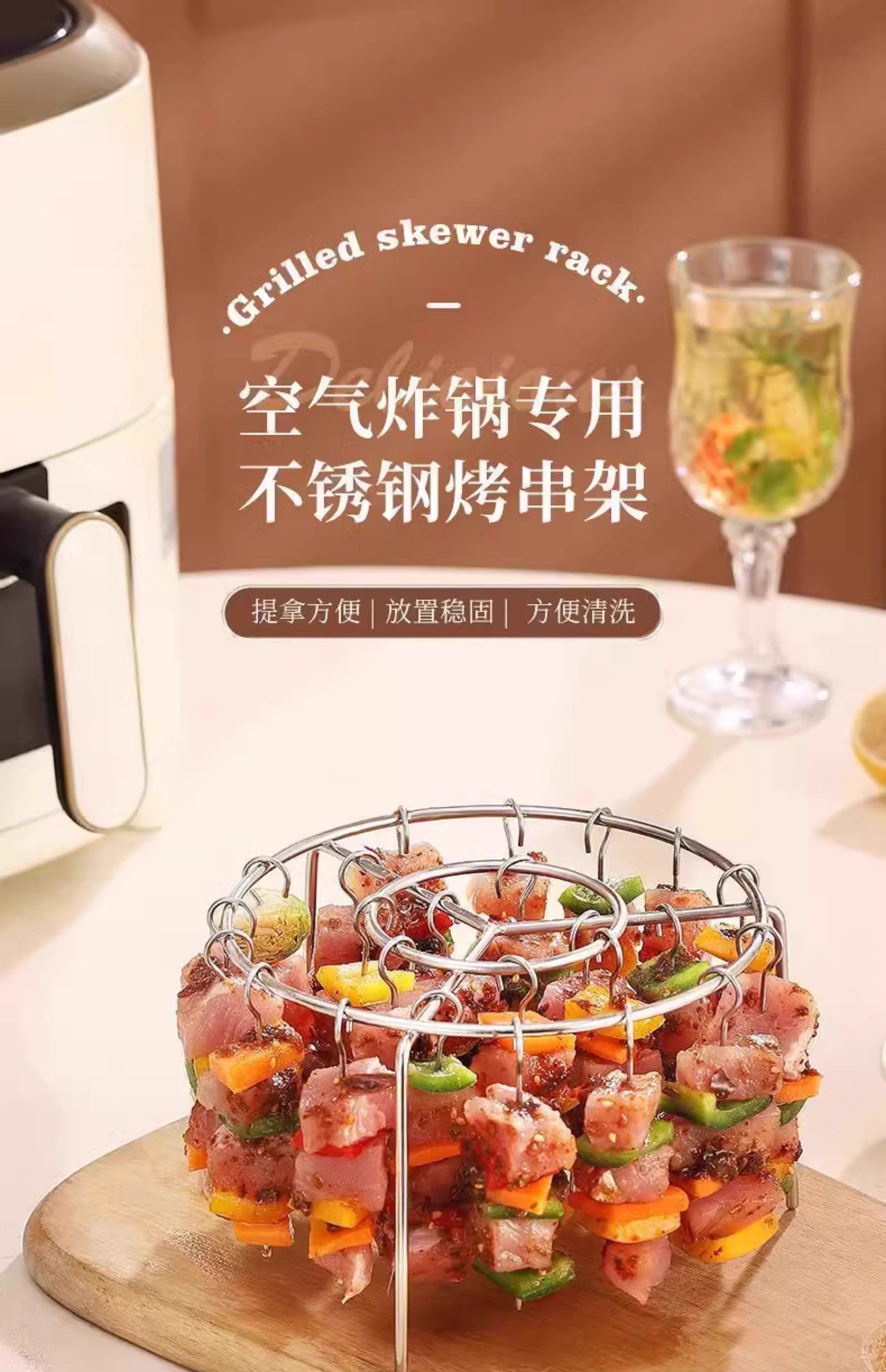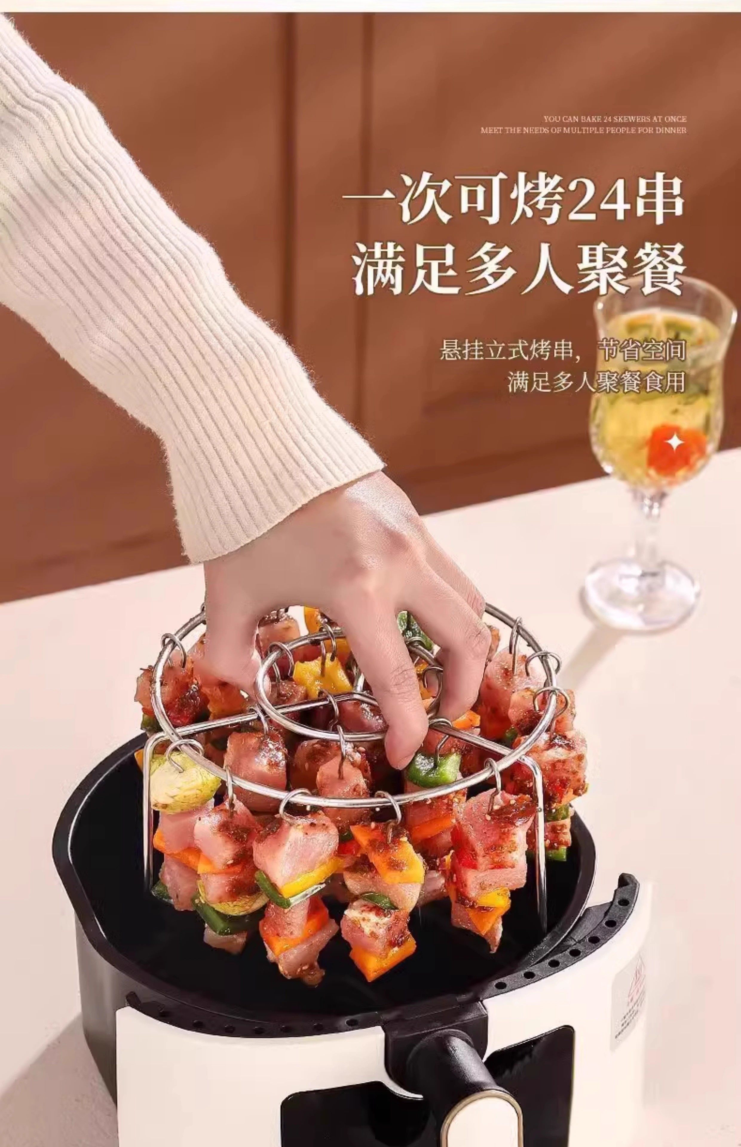 Air Fryer Skewer Rack, Round, Household Use, 304 Food-Grade Stainless Steel Grill Rack, Vertical Hanging Skewer Rack