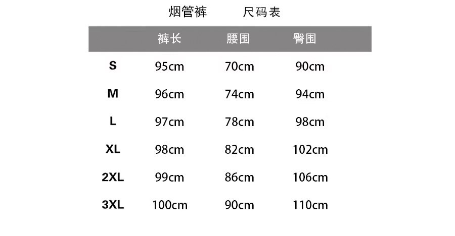 Outseam (cm) 99 cm 101.5 cm 104 cm 106.5 cm 109 cm
