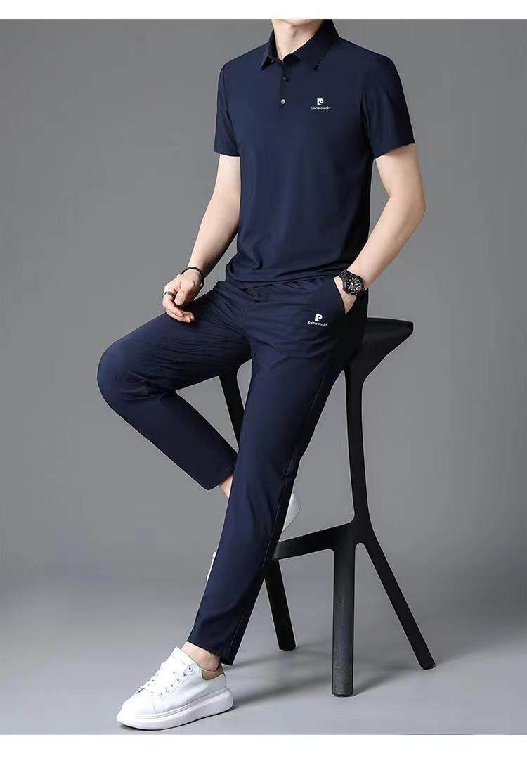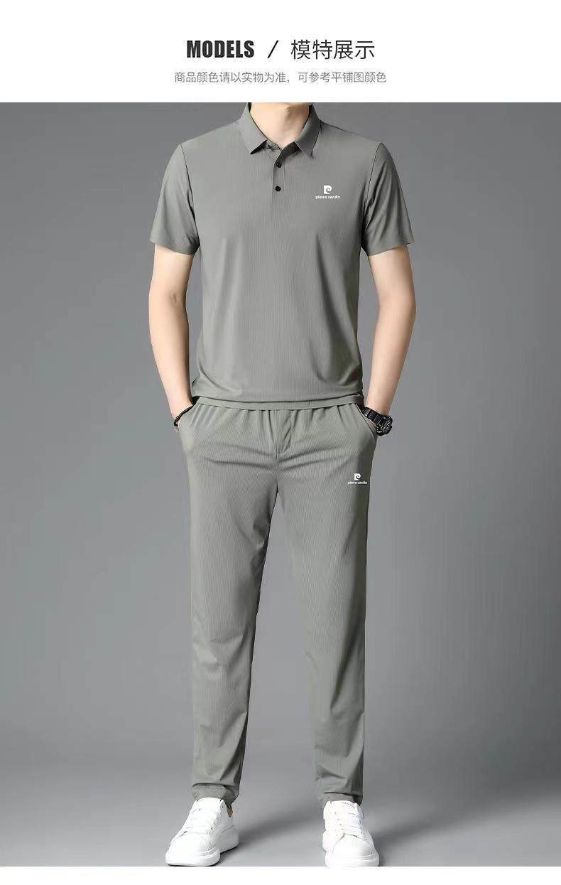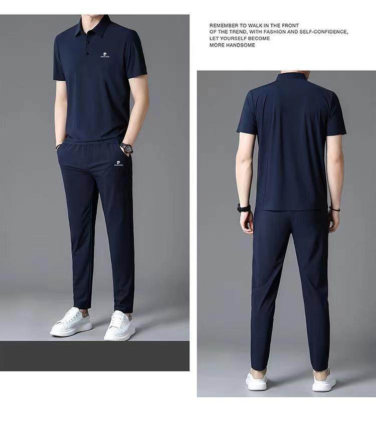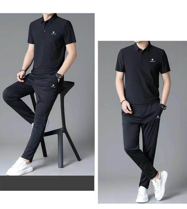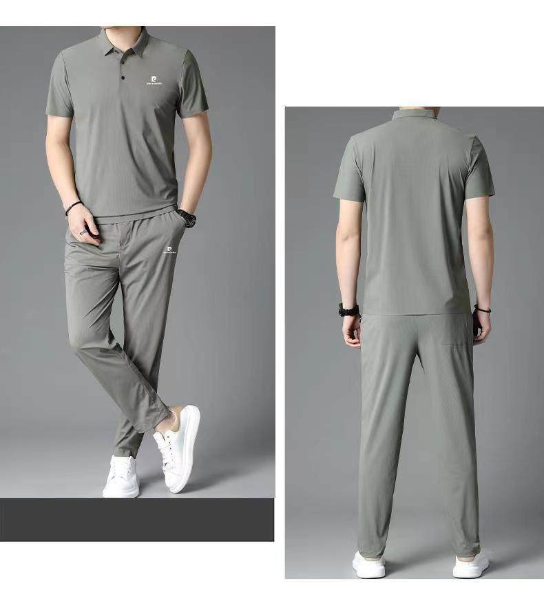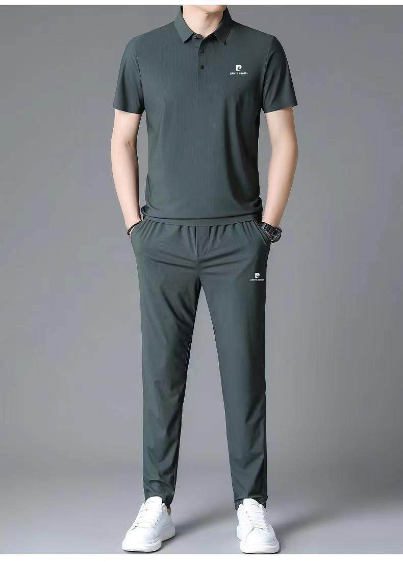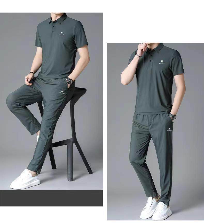 Pierre Cardin's New Summer Ice Silk Casual Sports Suit, Cool and Seamless Short-Sleeved Polo Shirt and Long Pants Two-Piece Set