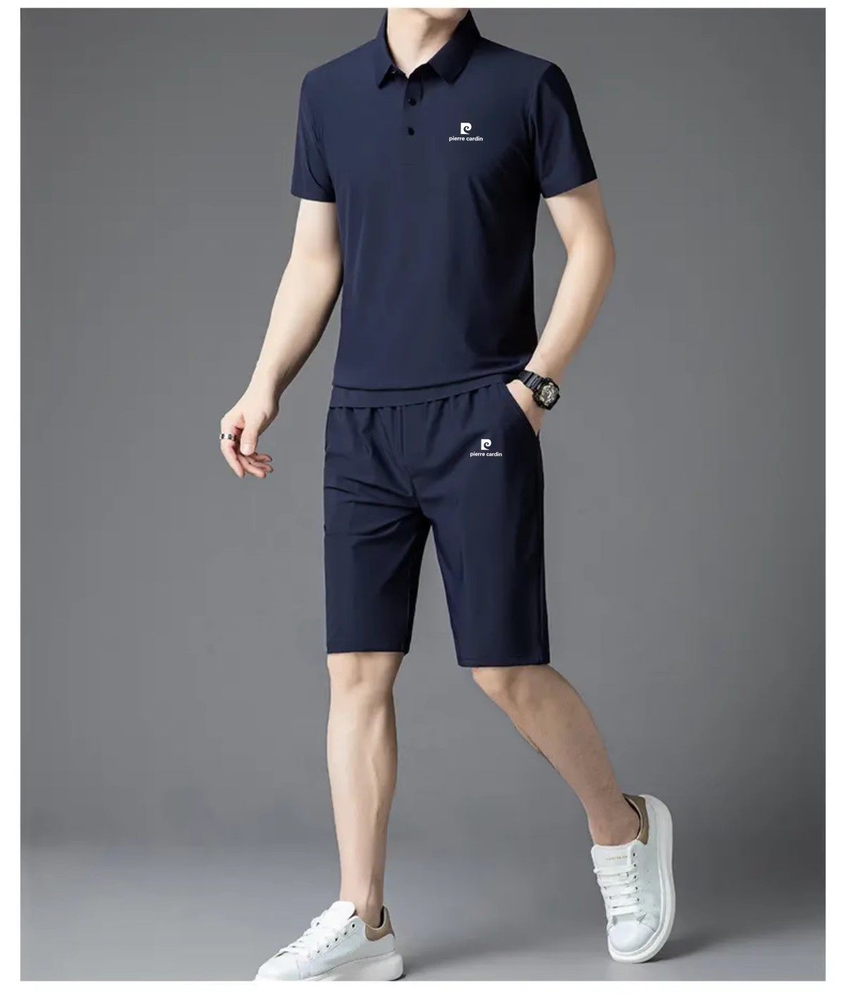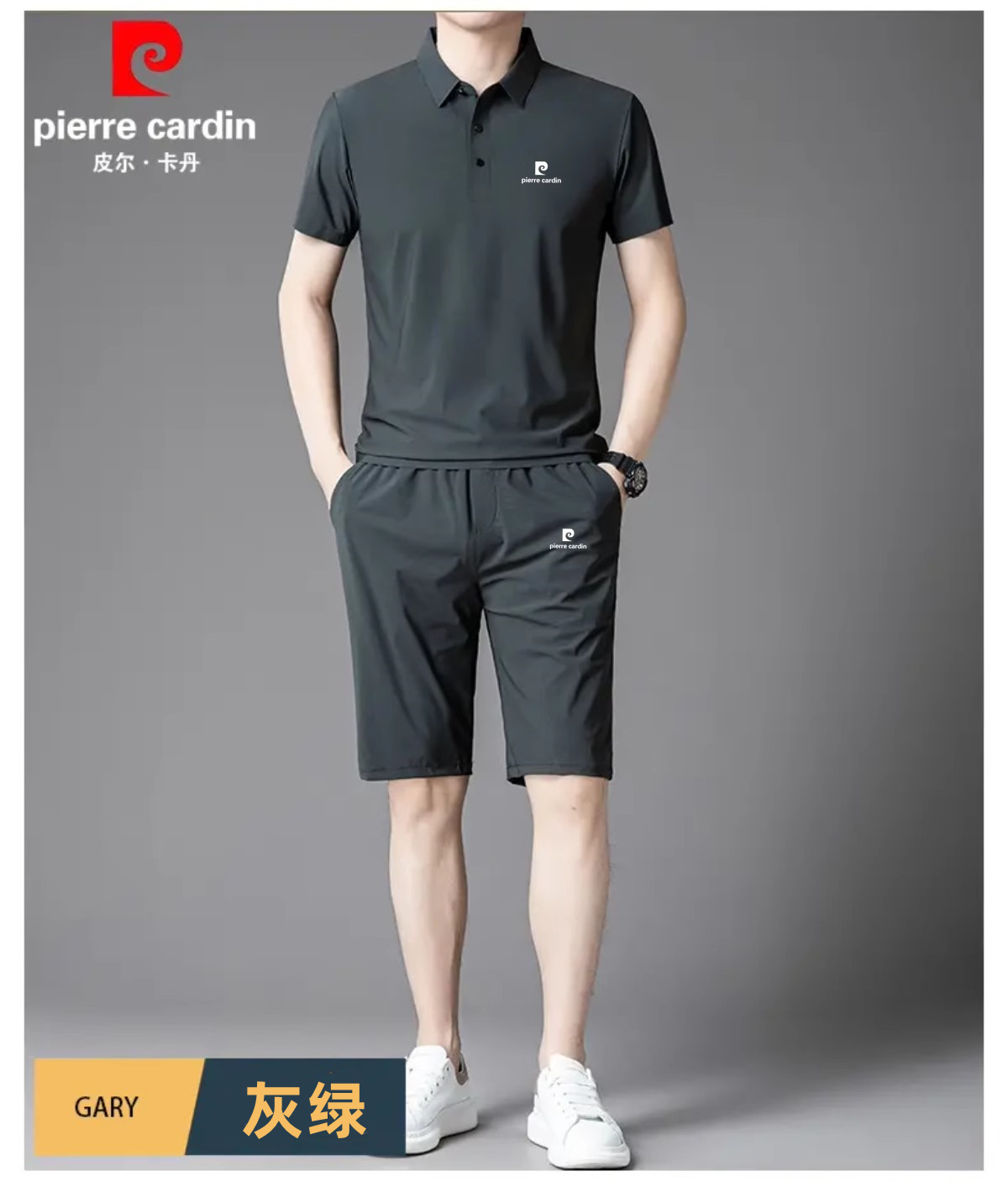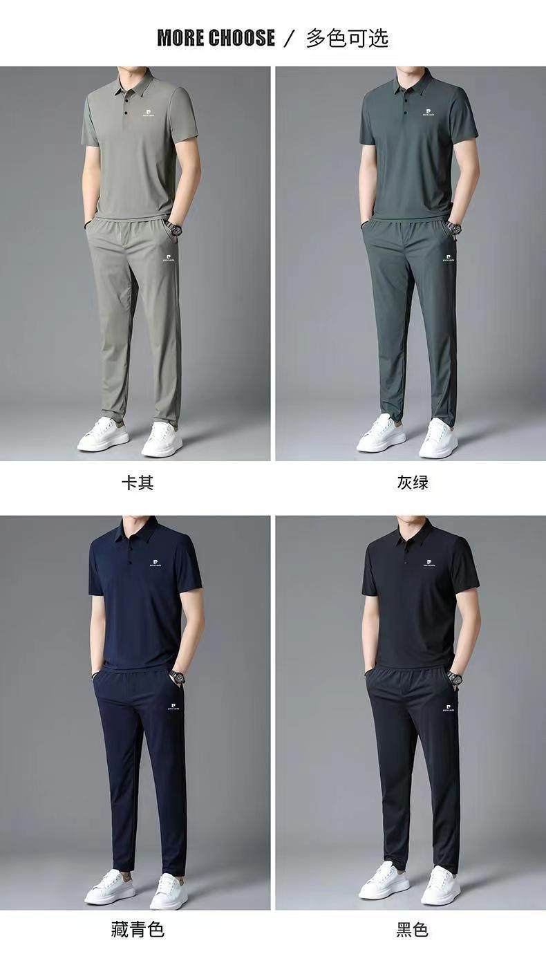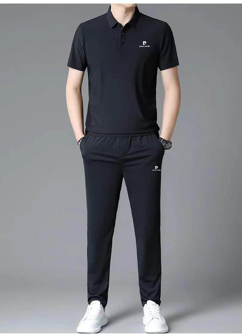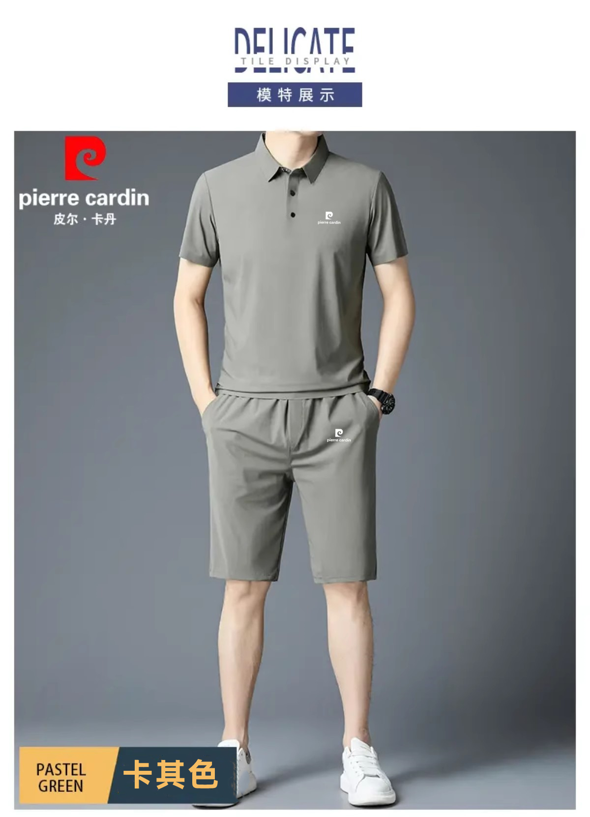 Pierre Cardin's New Summer Ice Silk Casual Sports Suit, Cool and Seamless Short-Sleeved Polo Shirt and Long Pants Two-Piece Set