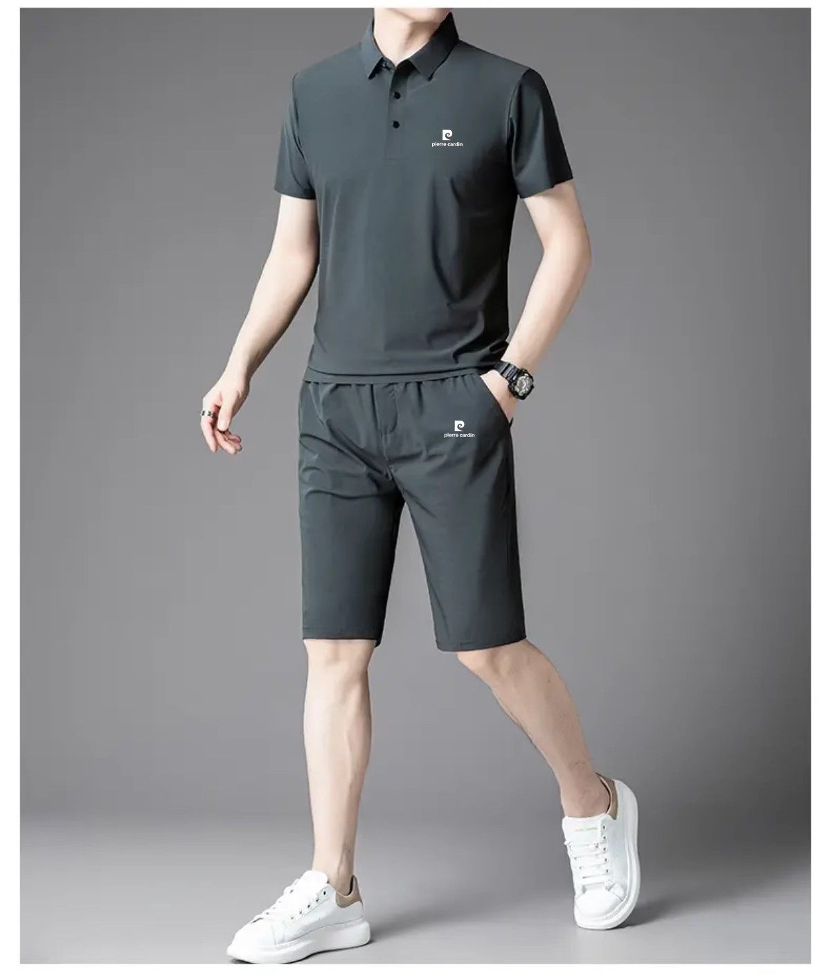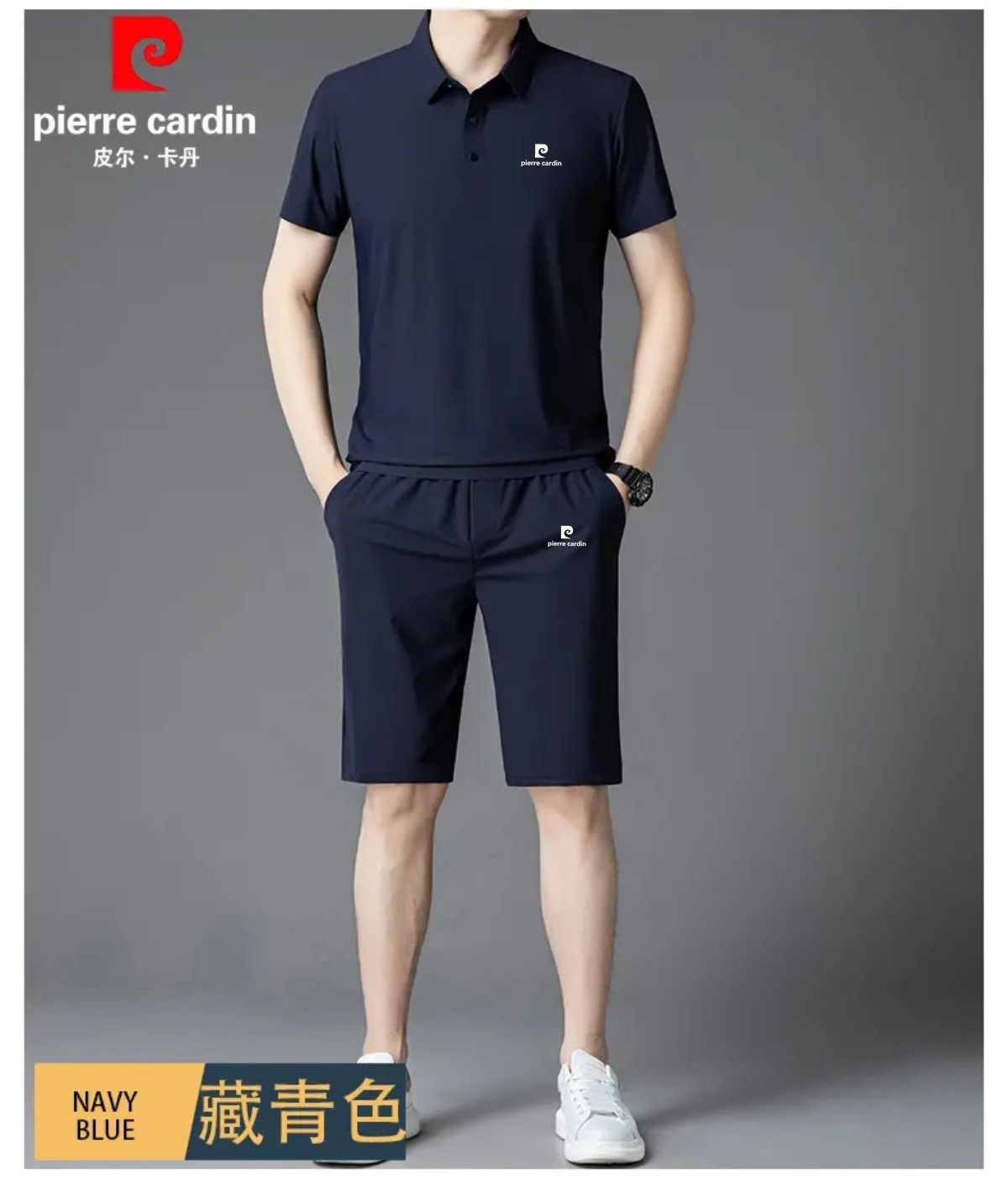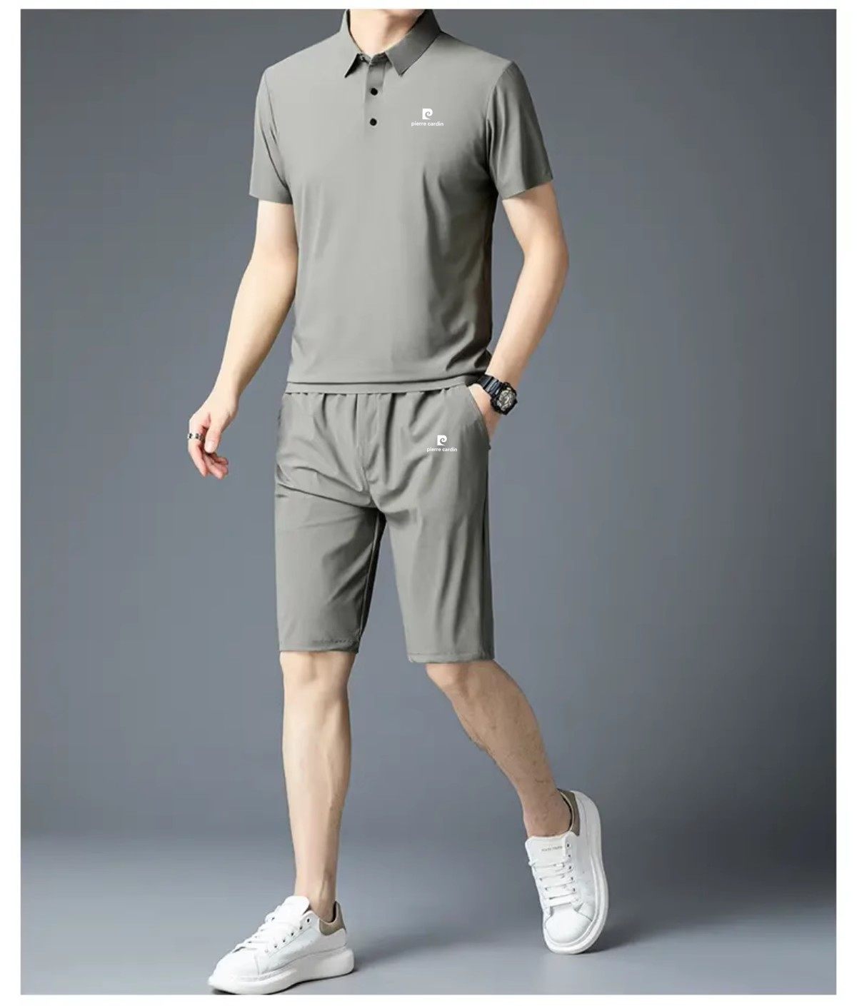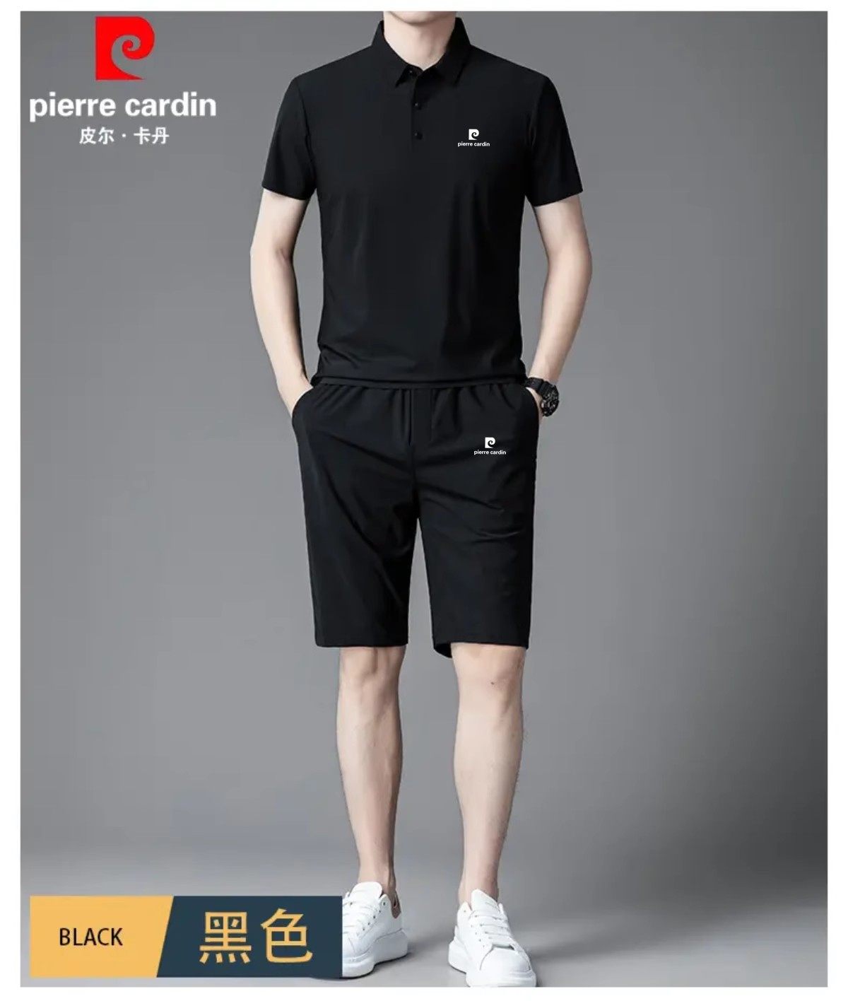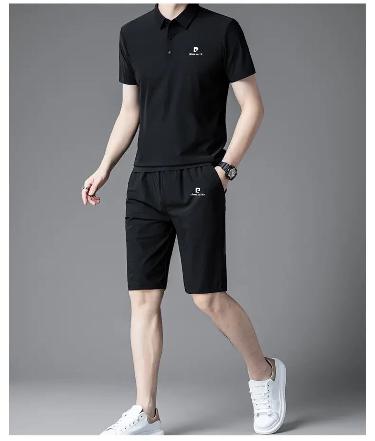 Pierre Cardin's New Summer Ice Silk Casual Sports Suit, Cool and Seamless Short-Sleeved Polo Shirt and Long Pants Two-Piece Set