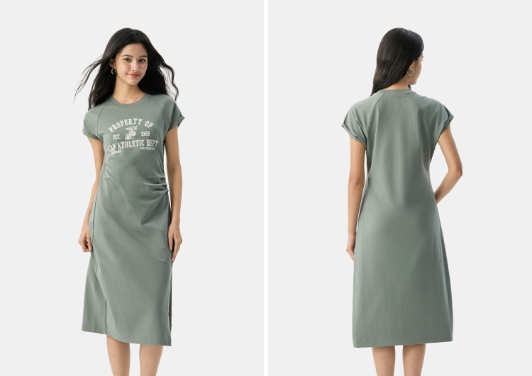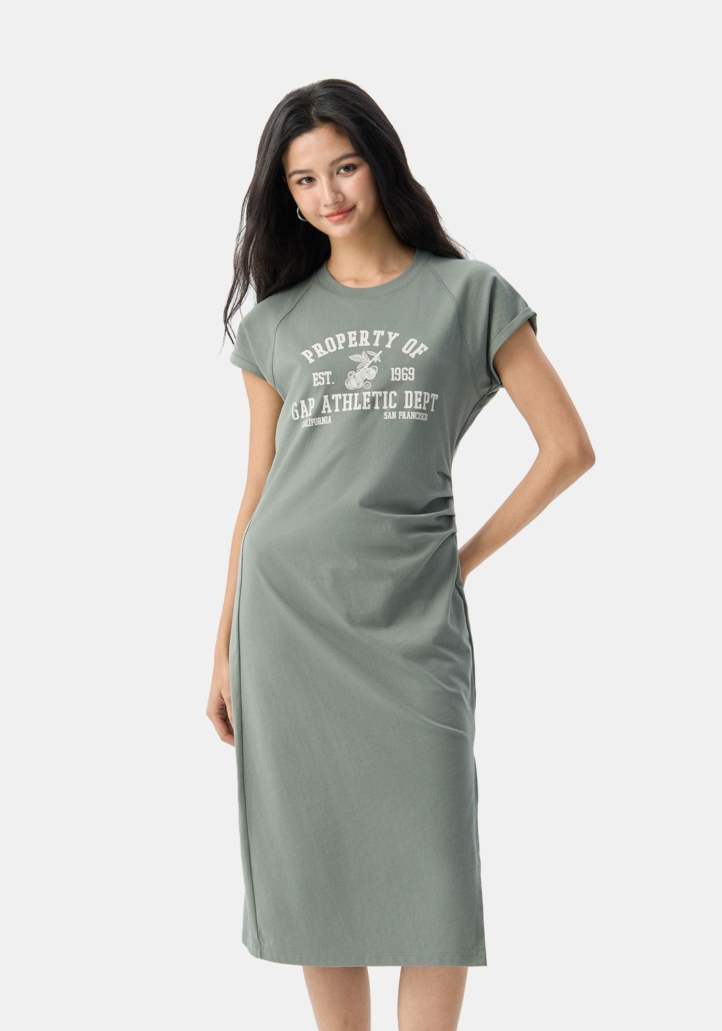 [Cheng Yi Endorsement]Gap Women's 2025 Summer New Logo Split Cotton Short-Sleeve Dress 764855
