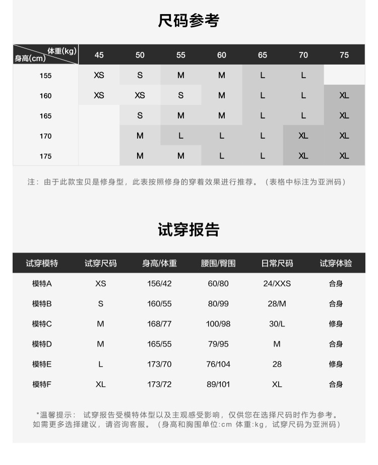 China (cm) 160-165/84-86 165-170 / 88-90 167-172 / 92-96 168-173 / 98-102 170-176 / 106-110