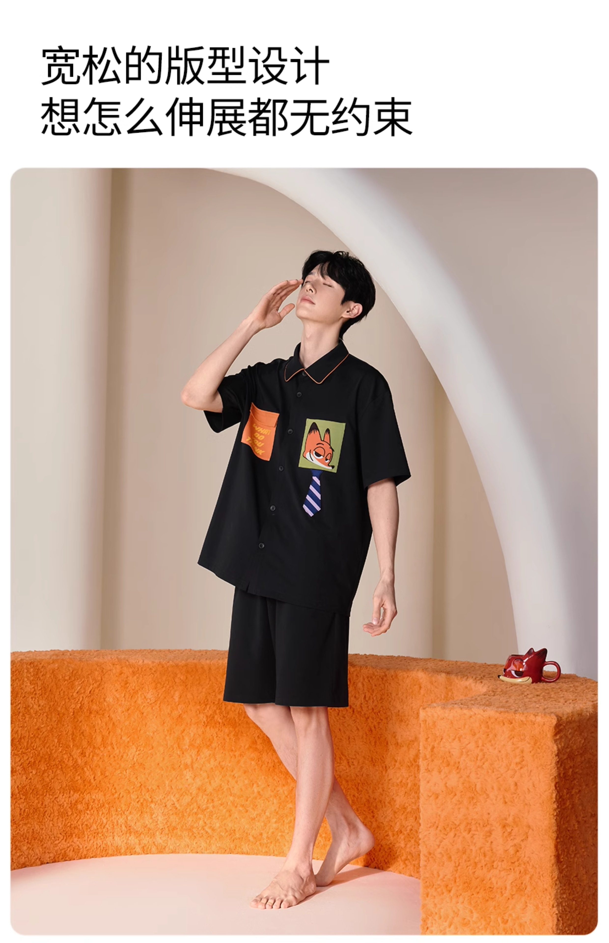 静韵【凉感型】疯狂动物城睡衣男款夏季短袖纯棉家居服可外穿套装