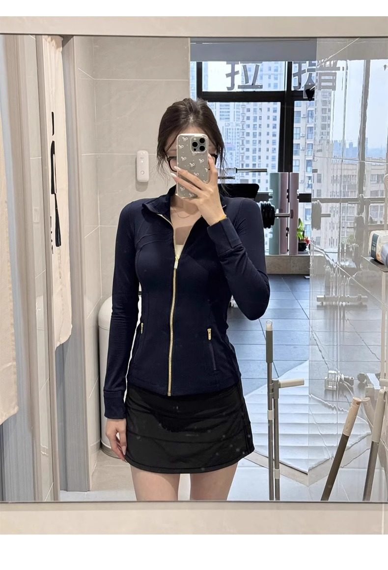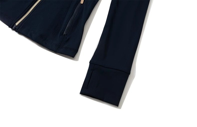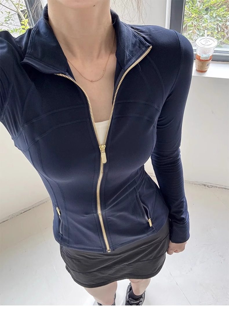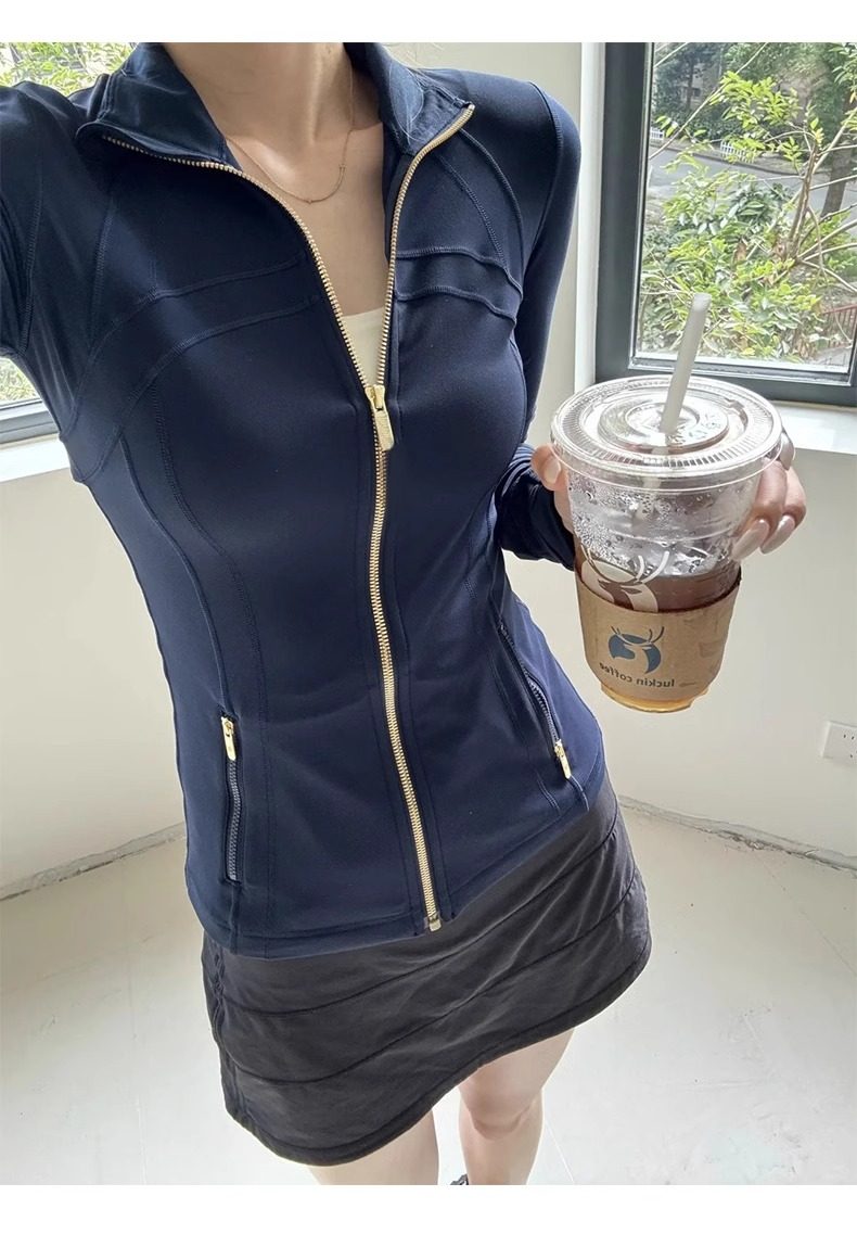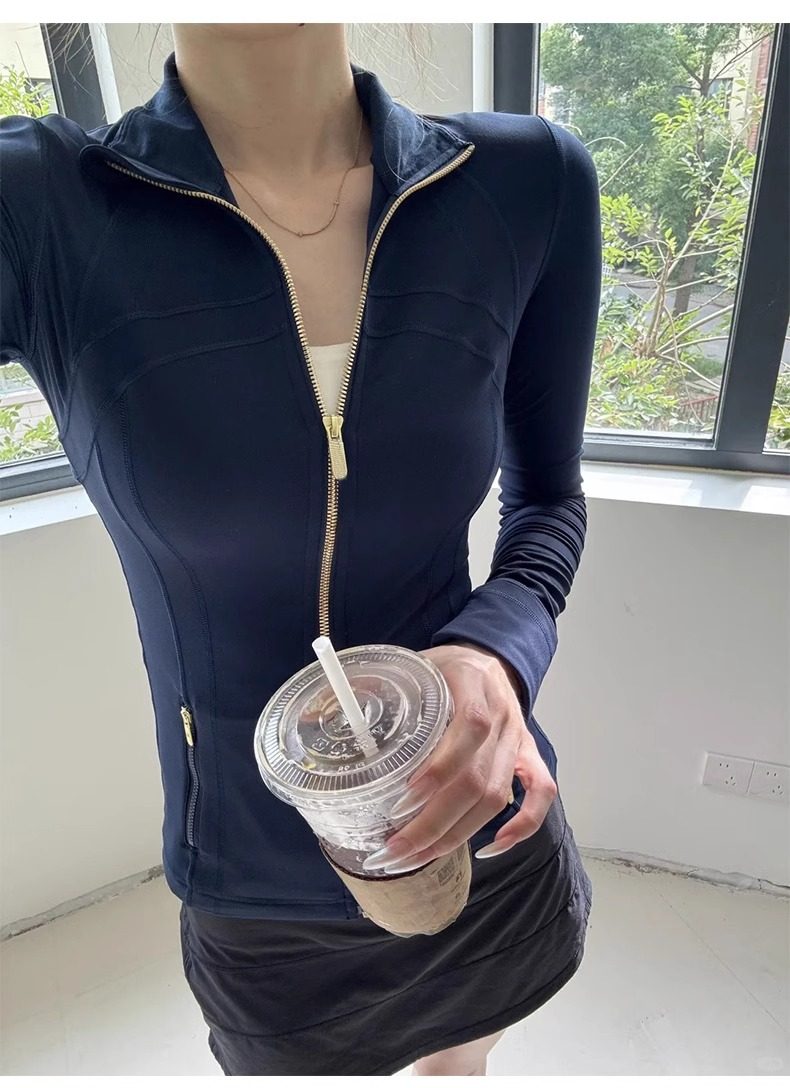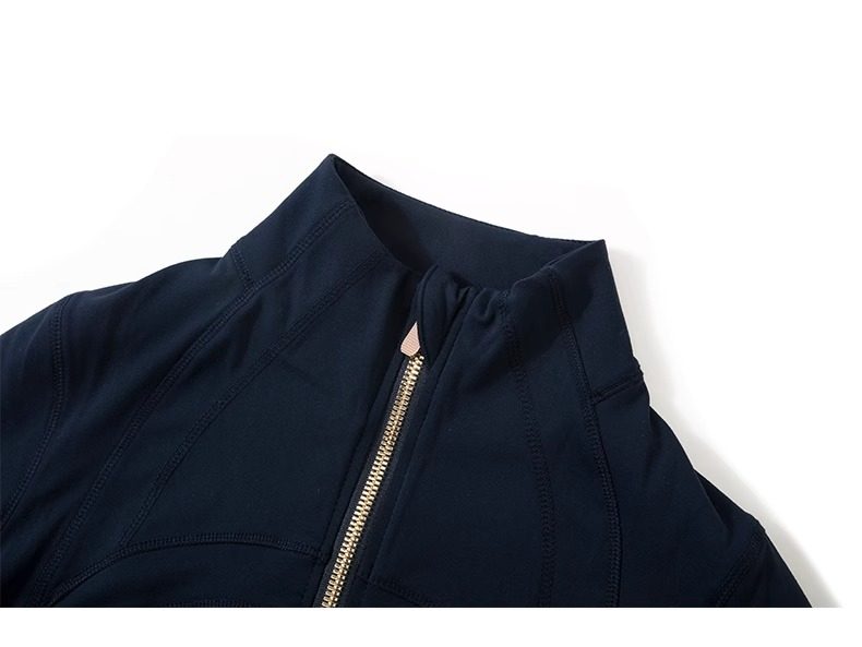 Marineblaue, dünne Yoga-Kleidung, Top-Jacke für Damen, Stehkragen, Fischgrät-Taille, schmale Passform, 2025, neue Frühherbst-Kleidung
