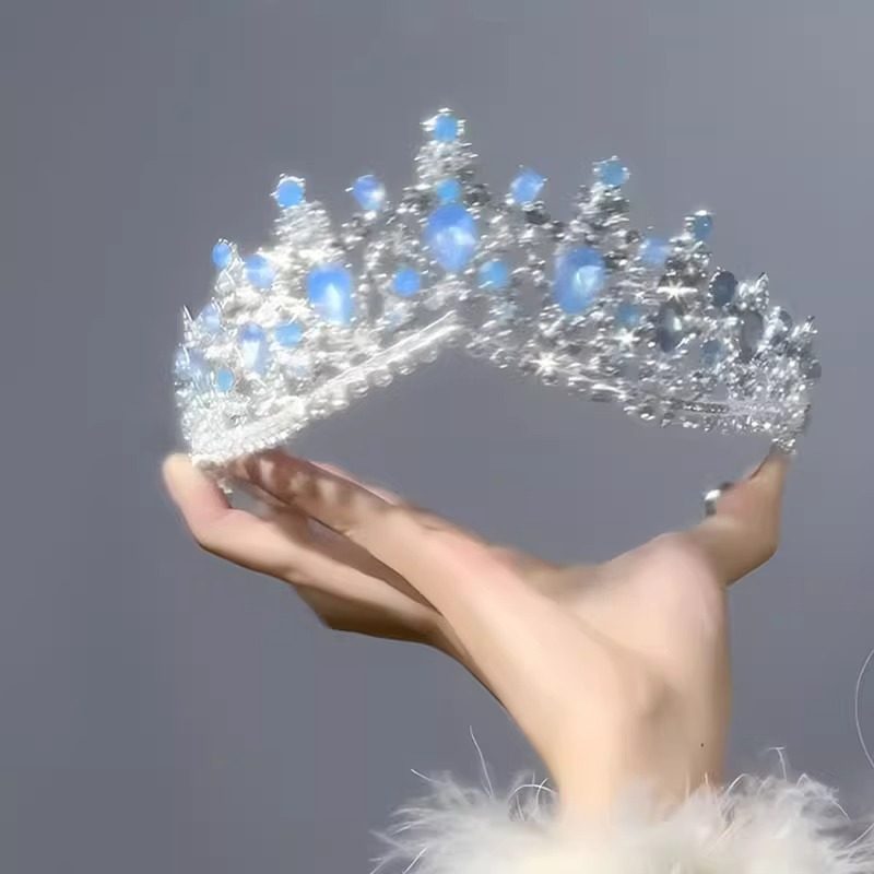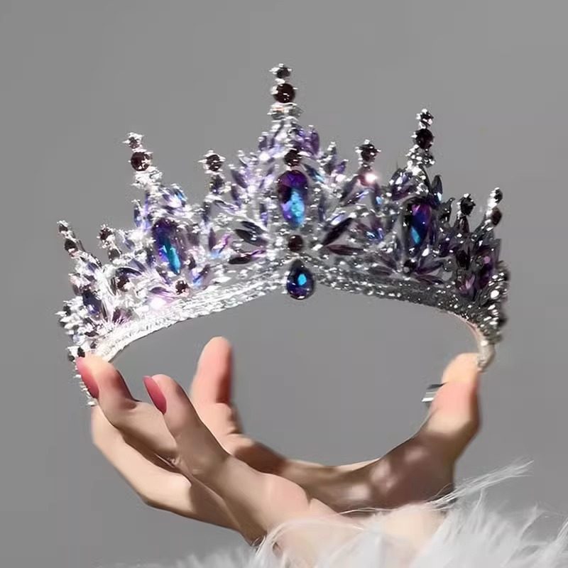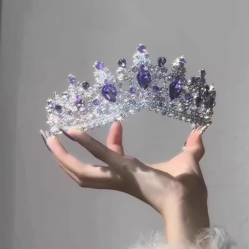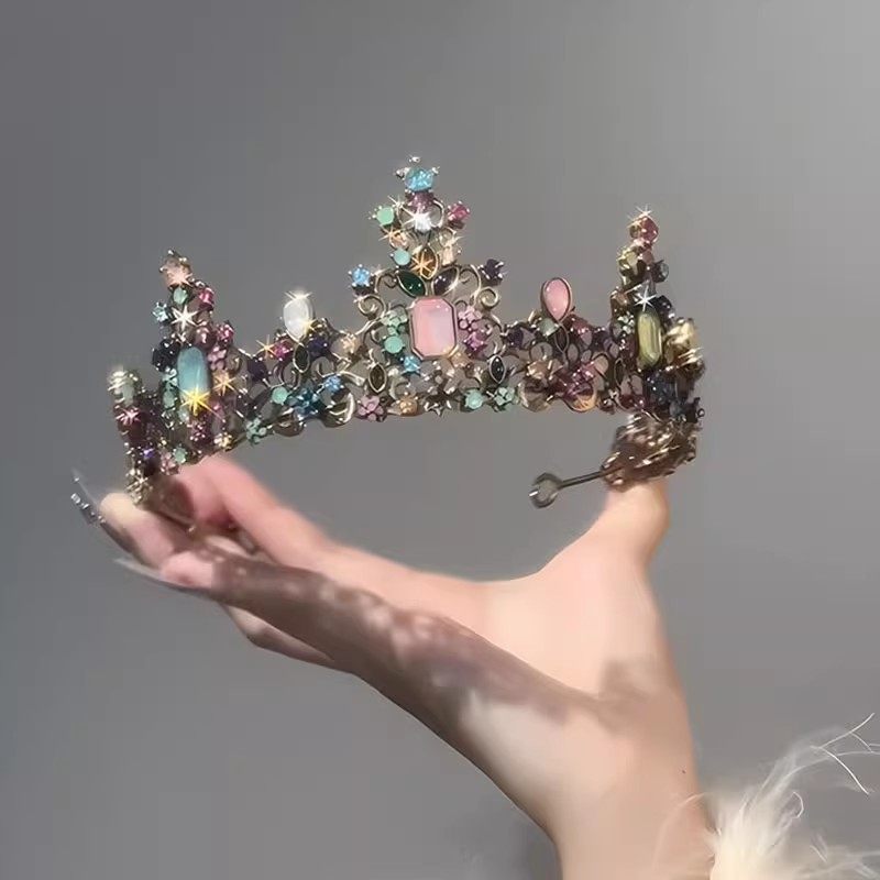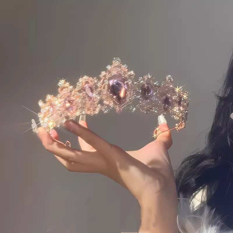 粉色水晶皇冠头饰女公主儿童生日王冠新款高端拍照道具高级感发饰