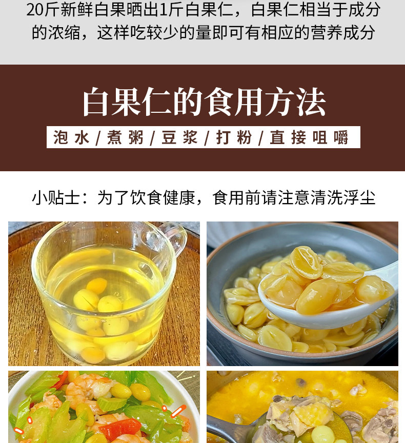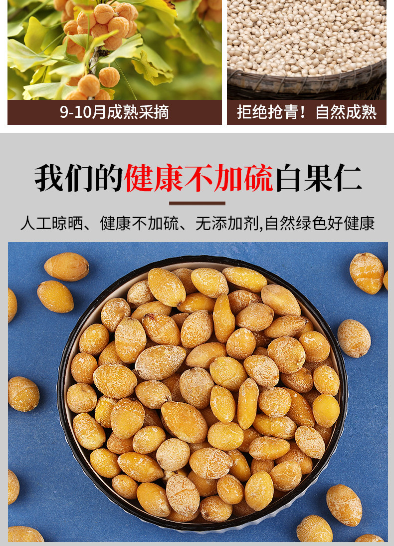 Shenshan Peeled Ginkgo Nuts 500g Chinese Medicinal Dry Ginkgo Kernels Pulp Sansheng Pills Ginkgo Powder Fresh Large Dried Fruit
