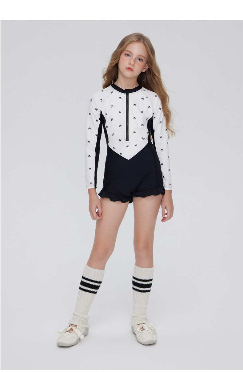 2025新款儿童游泳衣女夏中大童连体长袖专业游泳训练服泡温泉泳衣