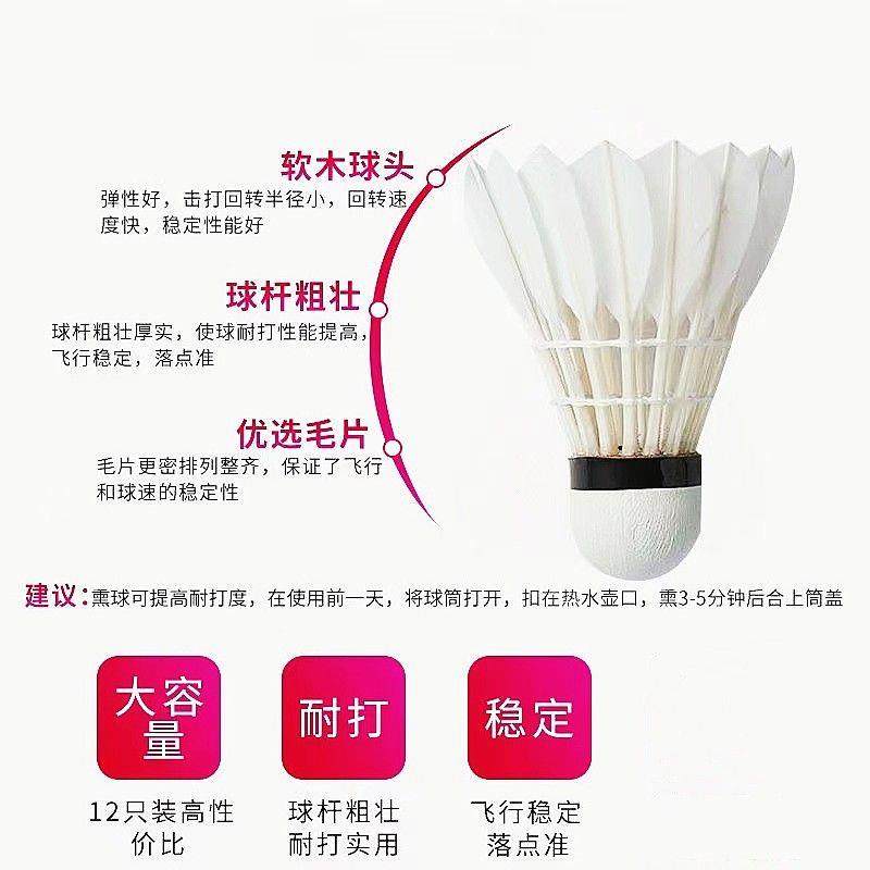 Набор из 12 мячей для бадминтона, прочные и не мнущиеся, из гусиного пера, для соревнований в помещении и на улице, ветрозащитные тренировочные мячи, 6 штук
