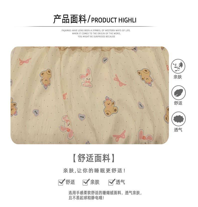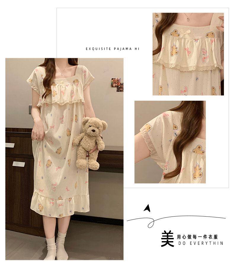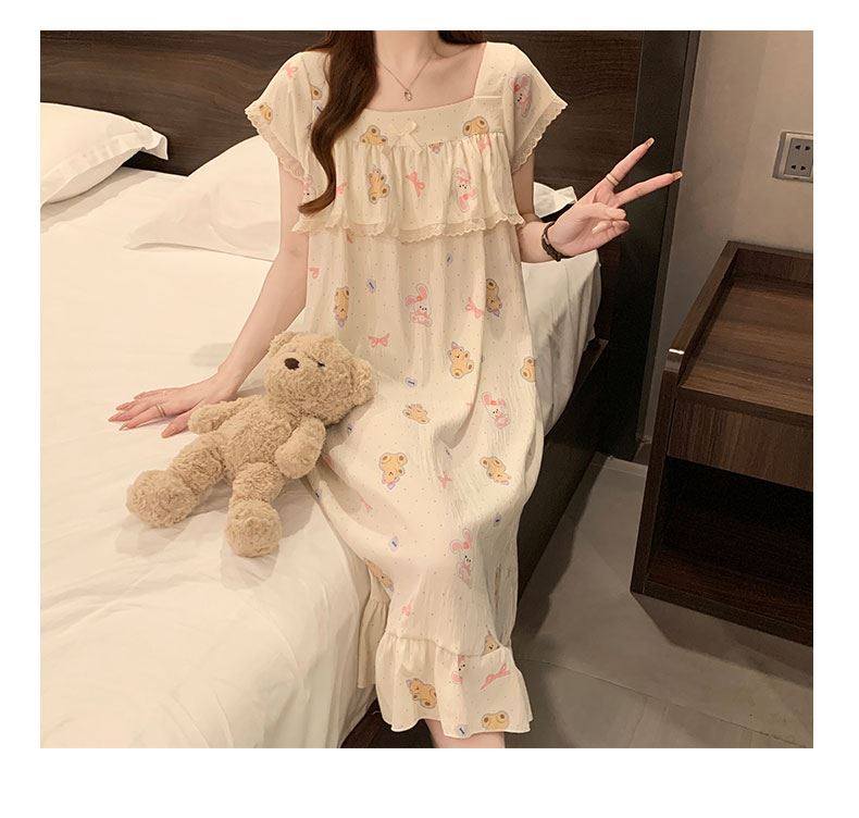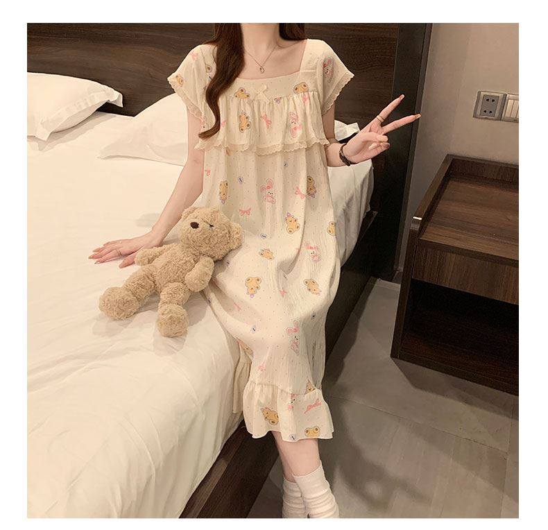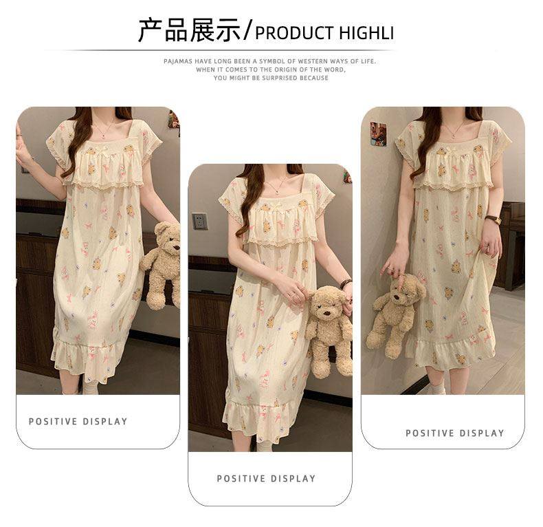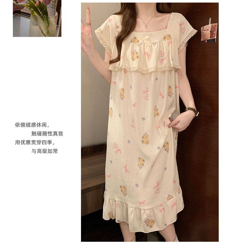 日本GP可爱卡通短袖睡裙女夏季薄款甜美防凸点睡衣长款学生家居服