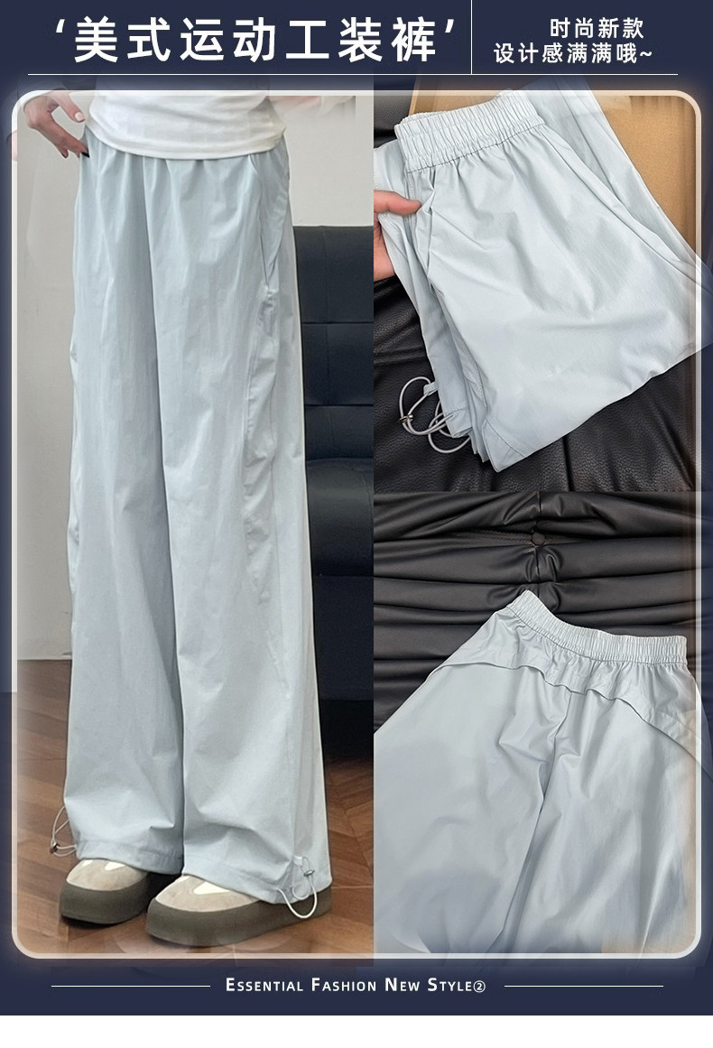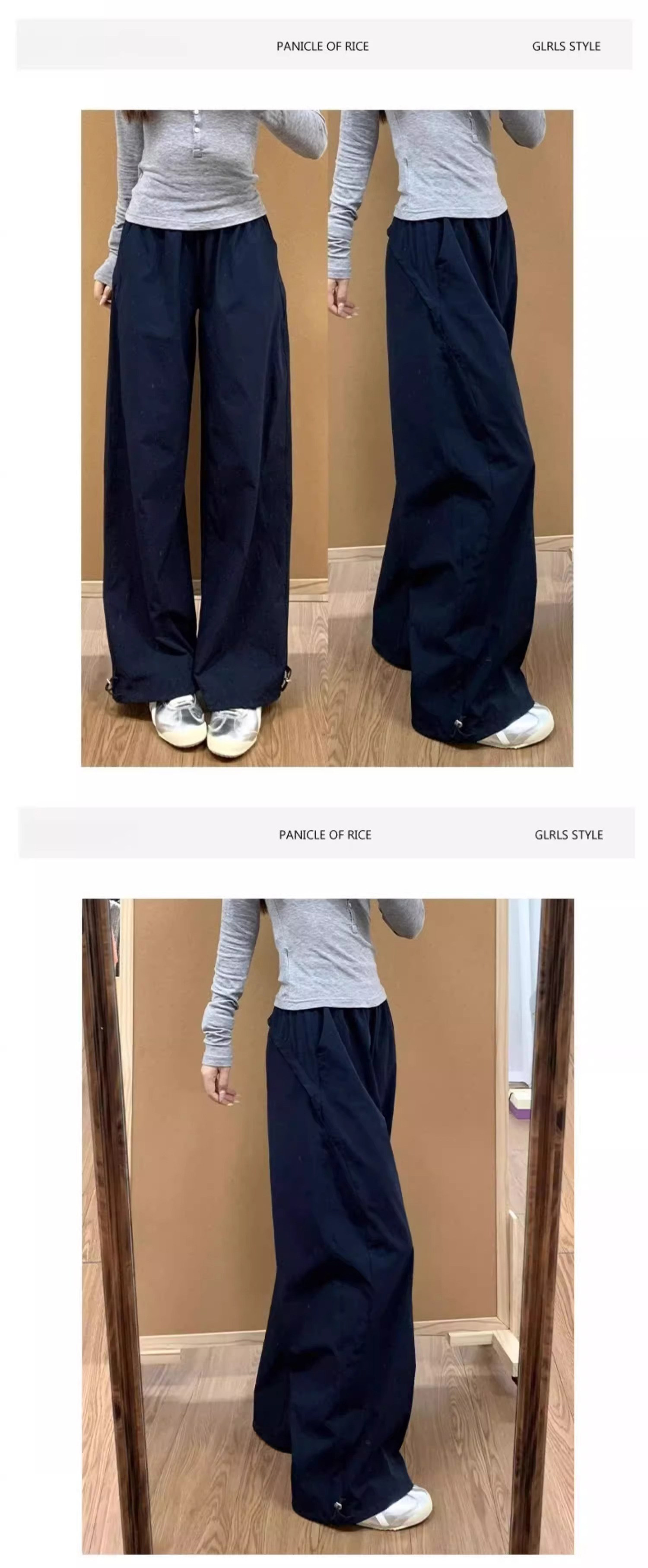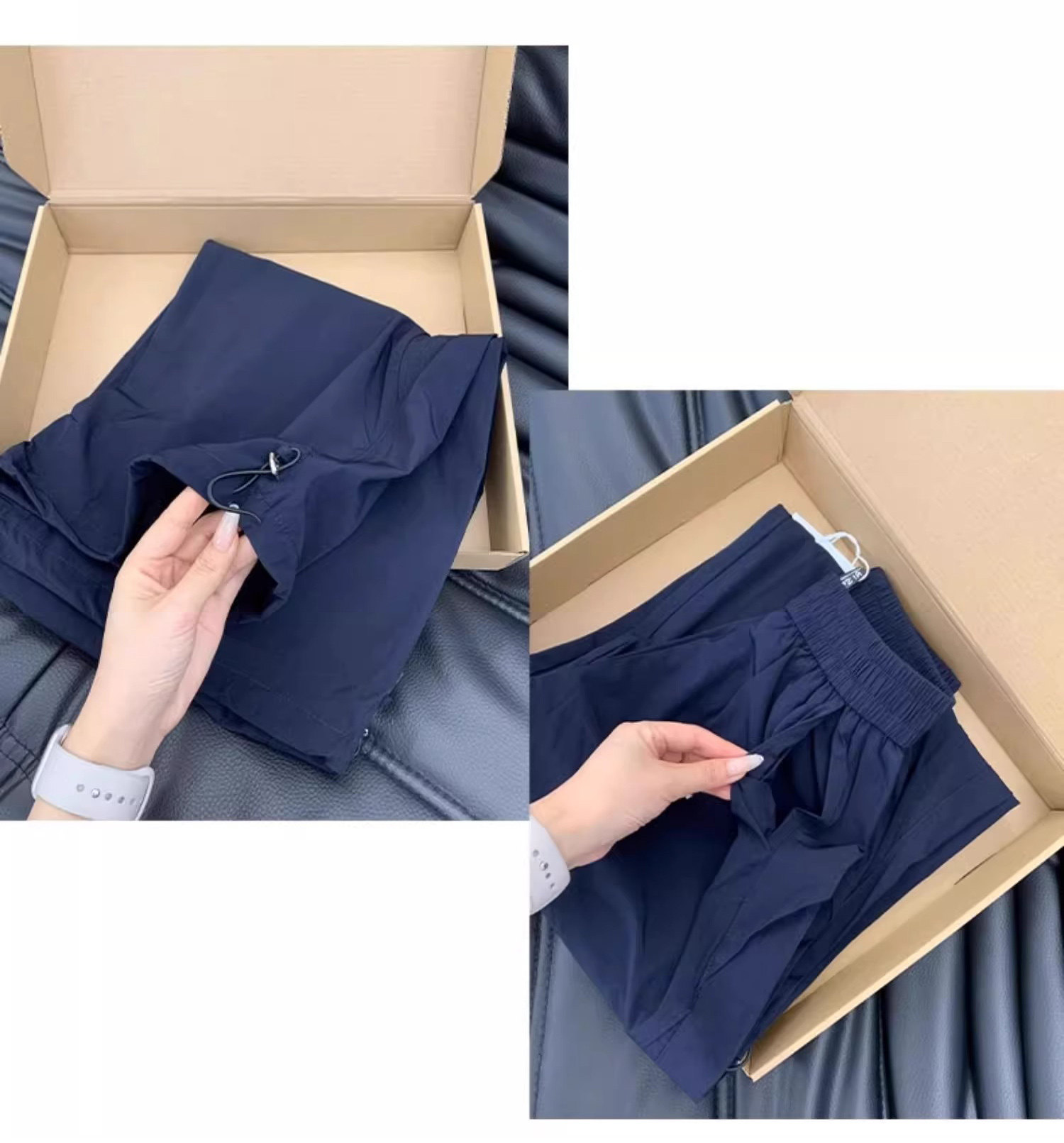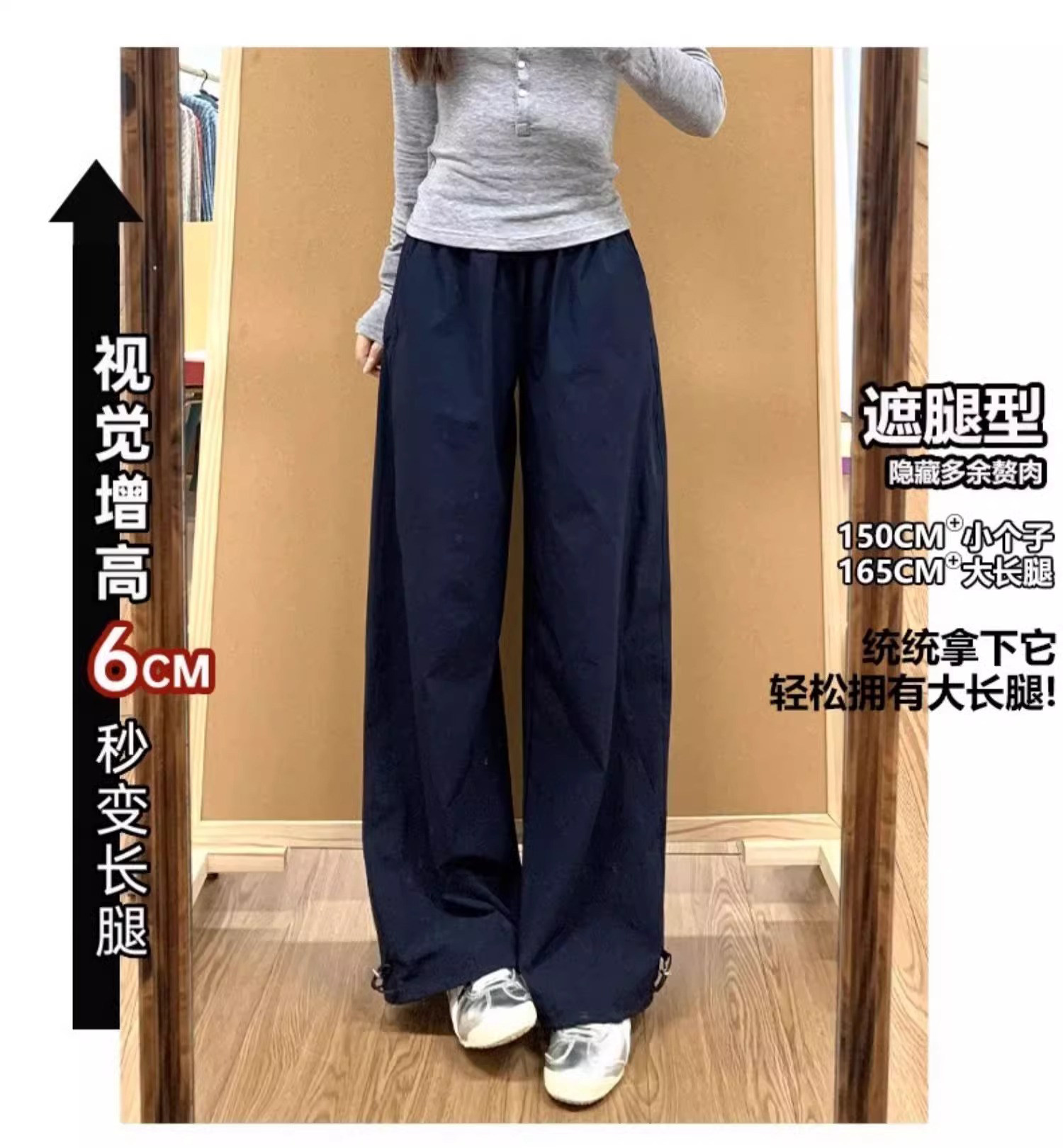 Синие быстросохнущие женские брюки-карго, новая модель осень-зима 2025, с высокой талией, свободные, на флисовой подкладке, для миниатюрных женщин, широкие штанины, повседневные спортивные брюки.