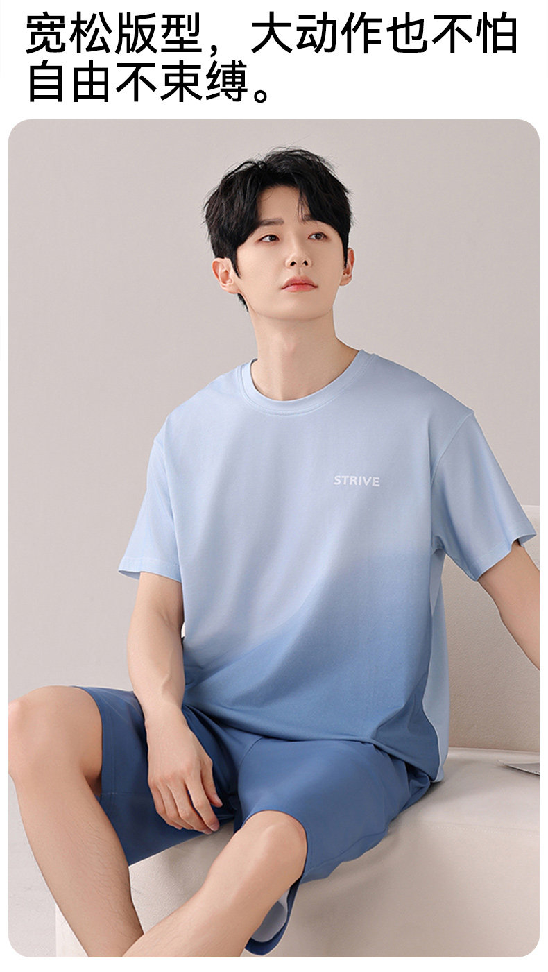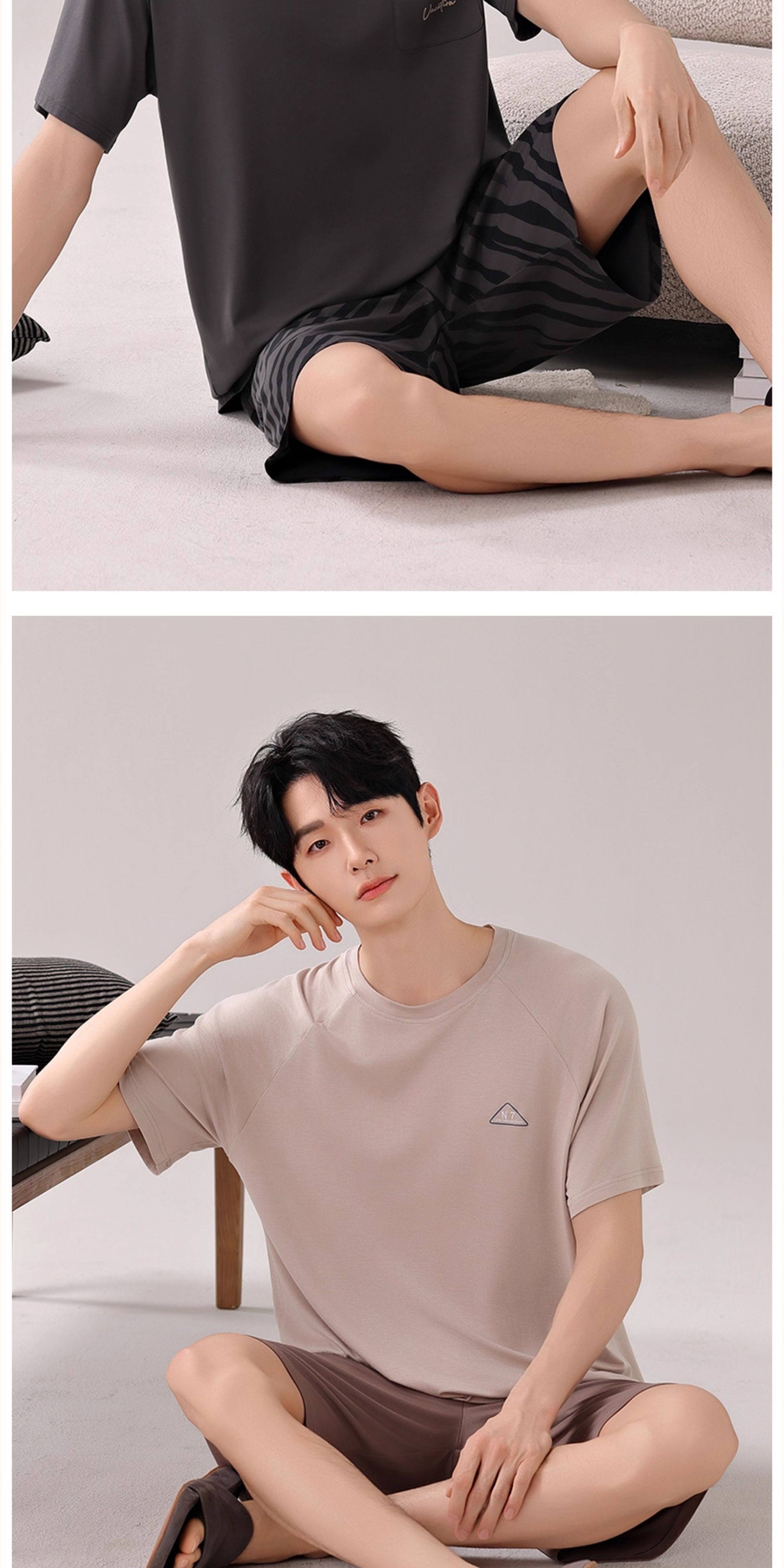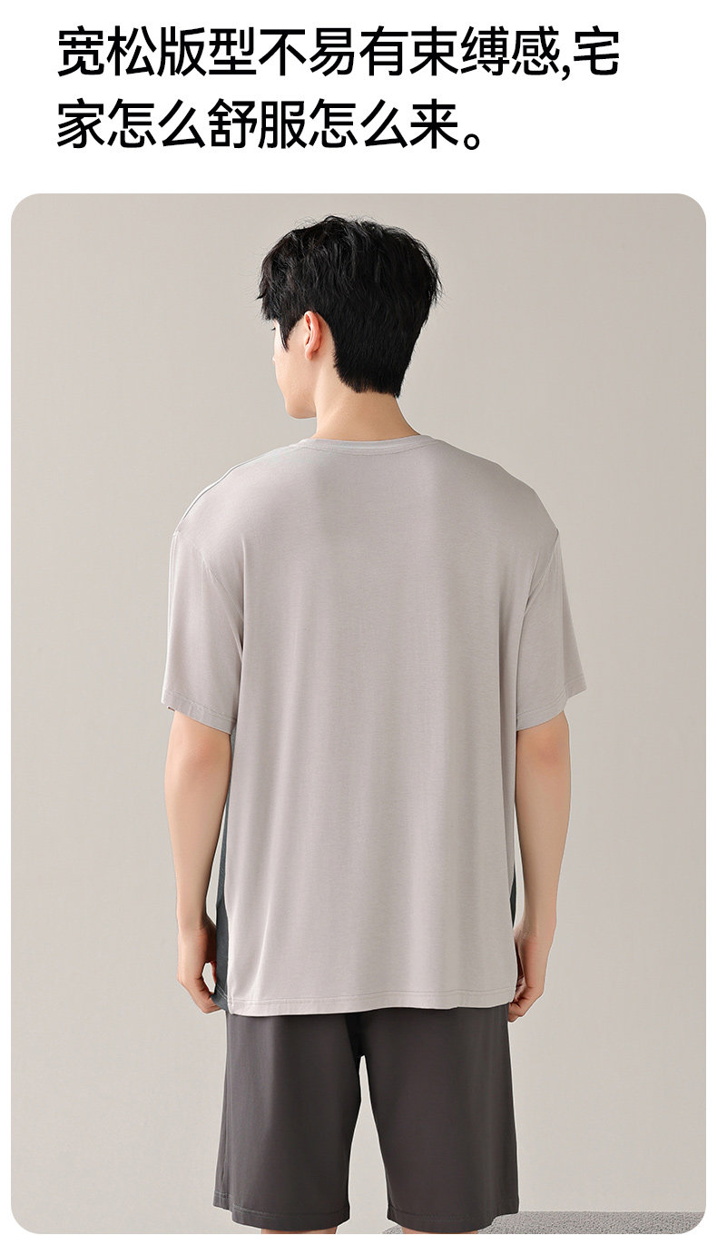 莫代尔男士冰丝睡衣宽松短袖短裤夏季新款大码纯棉男生家居服套装