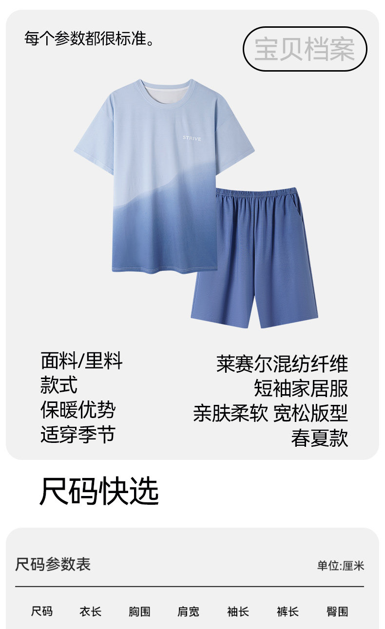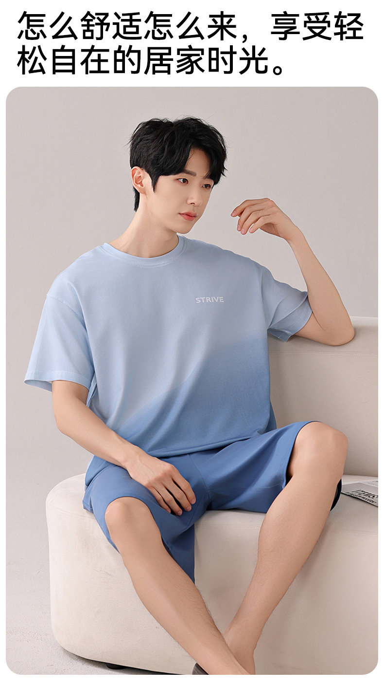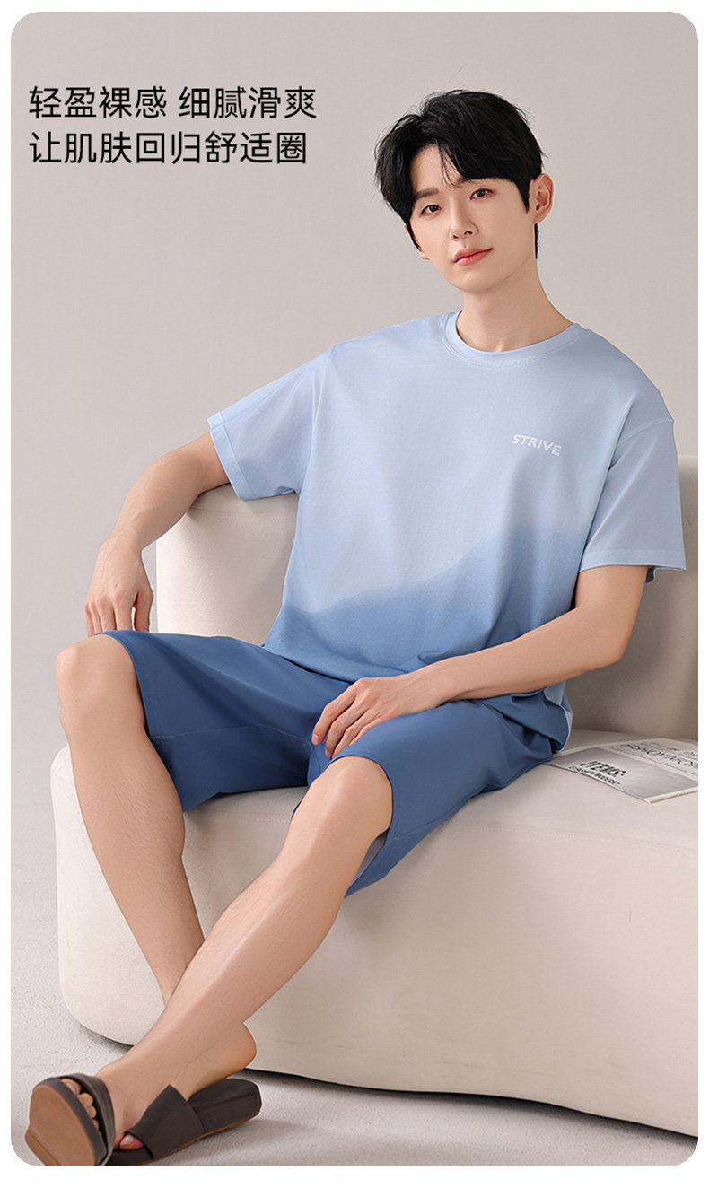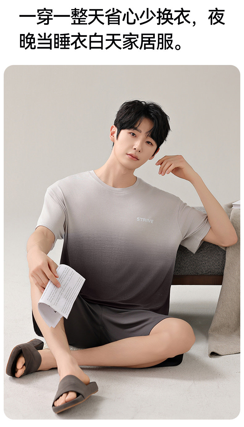 莫代尔男士冰丝睡衣宽松短袖短裤夏季新款大码纯棉男生家居服套装
