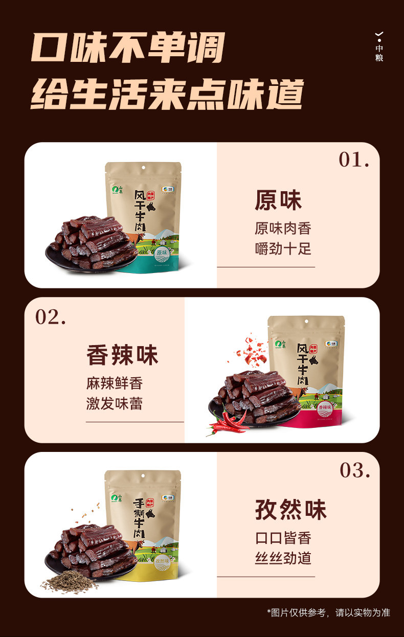 Taste (Take 1 Shot of 2) Original Flavor 2 Large Bags.,(Take 1 Shot of 2) Cumin 2 Large Bags.,(Take 1 Shot of 2) Spicy 2 Large Bags.,Original Flavor*3 Large Bags [Save 10 Yuan].,Cumin*3 Large Bags [Save 10 Yuan].,Spicy*3 Large Bags [Save 10 Yuan].,Original Flavor*6 Large Bags [Save 30 Yuan].,Cumin*6 Large Bags [Save 30 Yuan].,Spicy*6 Large Bags [Save 30 Yuan].,Original Flavor*9 Large Bags [Save 55].,Cumin*9 Large Bags [Save 55].,Spicy*9 Large Bags [Save 55].,2 Bags of Flavors of Your Choice (Contact Customer Service for Notes).,3 Bags of Flavors of Your Choice (Contact Customer Service for Notes). [Save 10 Yuan].,6 Bags of Flavors of Your Choice (Contact Customer Service for Notes). [Save 30 Yuan].,9 Bags of Flavors of Your Choice (Contact Customer Service for Notes). [Save 55 Yuan].,(Take 1 Shot 2) Original Flavor 2 Large Bags,(Take 1 Shot 2) Cumin 2 Large Bags,(Take 1 Shot 2) Spicy 2 Large Bags,Original Flavor*3 Large Bags [Save 16 Yuan],Cumin*3 Large Bags [Save 16 Yuan],Spicy*3 Large Bags [Save 16 Yuan],Original Flavor*6 Large Bags [Save 53 Yuan],Cumin*6 Large Bags [Save 53 Yuan],Spicy*6 Large Bags [Save 53 Yuan],Original Flavor*9 Large Bags [Save 106],Cumin*9 Large Bags [Save 106],Spicy*9 Large Bags [Save 106],2 Bags of Flavors of Your Choice (Contact Customer Service for Notes),3 Bags of Flavors of Your Choice (Contact Customer Service for Notes) [Save 16 Yuan],6 Bags of Flavors of Your Choice (Contact Customer Service for Notes) [Save 53 Yuan],9 Bags of Flavors of Your Choice (Contact Customer Service for Notes) [Save 106 Yuan],Beef Jerky Gift Box (Jufu Gift)