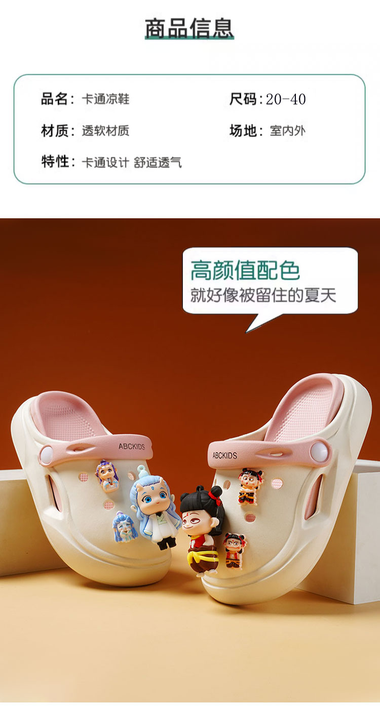 Abckids儿童洞洞鞋女童拖鞋哪吒宝宝EVA防滑中大童女孩亲子沙滩鞋