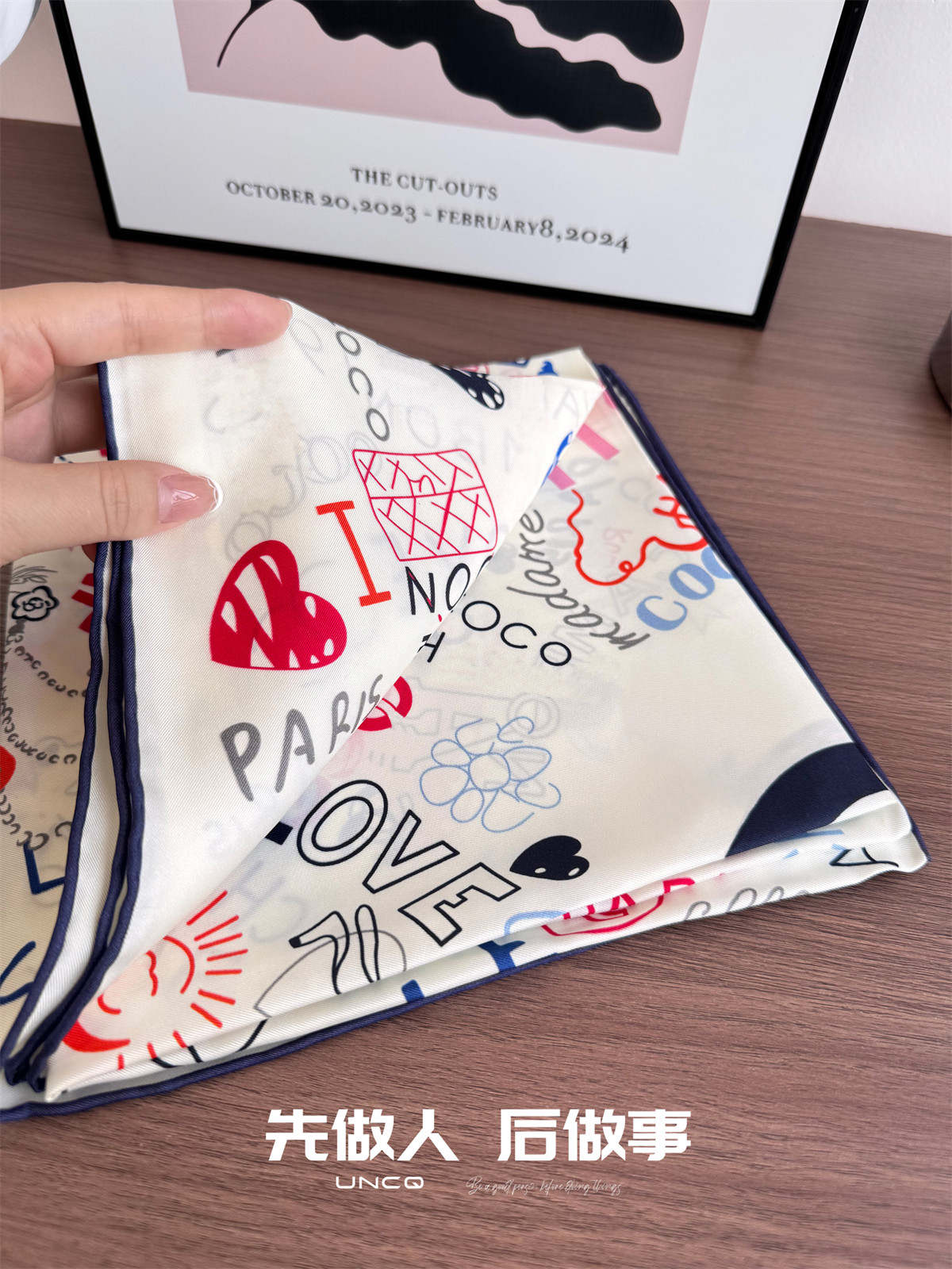 Uncq丨vibrant~25 valentine's day graffiti painted love silk scarf double-sided 90 square scarf for women to wrap their breasts