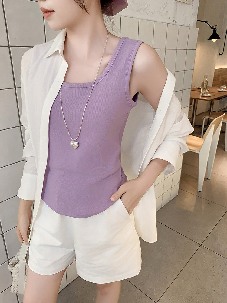 Meiyang[In Stock]Cotton Vest Anti-Pilling~Vertical Texture Versatile Sleeveless Top-Tuesday