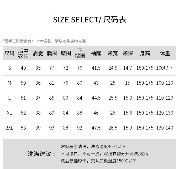 China (cm) 165 / 88-90 170 / 96-98 175 / 108-110 180 / 118-122 185 / 126-130