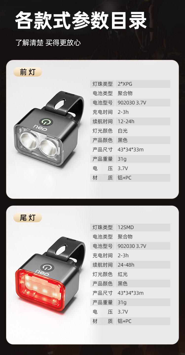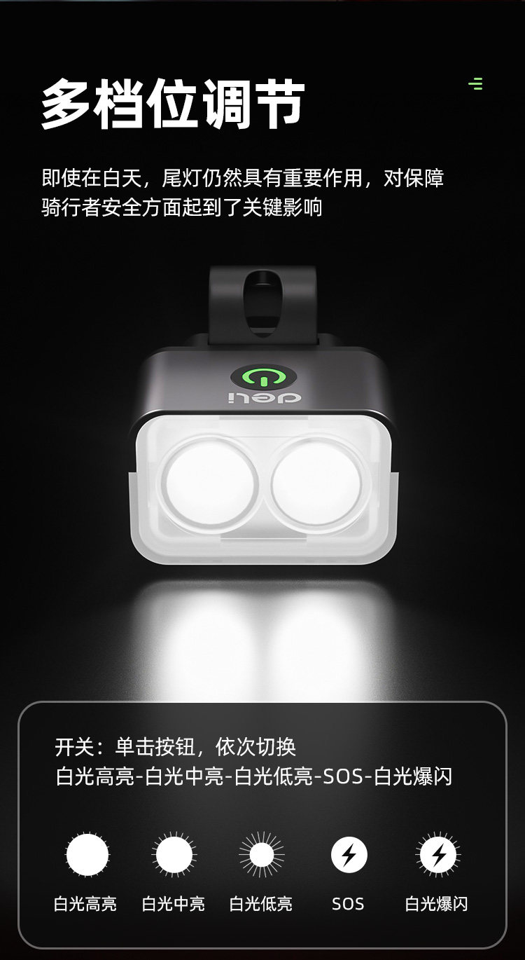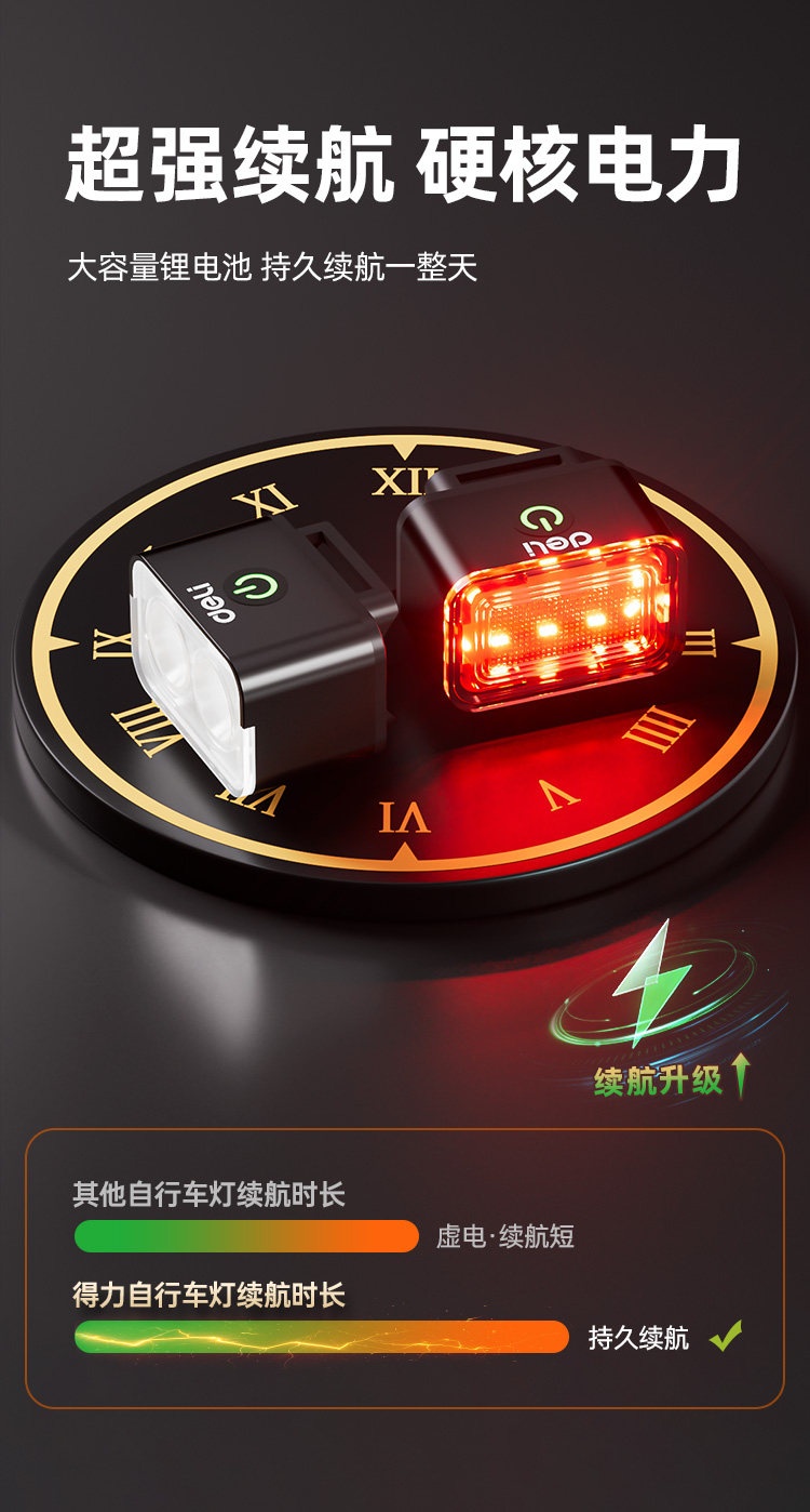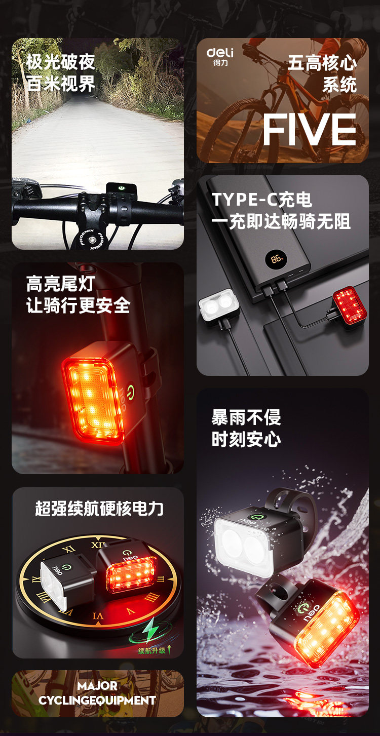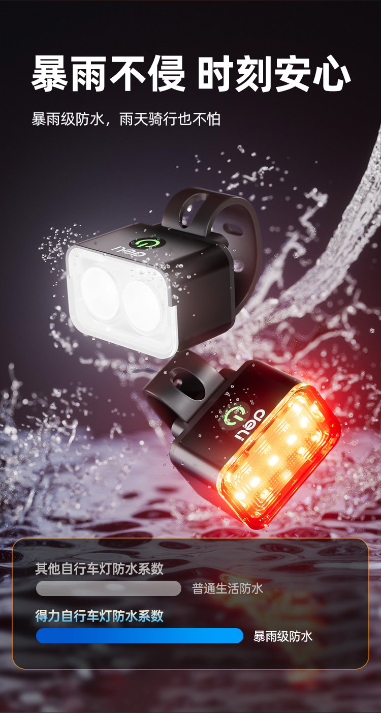 Deli bicycle front and rear lights