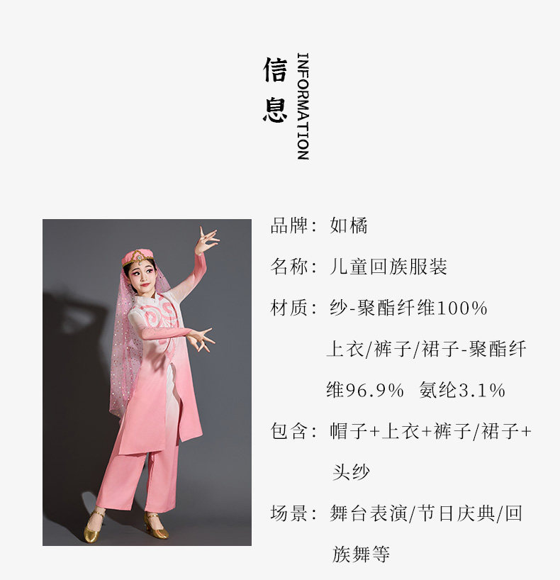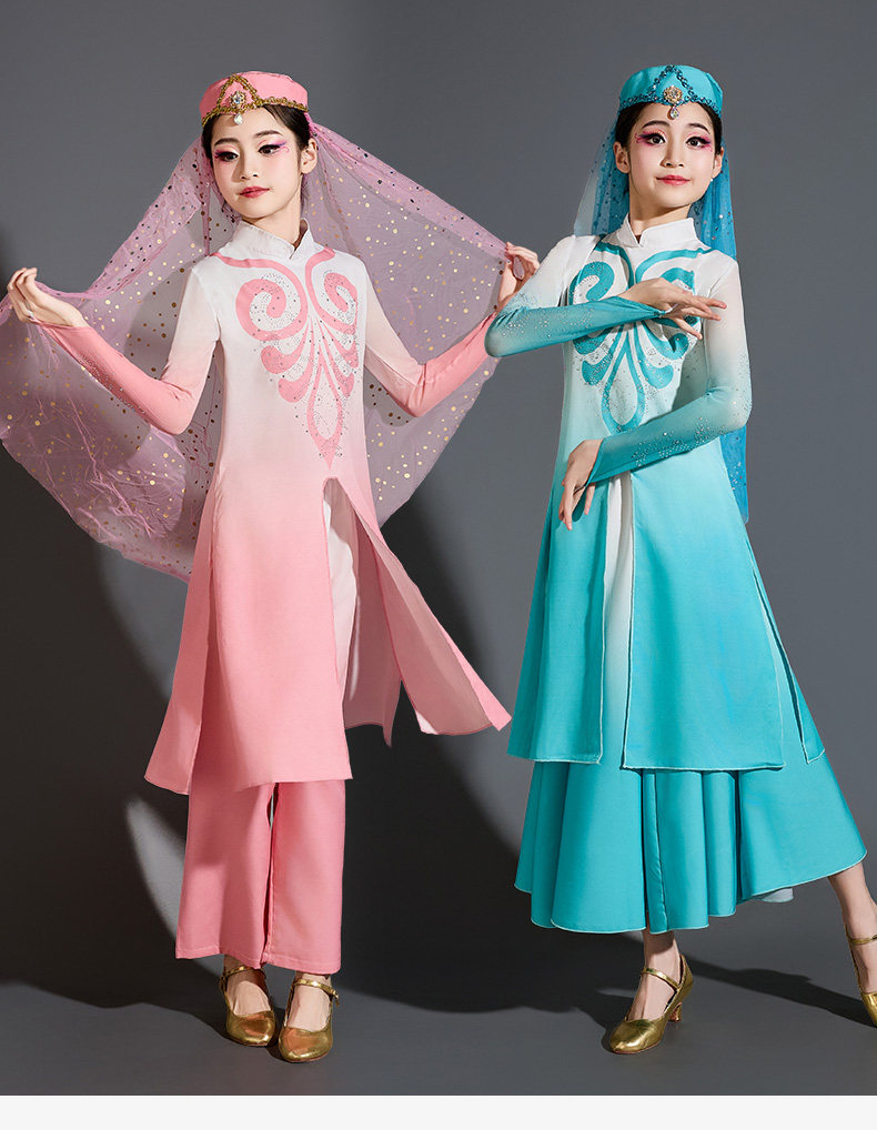 儿童回族舞蹈演出服唱花儿的花儿民族服装女童少儿新疆维吾尔族