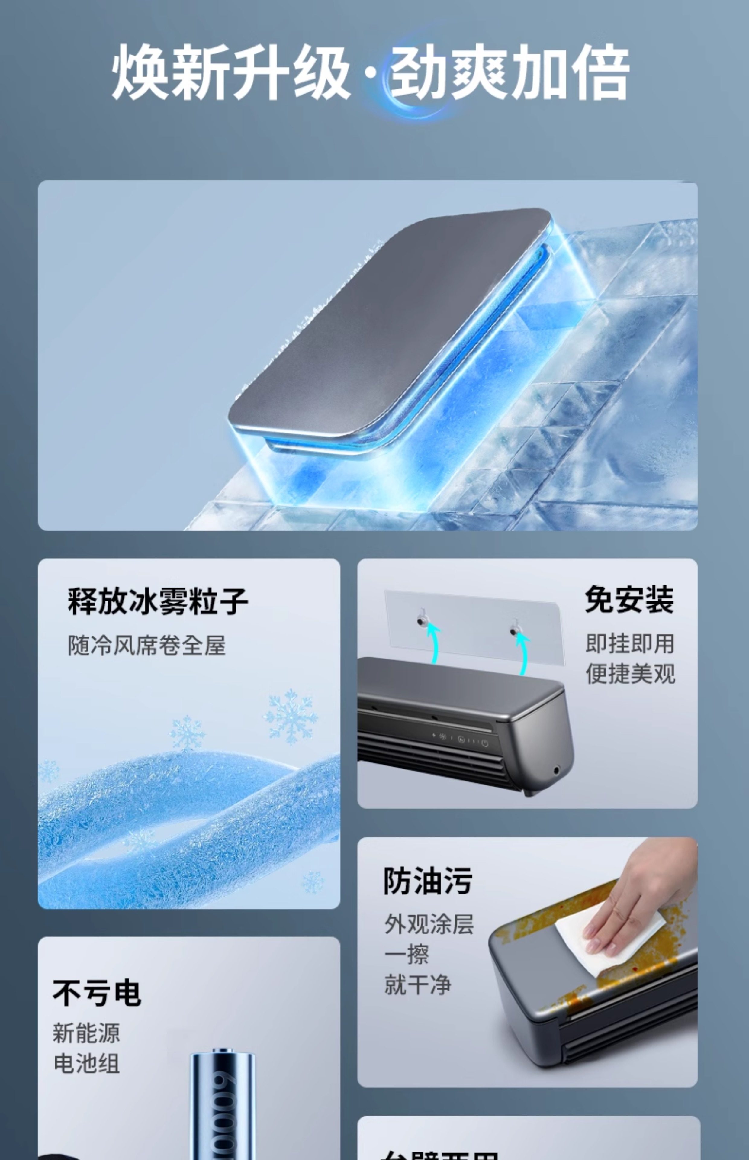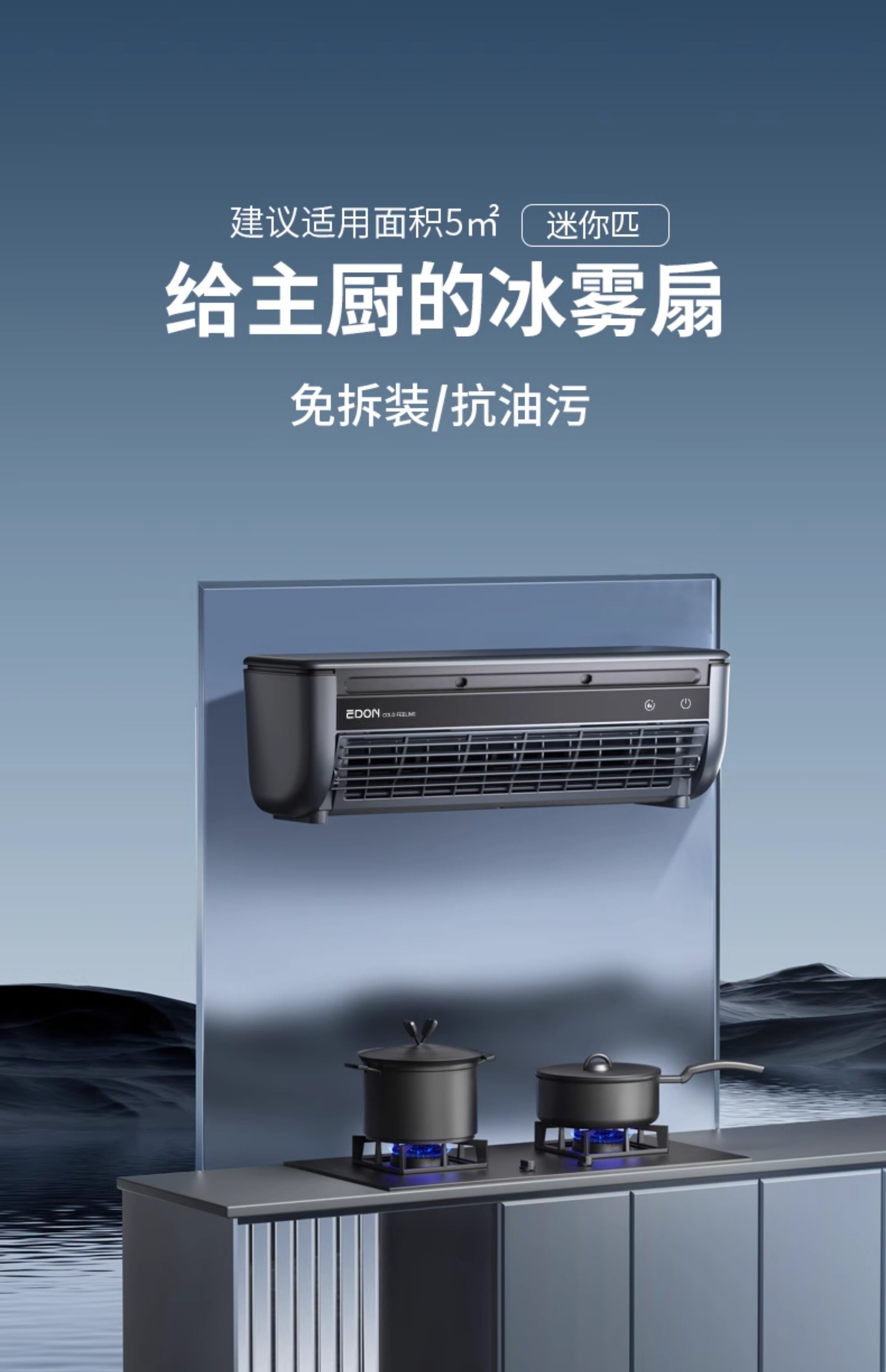 Edon Kitchen Special Wall-Mounted Fan Refrigeration Ice Mist Fan Cooling Fan Wireless Refrigeration Air Conditioning Fan Cooler