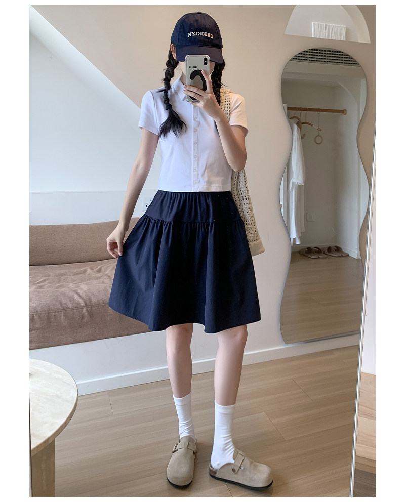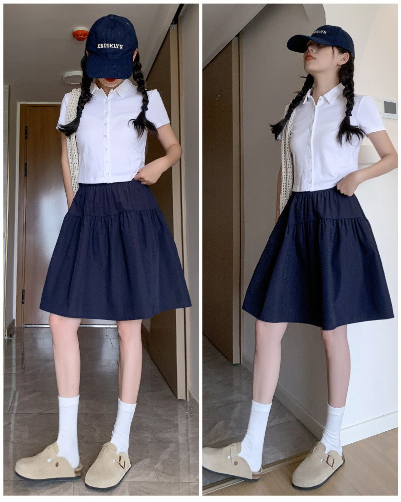 Navy blue short skirt for women summer thin 2025 new high-waisted a-line skirt japanese college style petite skirt