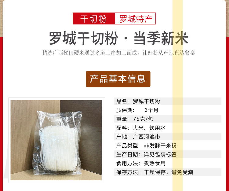 Luocheng-Trockenschnittpulver, 75 g, unabhängig verpackt, authentisches Guangxi-Fluss-Reismehl, steingemahlenes, reines Reismehl, Mulao-Spezialität