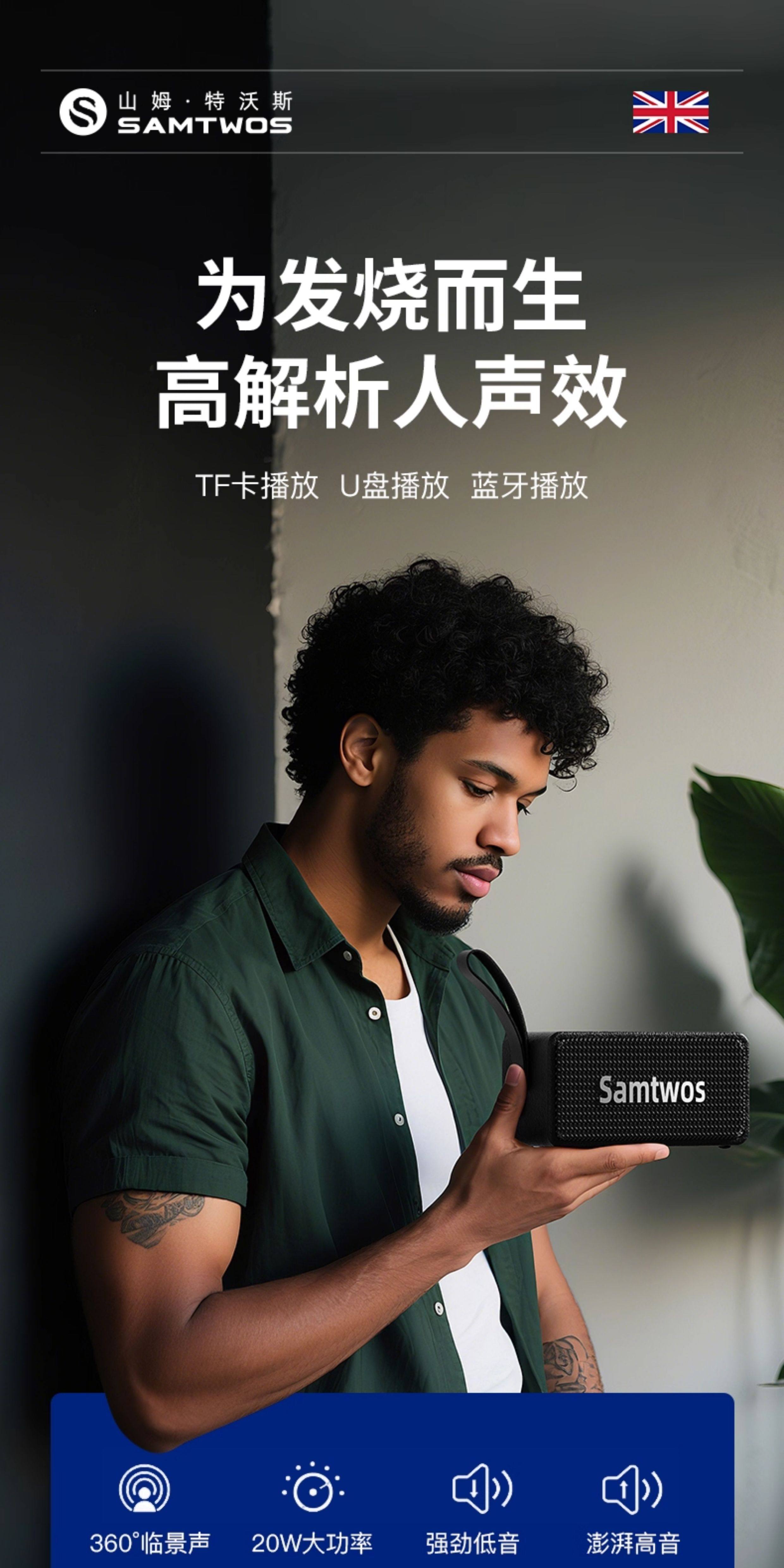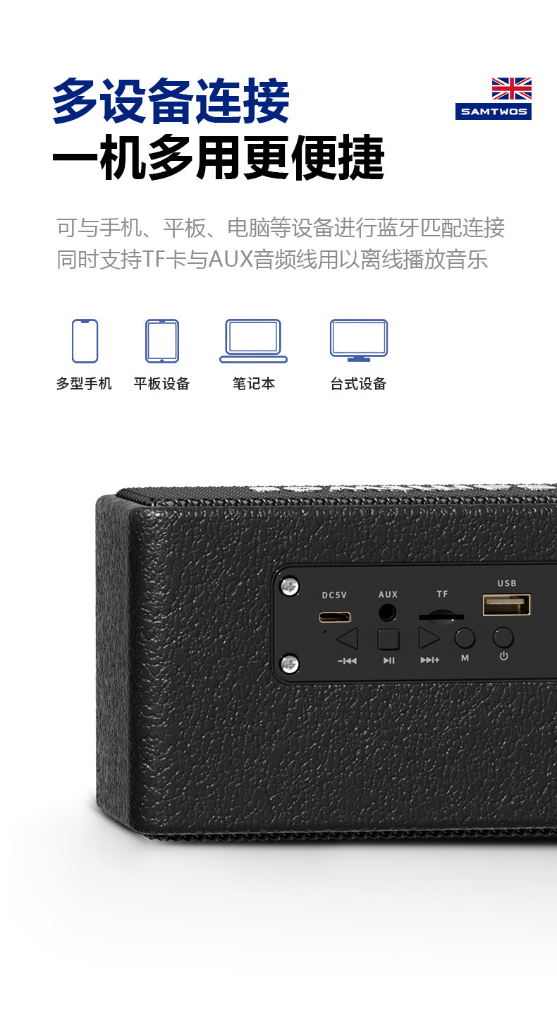 【英国samtwos】柏林之声无线迷你蓝牙音响小型重低音炮大音量箱
