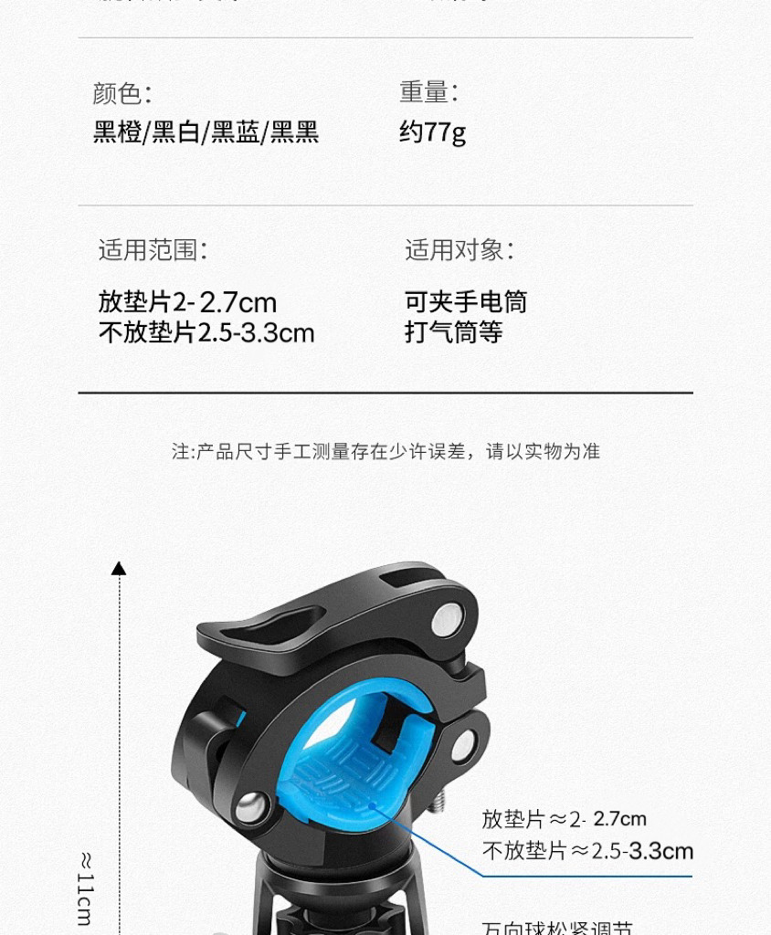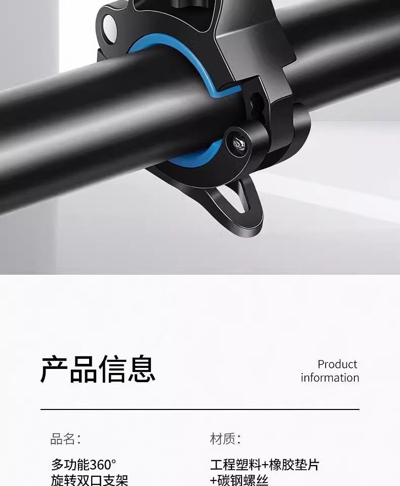 手电筒支架自行车灯夹手电筒支架前灯架360度万向球旋转夹灯座