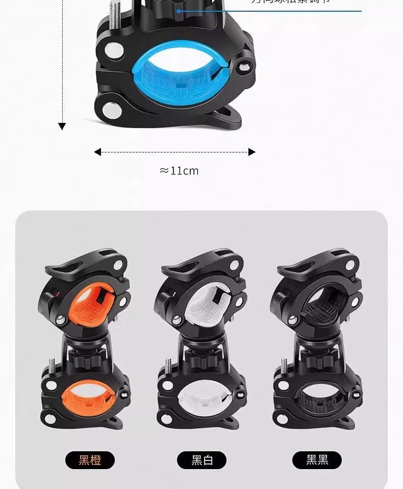 颜色分类 黑色双扣灯架【360度旋转】,黑橙色双扣灯架【360度旋转】,黑蓝色双扣灯架【360度旋转】,黑白色双扣灯架【360度旋转】,普通C型手电筒支架