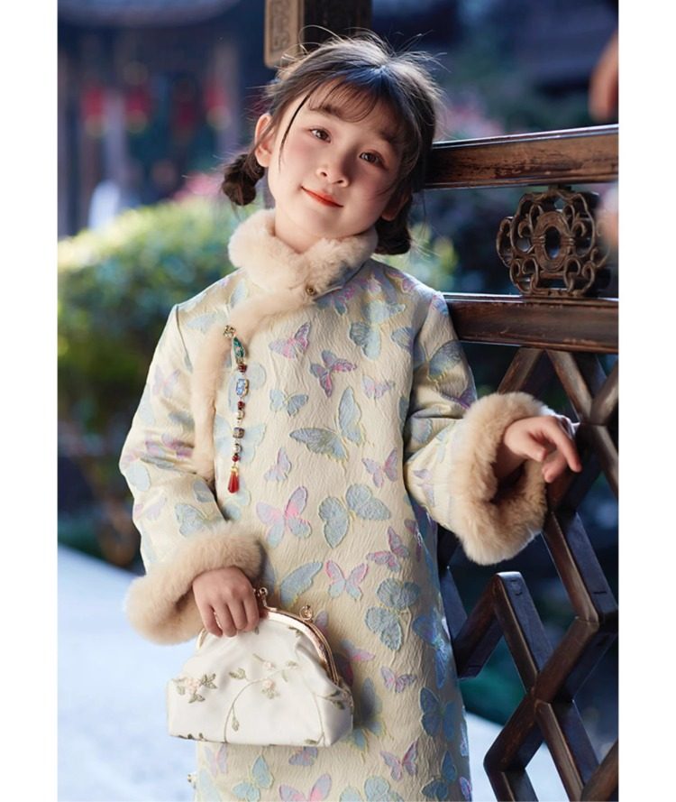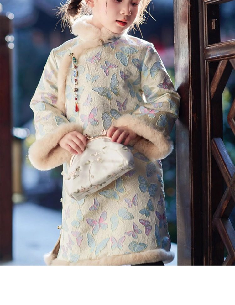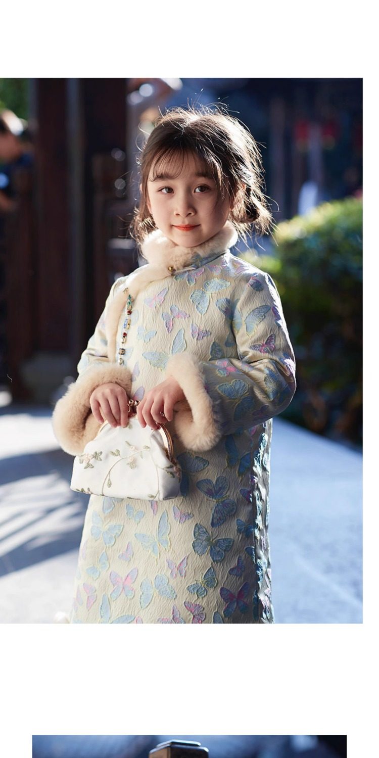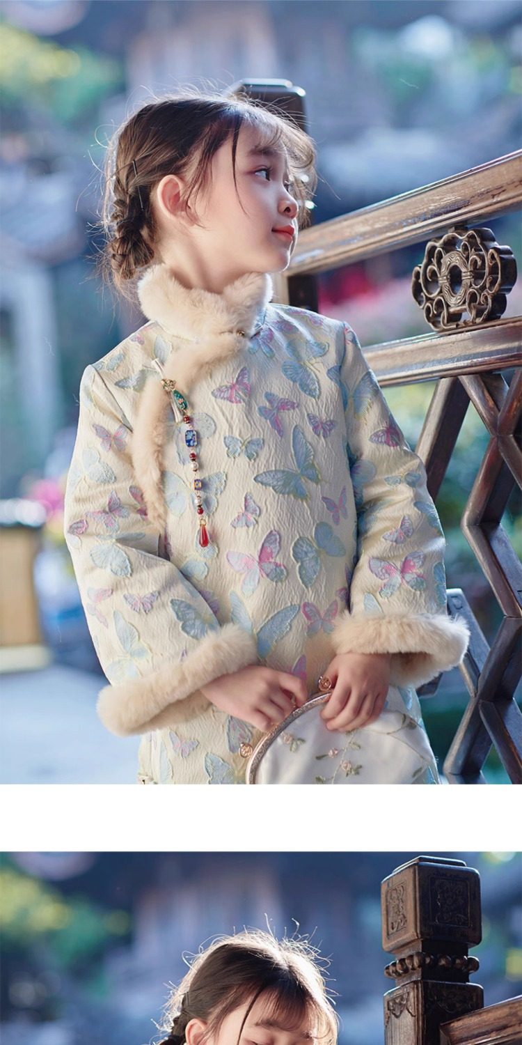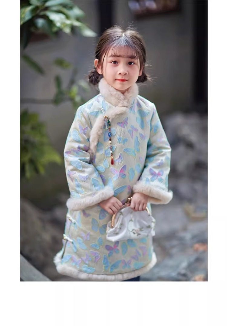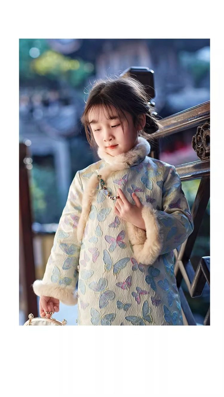 女童棉袄蝴蝶元素旗袍裙秋冬厚款儿童小女孩新中式拜年服唐装裙子