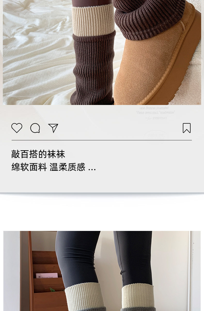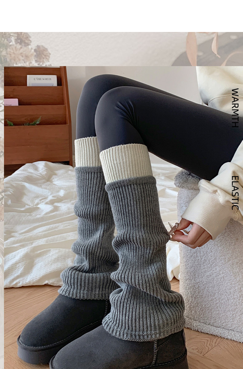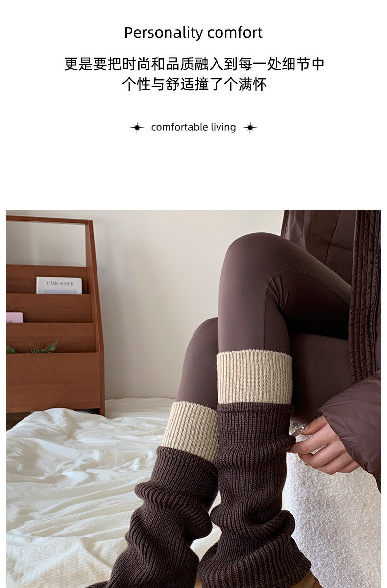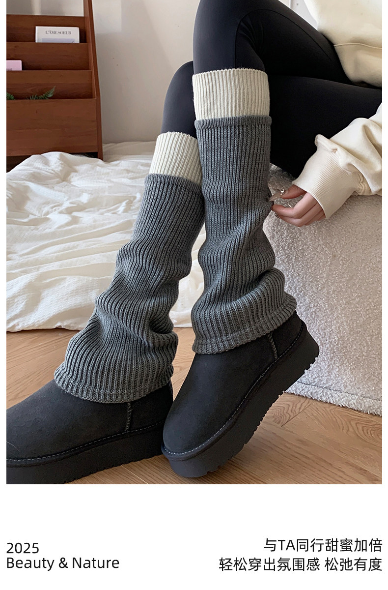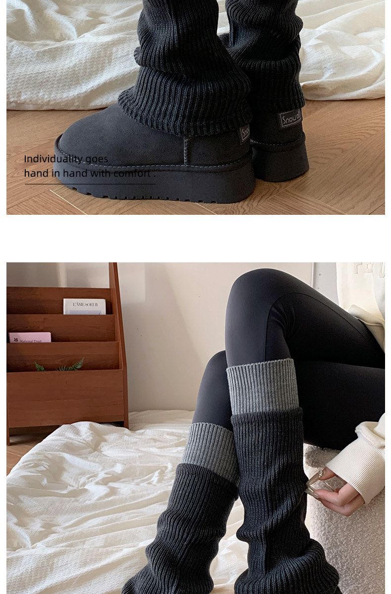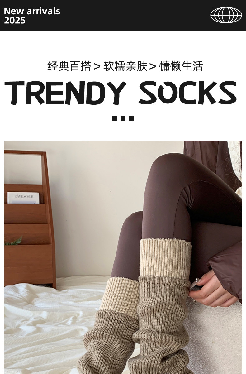 Color-Blocked Calf Socks, Stacked Socks, Warm and Slimming Long Socks, Paired with Snow Boots, Shark Pants Layered with Knitted Flared Leg Warmers