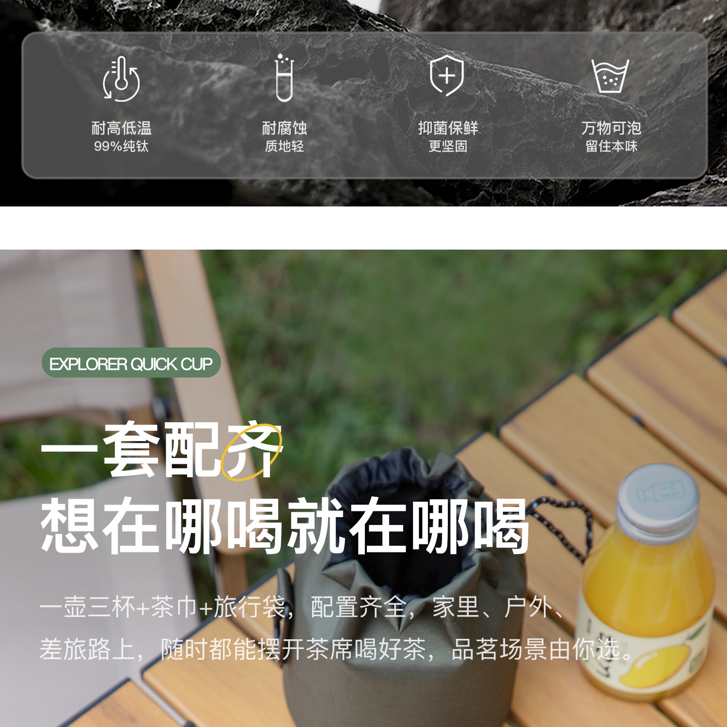 南山先生探索者纯钛快客杯一壶三杯便携式旅行茶具套装户外泡茶器