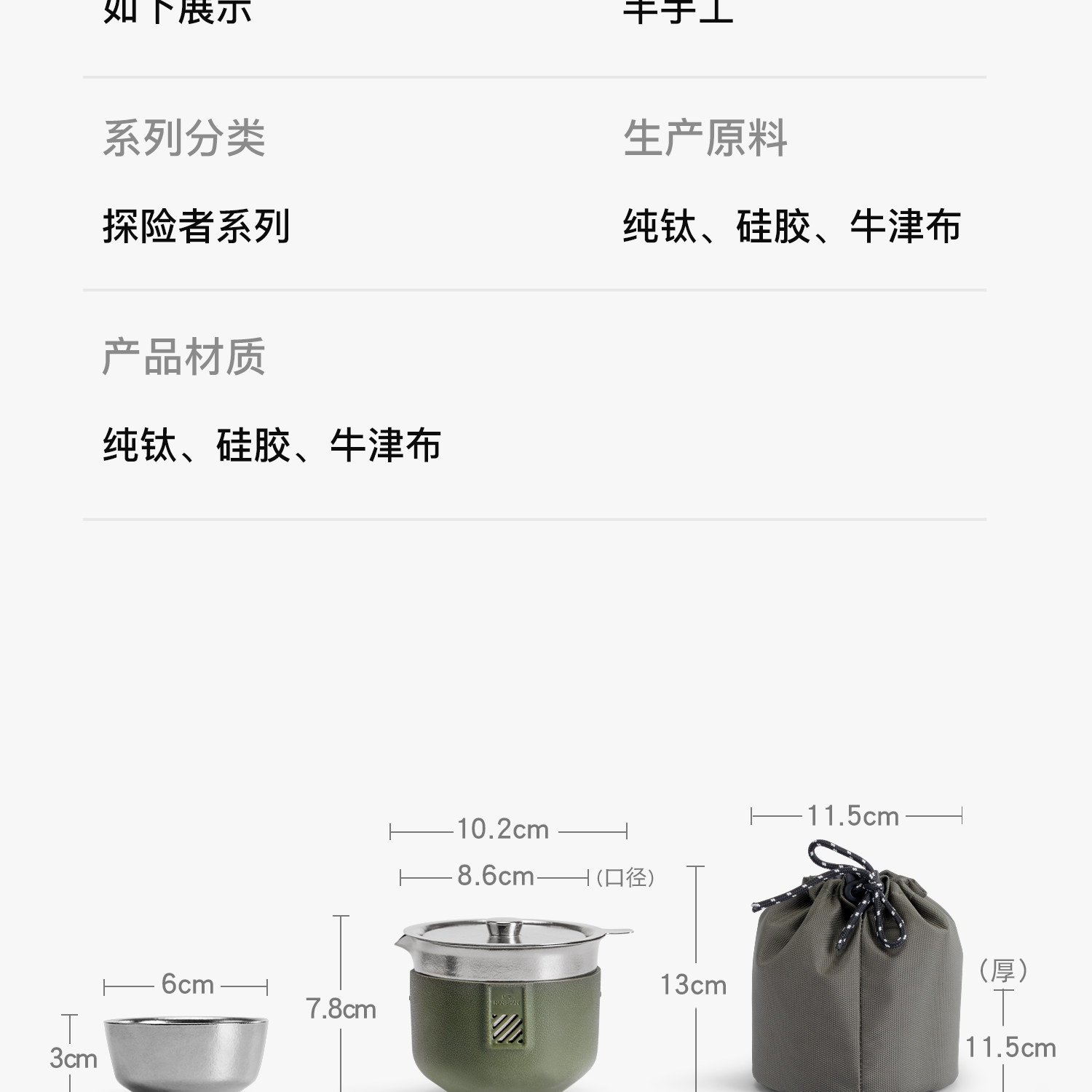 颜色分类 探索者纯钛快客杯_绿色,探索者纯钛快客杯_黑色,探索者纯钛快客杯_棕色,探索者纯钛快客杯_鸦青款(绿色),探索者纯钛快客杯_鸦青款(棕色),探索者纯钛快客杯_鸦青款(黑色)
