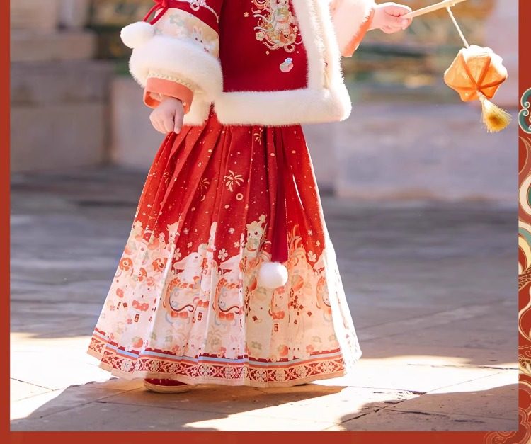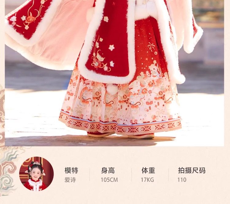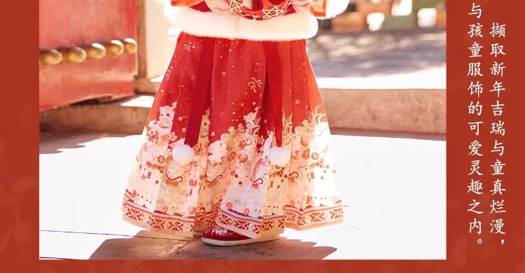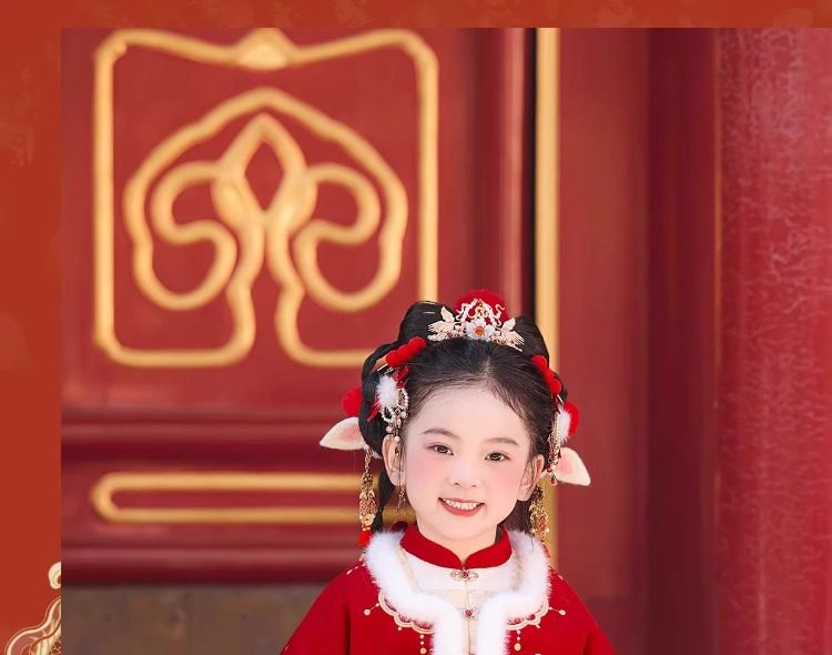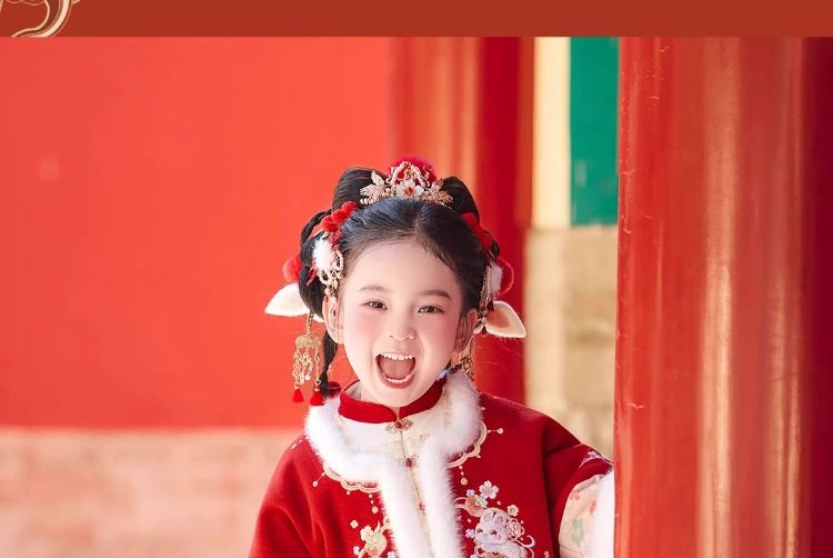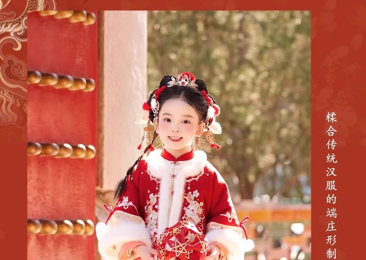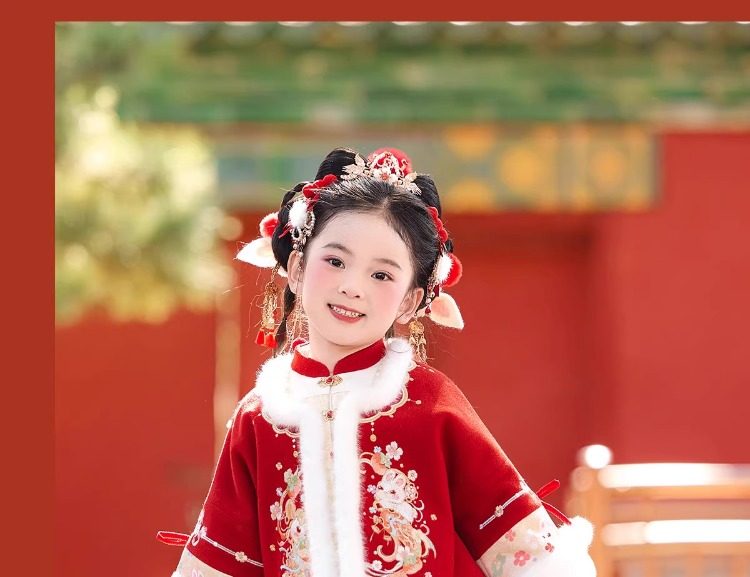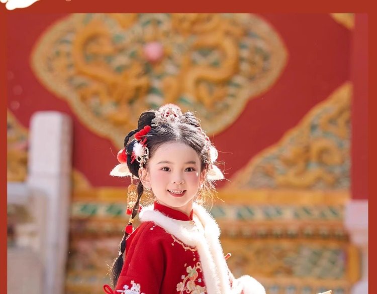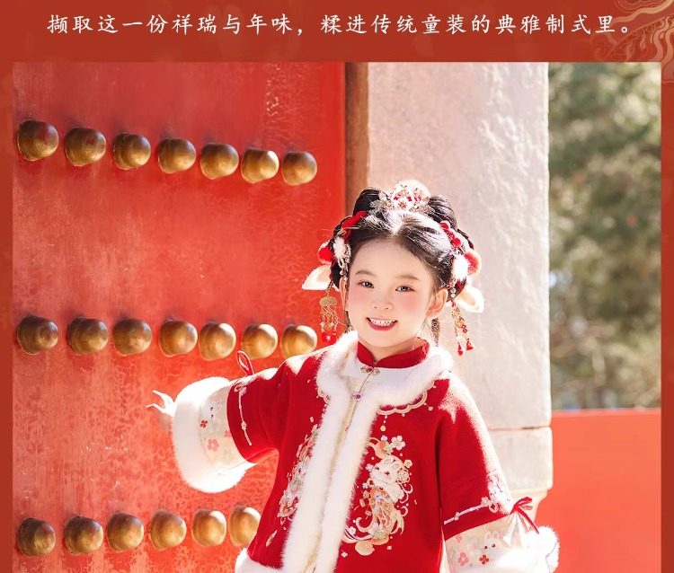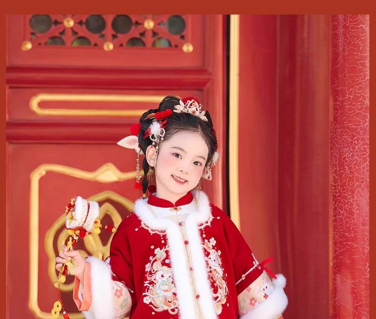 女童明制红色古风汉服2026新款秋冬厚款儿童喜庆中国风拜年服套装