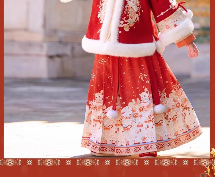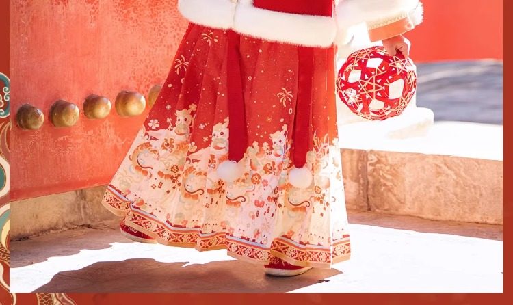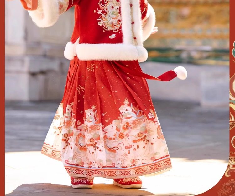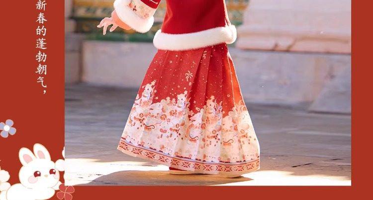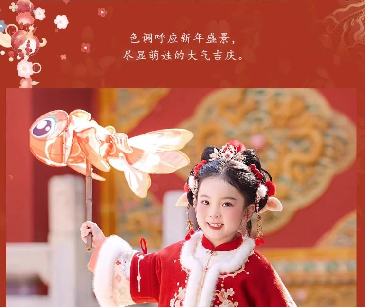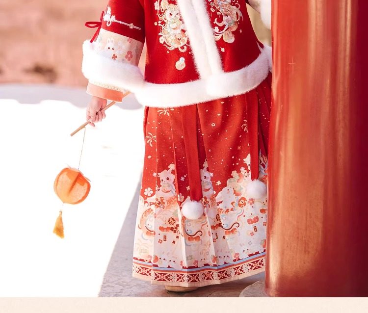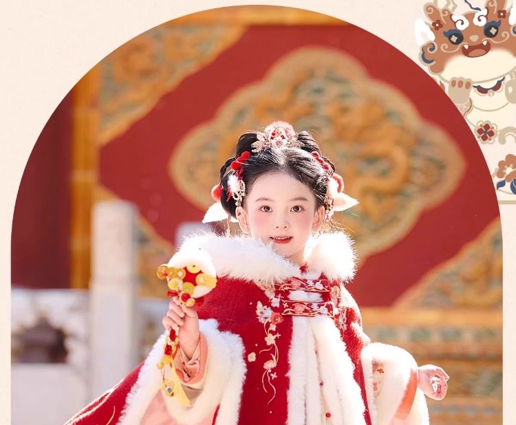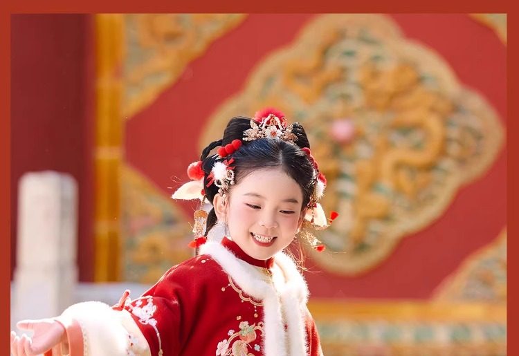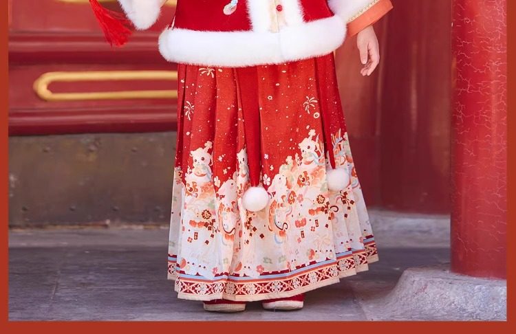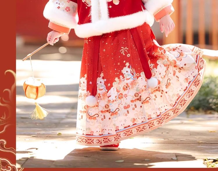 女童明制红色古风汉服2026新款秋冬厚款儿童喜庆中国风拜年服套装