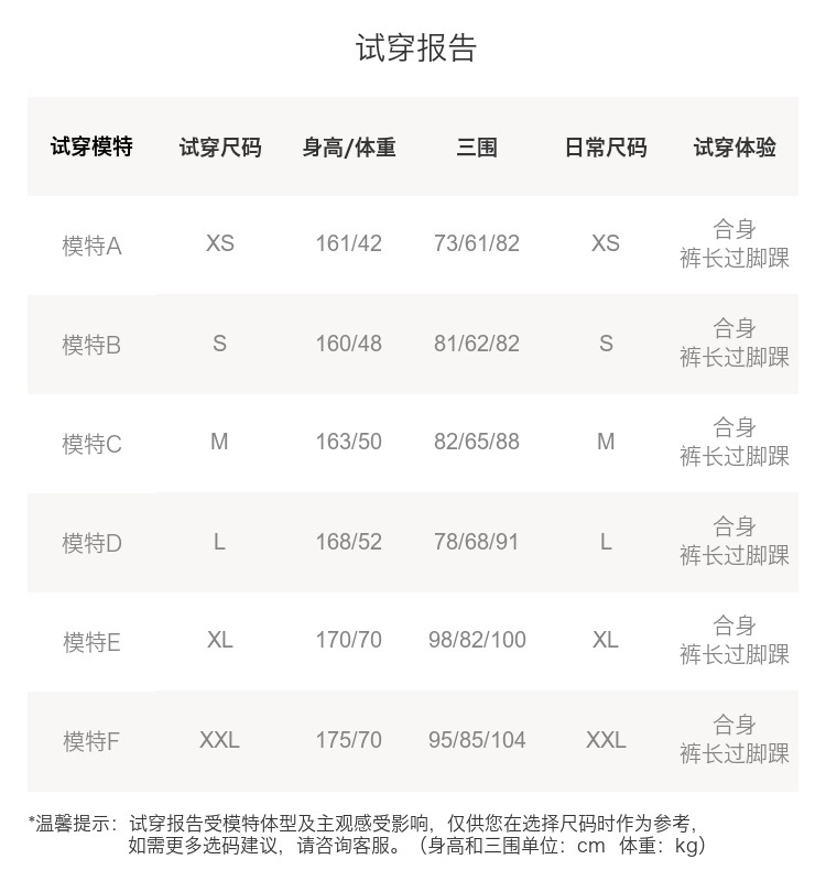 China (cm) 160-165/84-86 165-170 / 88-90 167-172 / 92-96 168-173 / 98-102 170-176 / 106-110