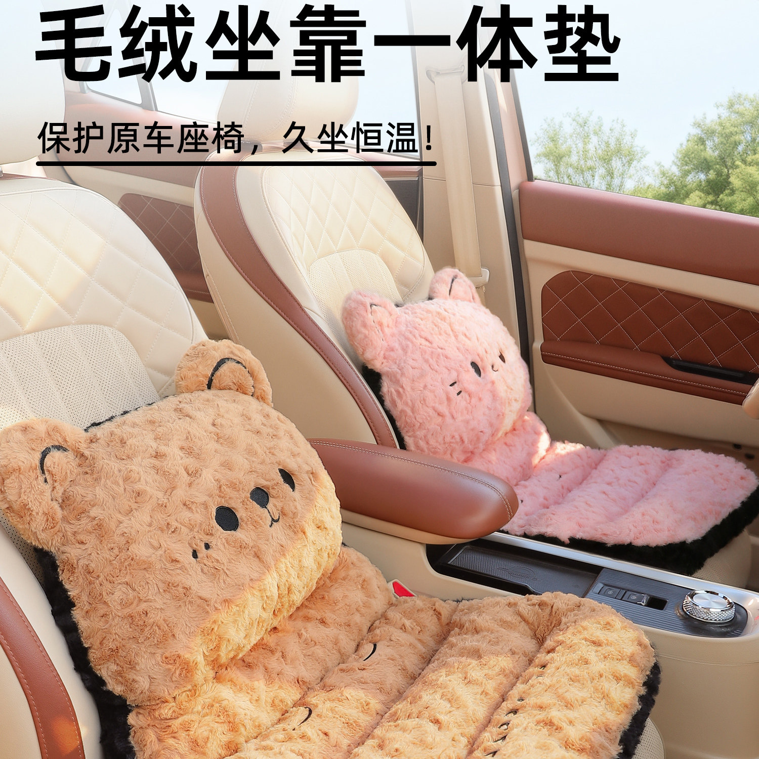 Car Seat Cushion Winter Plush Driver's Seat Cushion with Integrated Backrest Single Piece Women's Car Cushion Front and Rear Seat Cushion