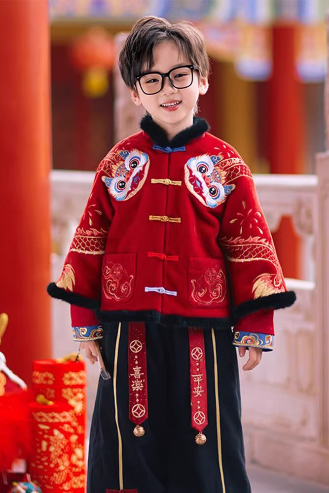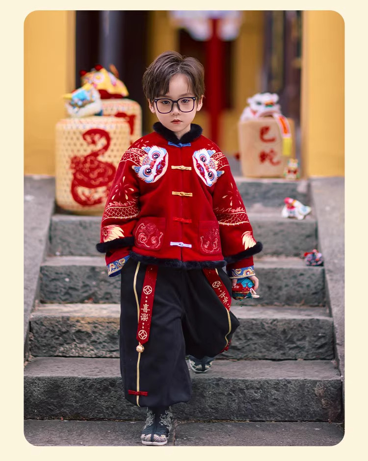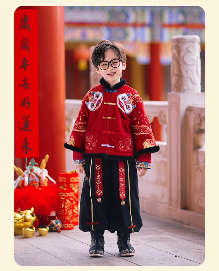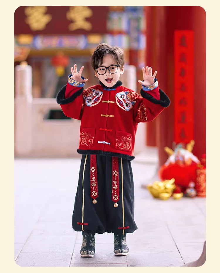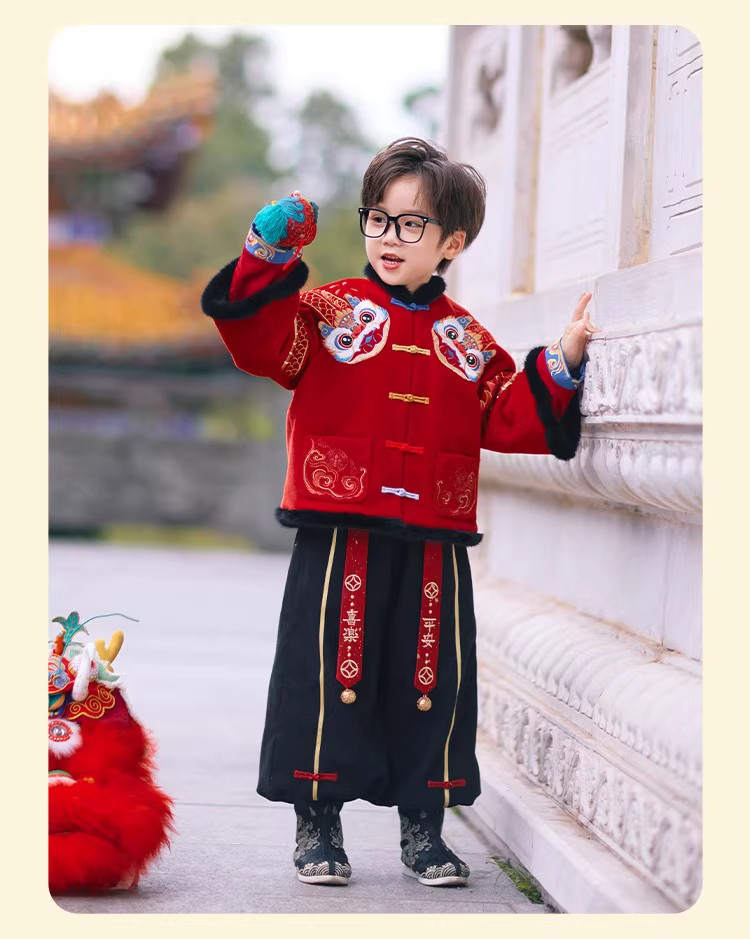 男生冬季新款中国风唐装儿童厚款喜庆洋气喜庆汉服两件套拜年服