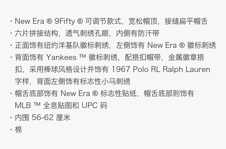 Ralph Lauren/Ralph Lauren 25 Otoño Polo Ralph Lauren Yankees sombrero de algodón