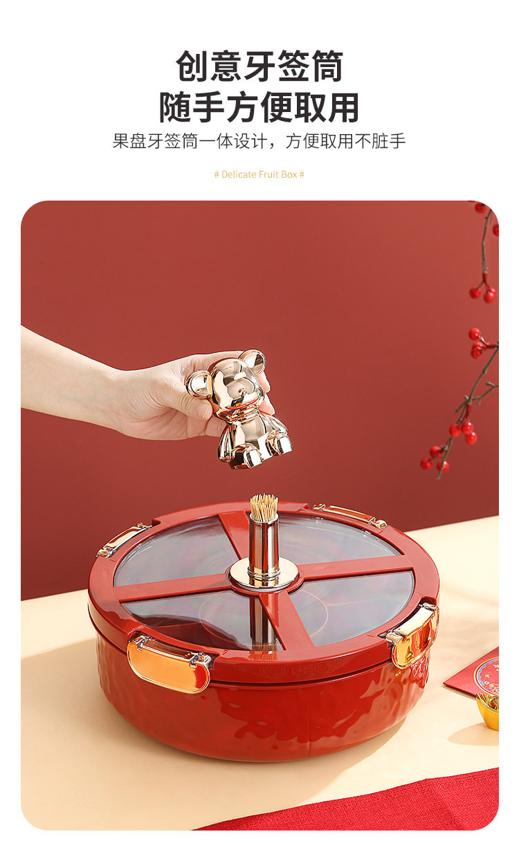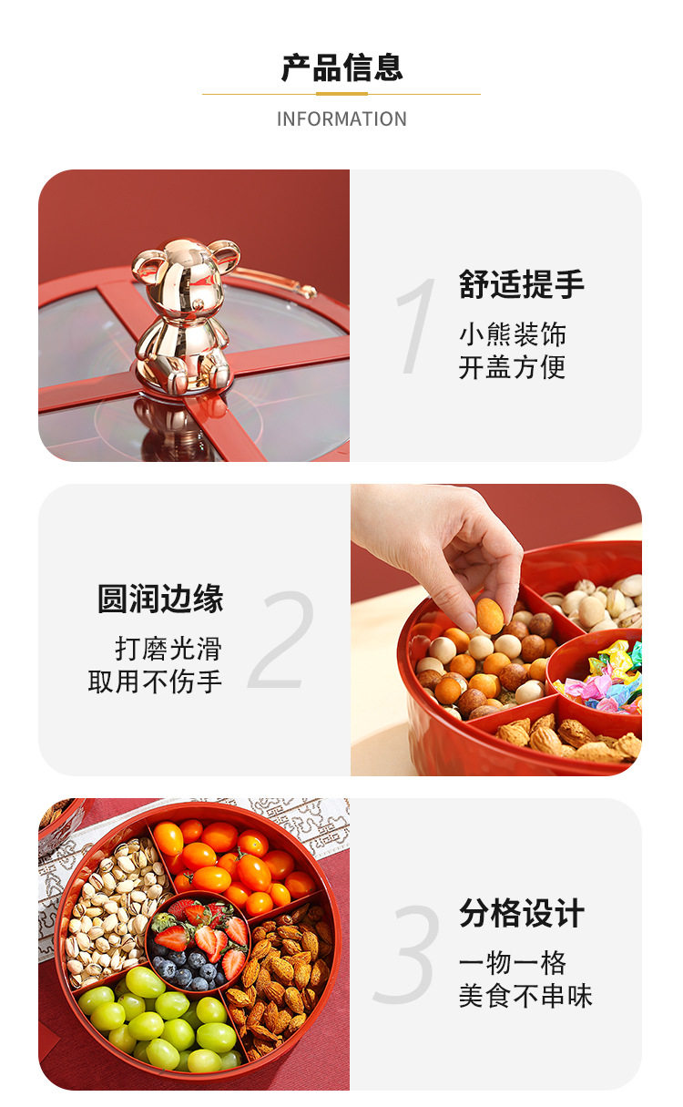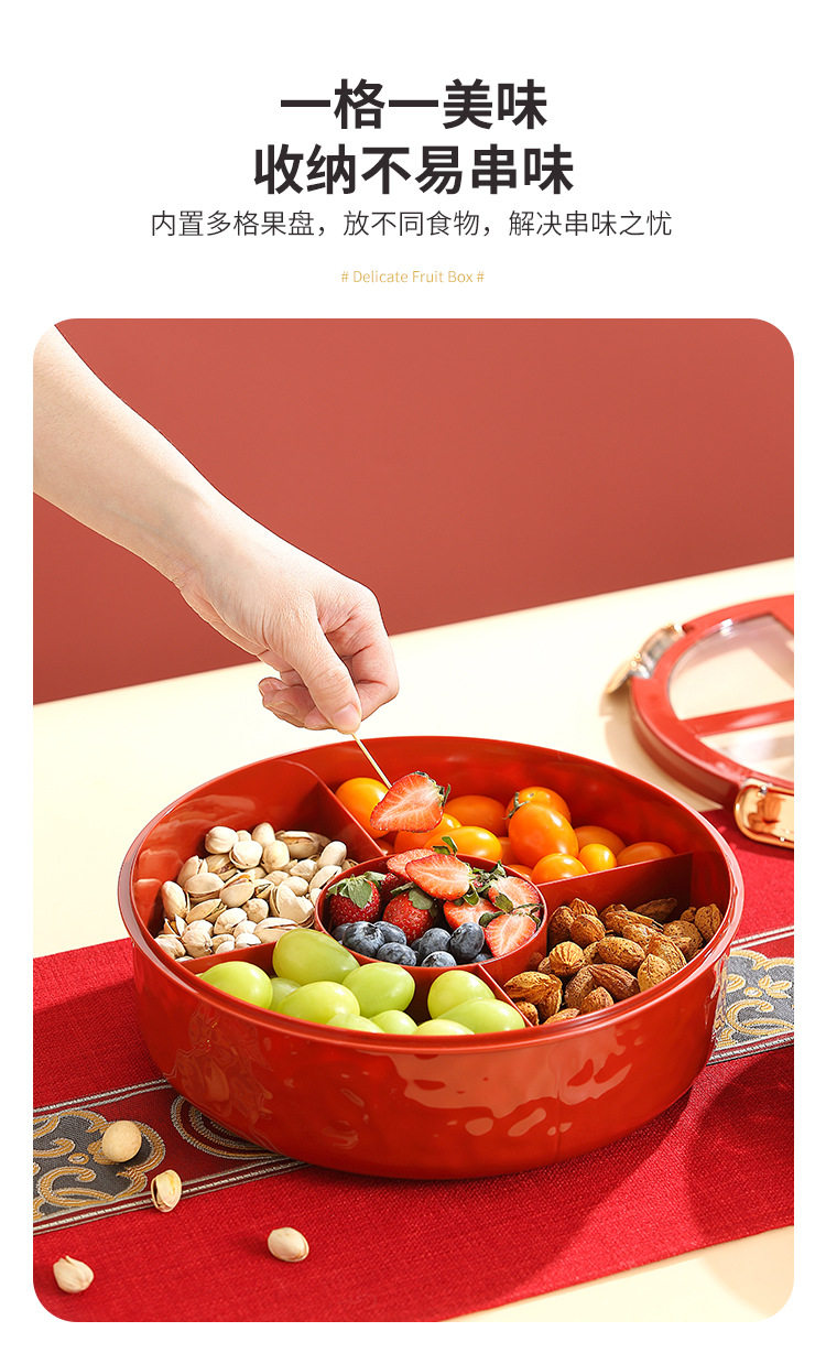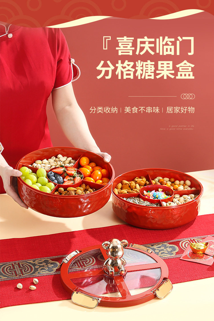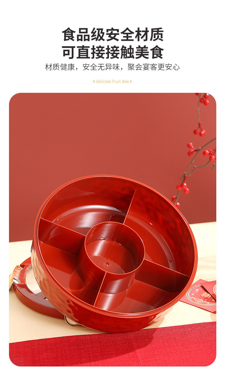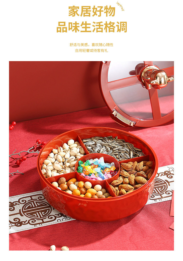 德国红色旋转分格果盘春节结婚乔迁零食干果盘客厅茶几家用糖果盒