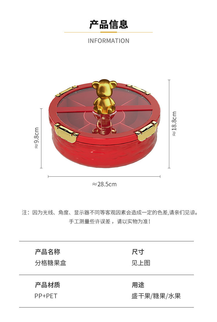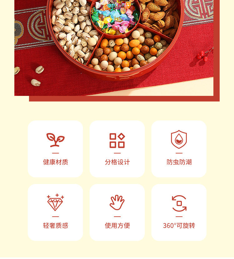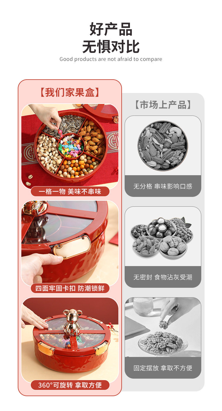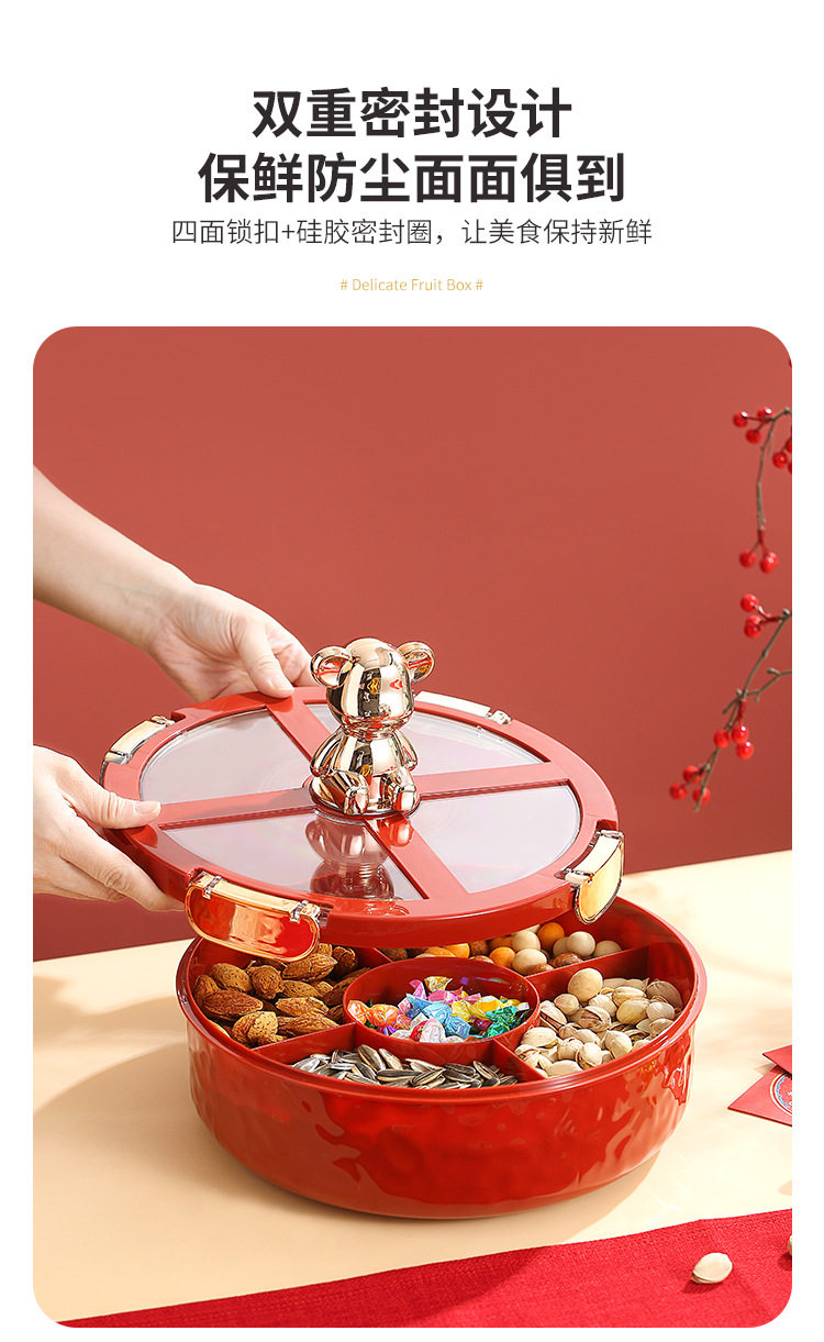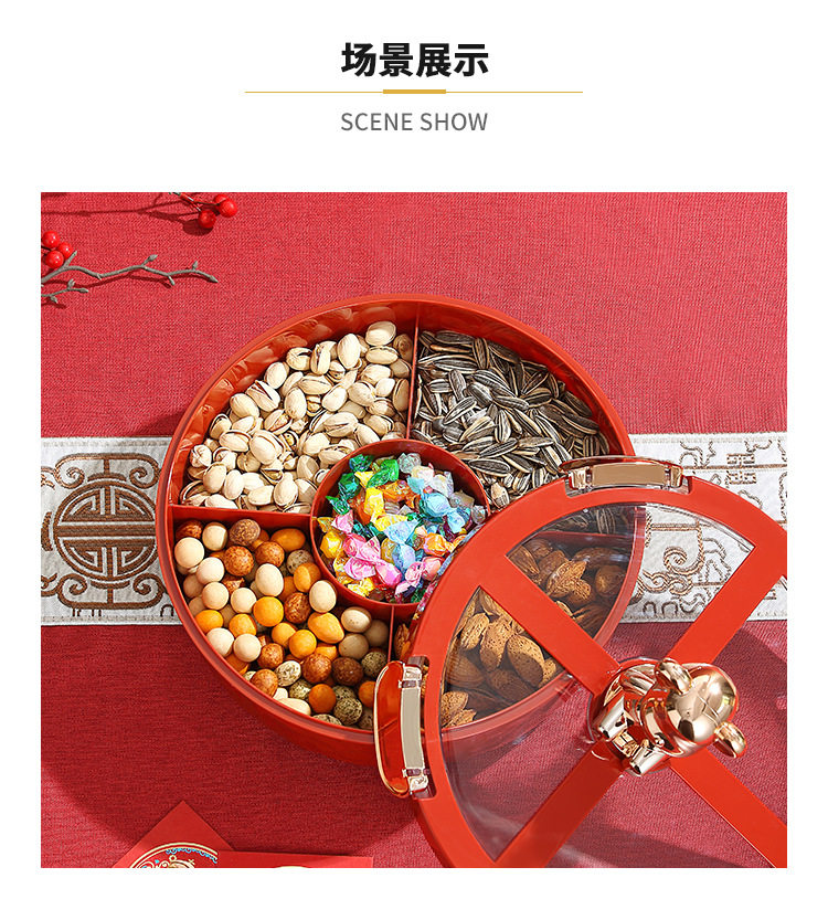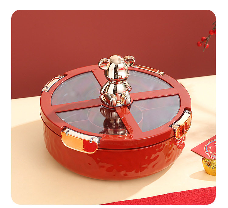 德国红色旋转分格果盘春节结婚乔迁零食干果盘客厅茶几家用糖果盒